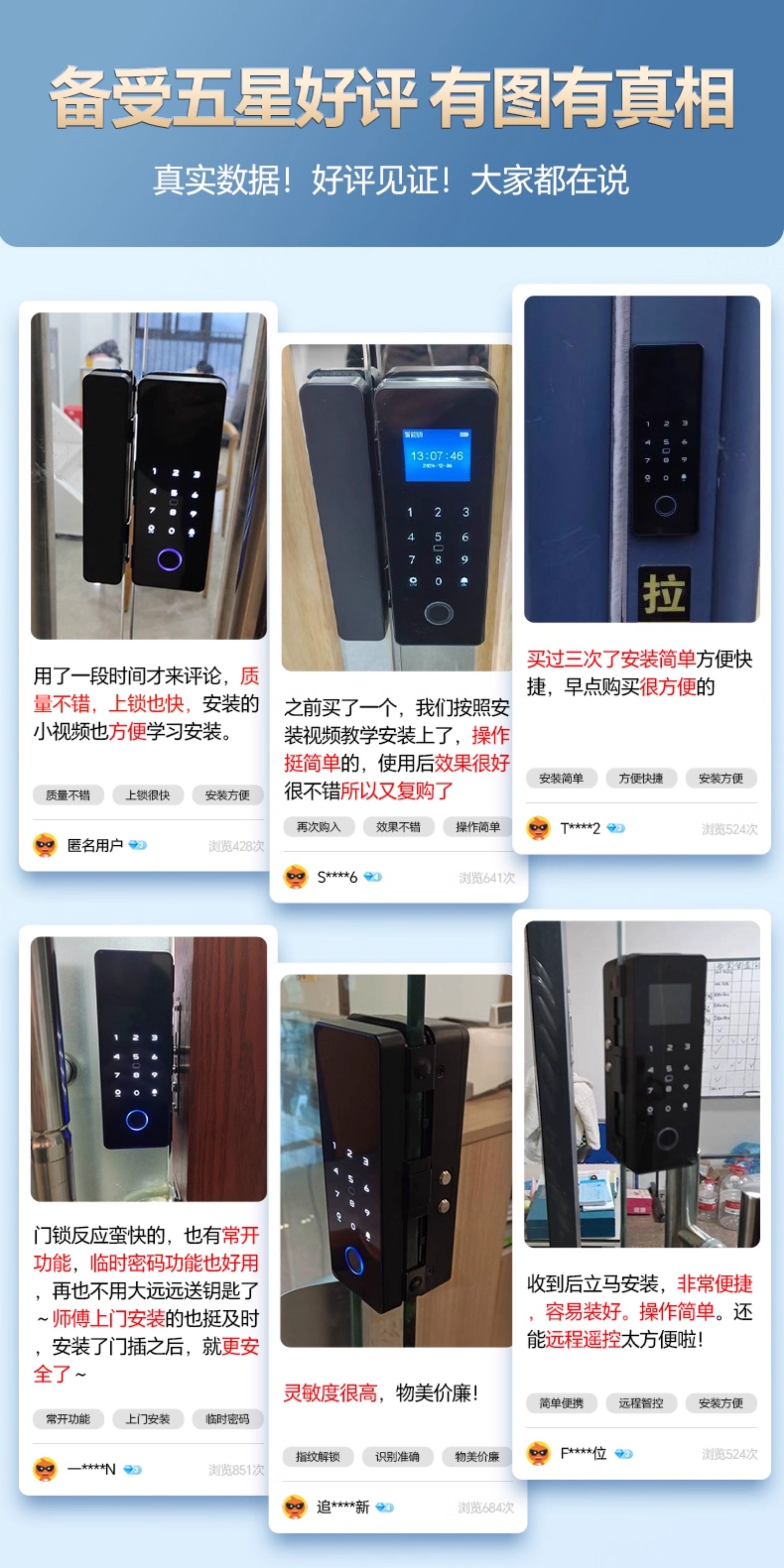 | Finish Color | Upgraded Fingerprint Model - 2 Sides of Glass [the Other Side Is Fixed Glass],Upgraded Fingerprint Model - Single Opening on the Right [the Other Side Is the Door Frame or Wall],Upgraded Fingerprint Model - Single Opening on the Left [the Other Side Is the Door Frame or Wall],Upgraded Fingerprint Model - Double Opening Without Frame + Free Floor Plug [Glass Without Edge],Upgraded Fingerprint Model-Framed Single Opening [Regardless of Left or Right],Upgraded Fingerprint Model - Double Opening with Frame + Free Floor Plug [Framed Glass Door/Wooden Door],【Installation Included】Upgraded Fingerprint Model - Single Door - Adjustable Direction,【Installation Included】Upgraded Fingerprint Model - Double Door + Free Floor Latch,High-End Color Screen Model - 2-Sided Glass [One Side Is Fixed Glass],Color Screen High Configuration - Frameless Single Opening [Adjustable Left and Right],High-End Color Screen Model - Double Door Frameless Design + Free Floor Standing Stand [Glass Without Edge Protection],High-End Color Screen Model - Double Door Framed Design + Free Floor Stand [Suitable for Framed Glass Doors/Wooden Doors],【Installation Included】High-Spec Color Screen Model - Single Door - Adjustable Direction,【Installation Included】High-Spec Color Screen Model - Dual Opening + Free Ground Stake,Wifi Remote Model-Single Opening [Adjustable Left and Right],Wifi Remote Model - Double Opening Frameless + Free Ground Plug [Glass Without Edge],Wifi Remote Model-Double Opening with Frame + Free Floor Plug [Framed Glass Door/Wooden Door],【Installation Included】Wifi Remote Control - Single Door,【Installation Included】Wifi Remote Control - Double Door + Free Ground Spike,Remote Control Model - 2 Sides of Glass [the Other Side Is Fixed Glass],Remote Control Model - Frameless Single Opening [Adjustable Left and Right],Remote Control Model - Double Opening Without Frame + Free Ground Plug [Glass Without Edge],Remote Control Model - Double Door Framed + Includes Ground Spike [Framed Glass Door/Wooden Door],【Installation Included】Remote Control - Single Door - Adjustable Direction,【Installation Included】Remote Control Model - Double Door + Free Ground Stake,No Ground Plug - Color Screen High Configuration - Double Door [Glass Without Edge],No Ground Plug - Color Screen High Configuration - Double Door [Framed Glass Door/Wooden Door],【Installation Included】- High-Spec Color Screen Model - Contact Customer Service to Specify Door Type,【Basic Lock Model】Double-Sided Glass 【One Side Is Fixed Glass】,【Basic Lock】Single Opening - Adjustable Left/Right,【Basic Lock Model】Double Door Frameless + Includes Floor Latch,Five-Year Warranty |