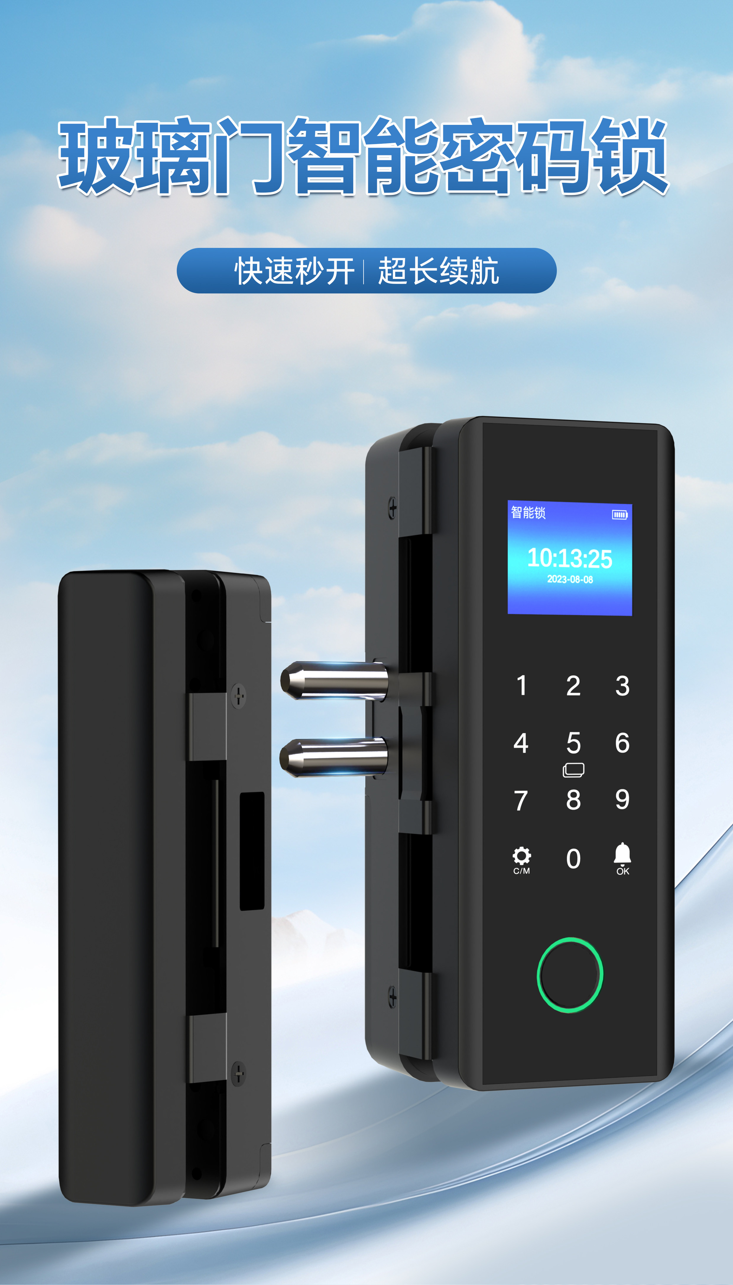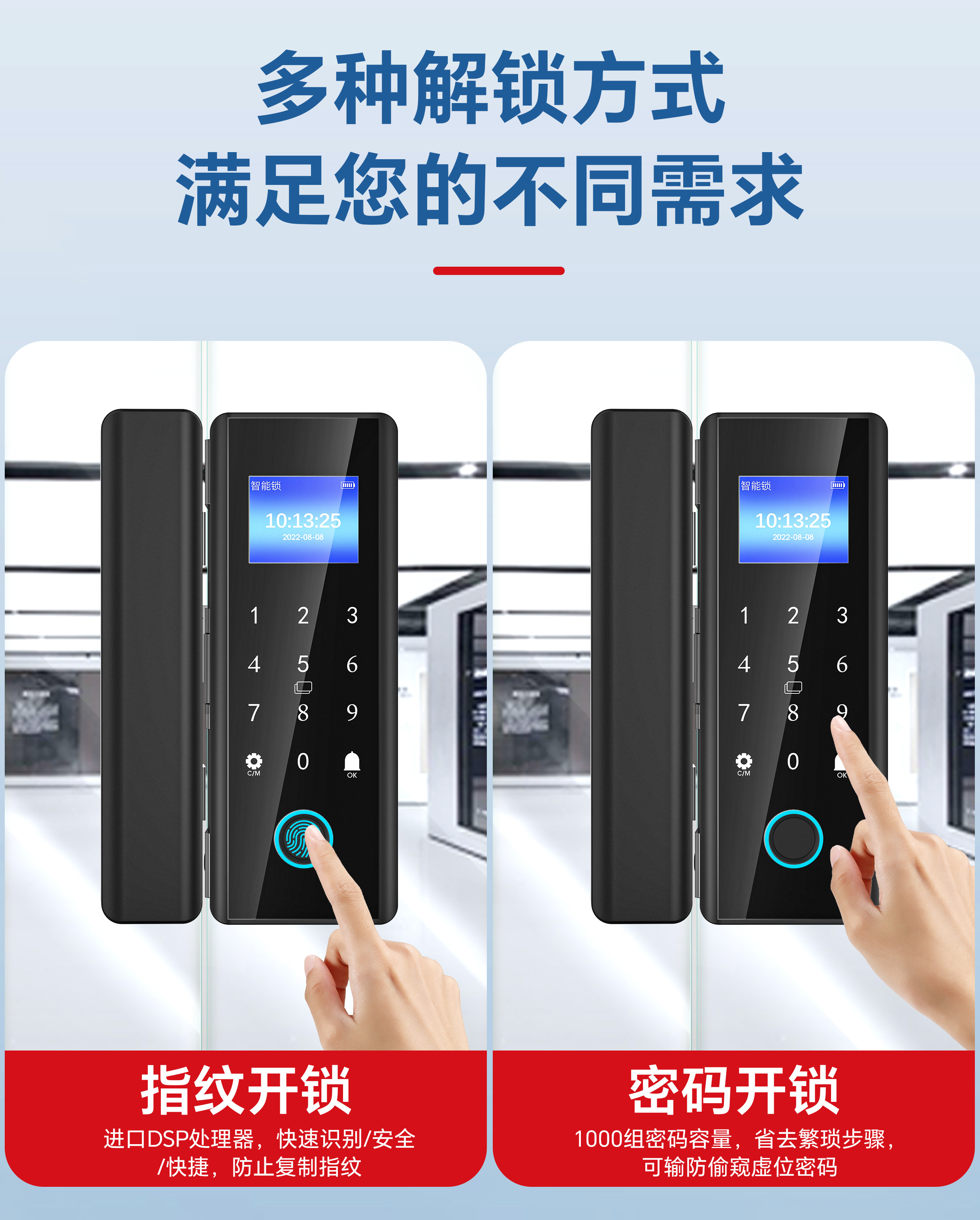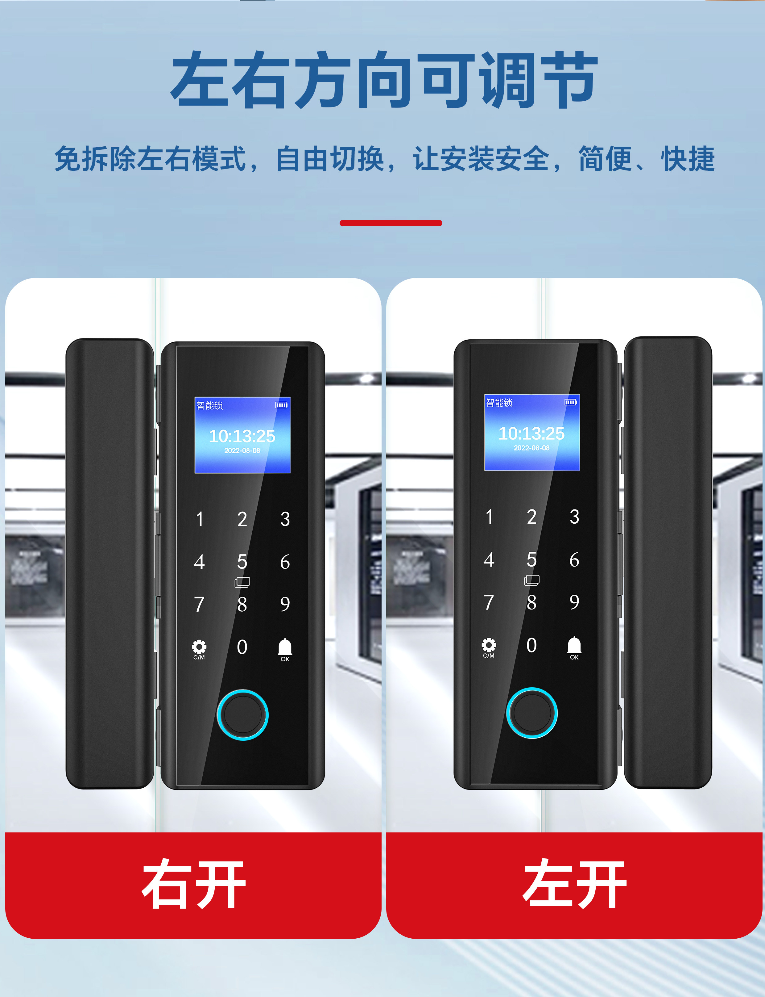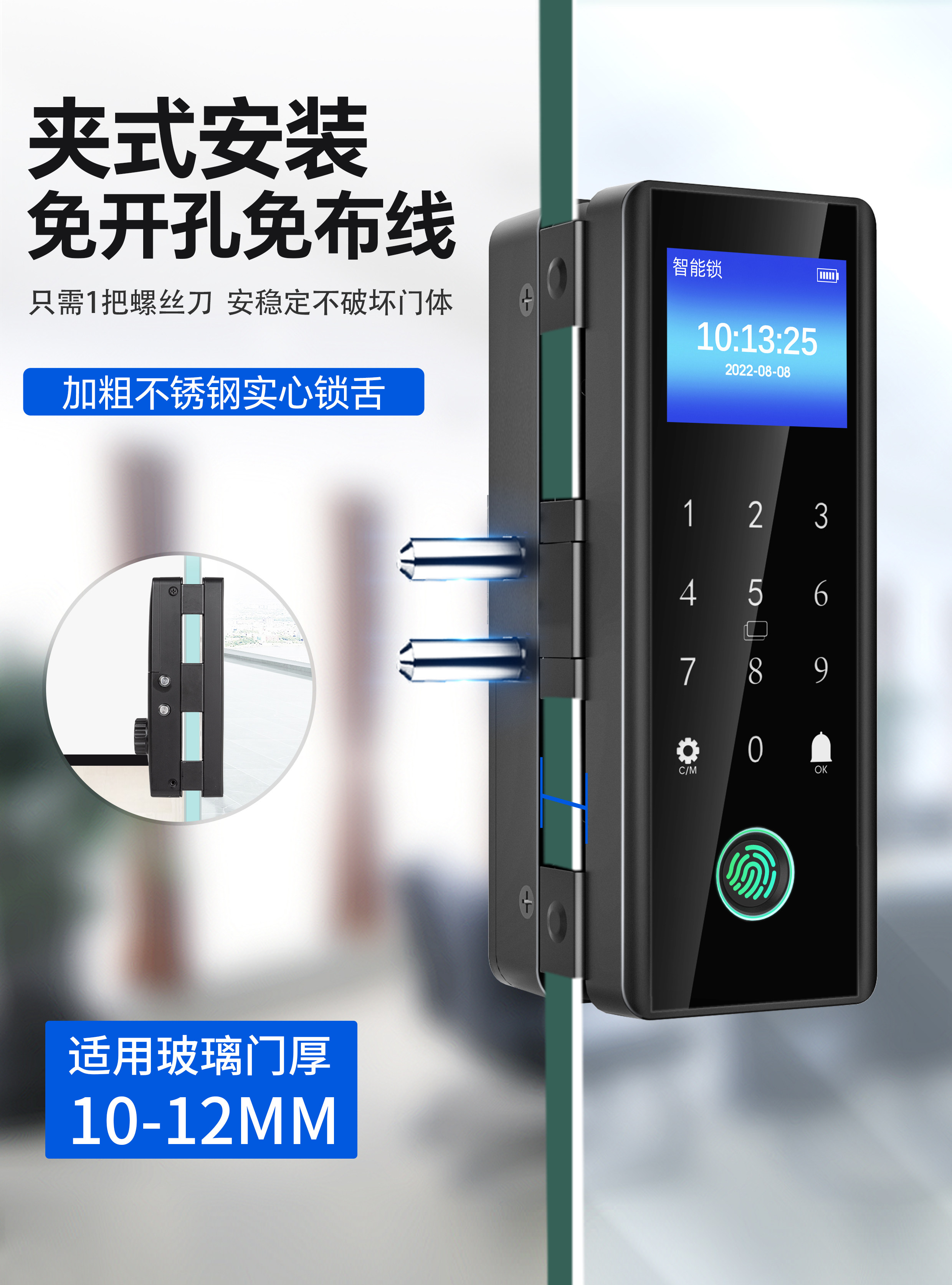 Glass Door Password Lock Fingerprint Lock Single Door Double Door No Drilling Required Framed Frameless Office Access Control Electronic Smart Lock