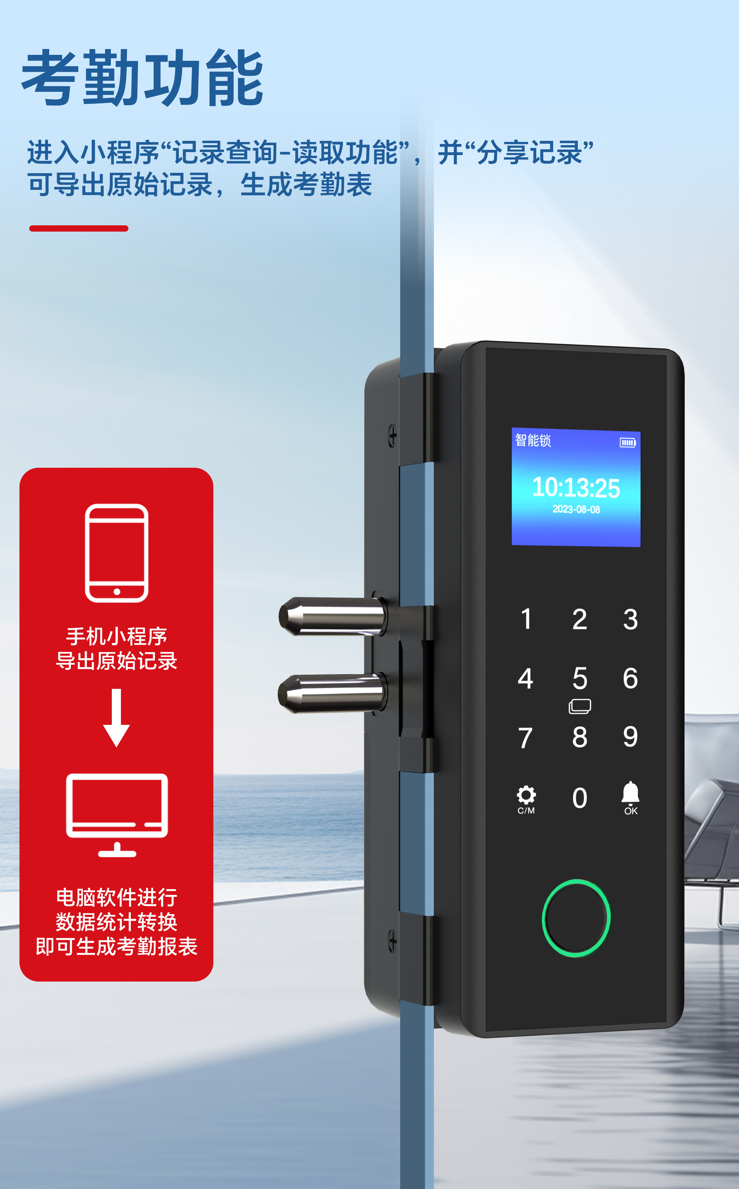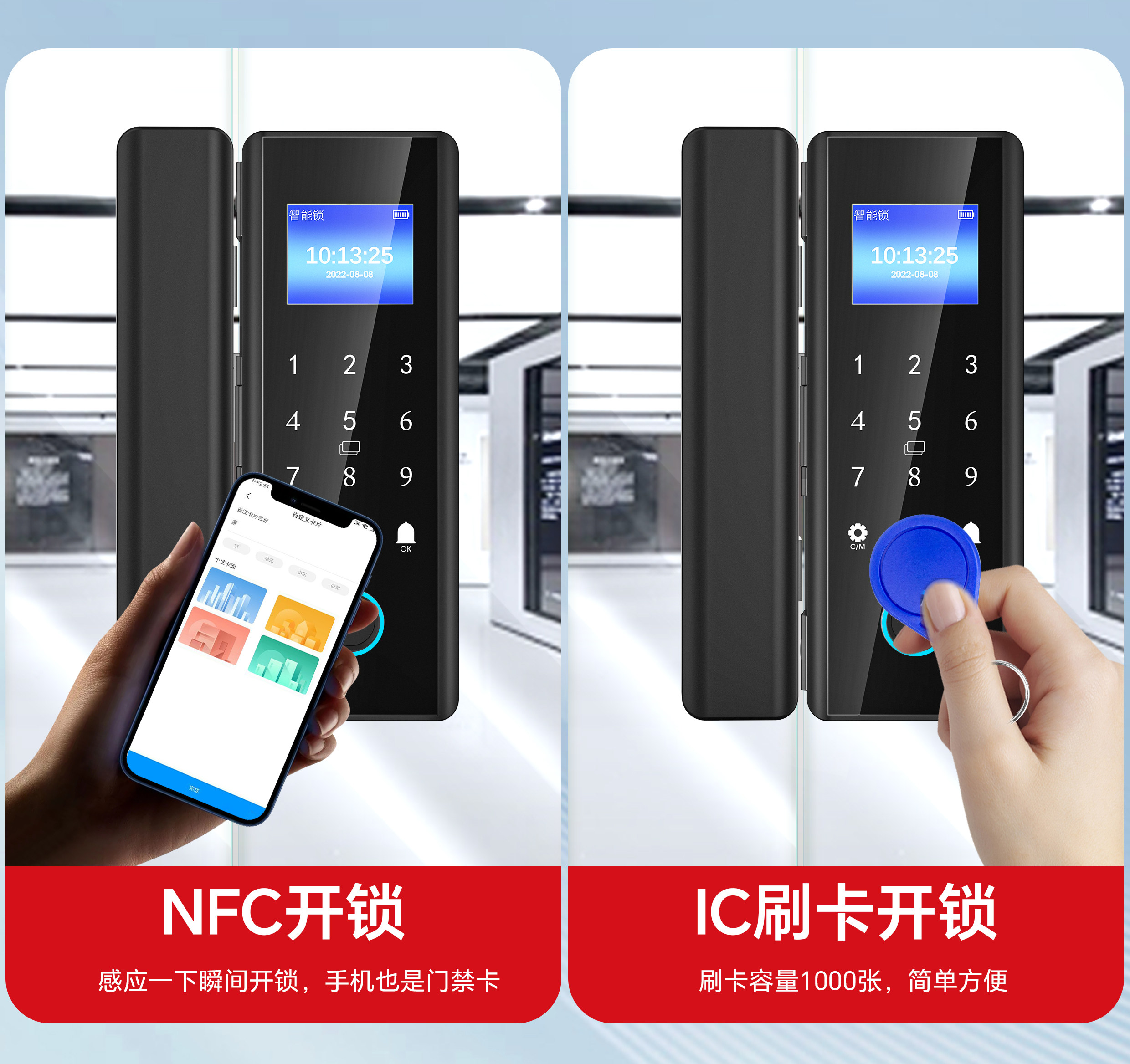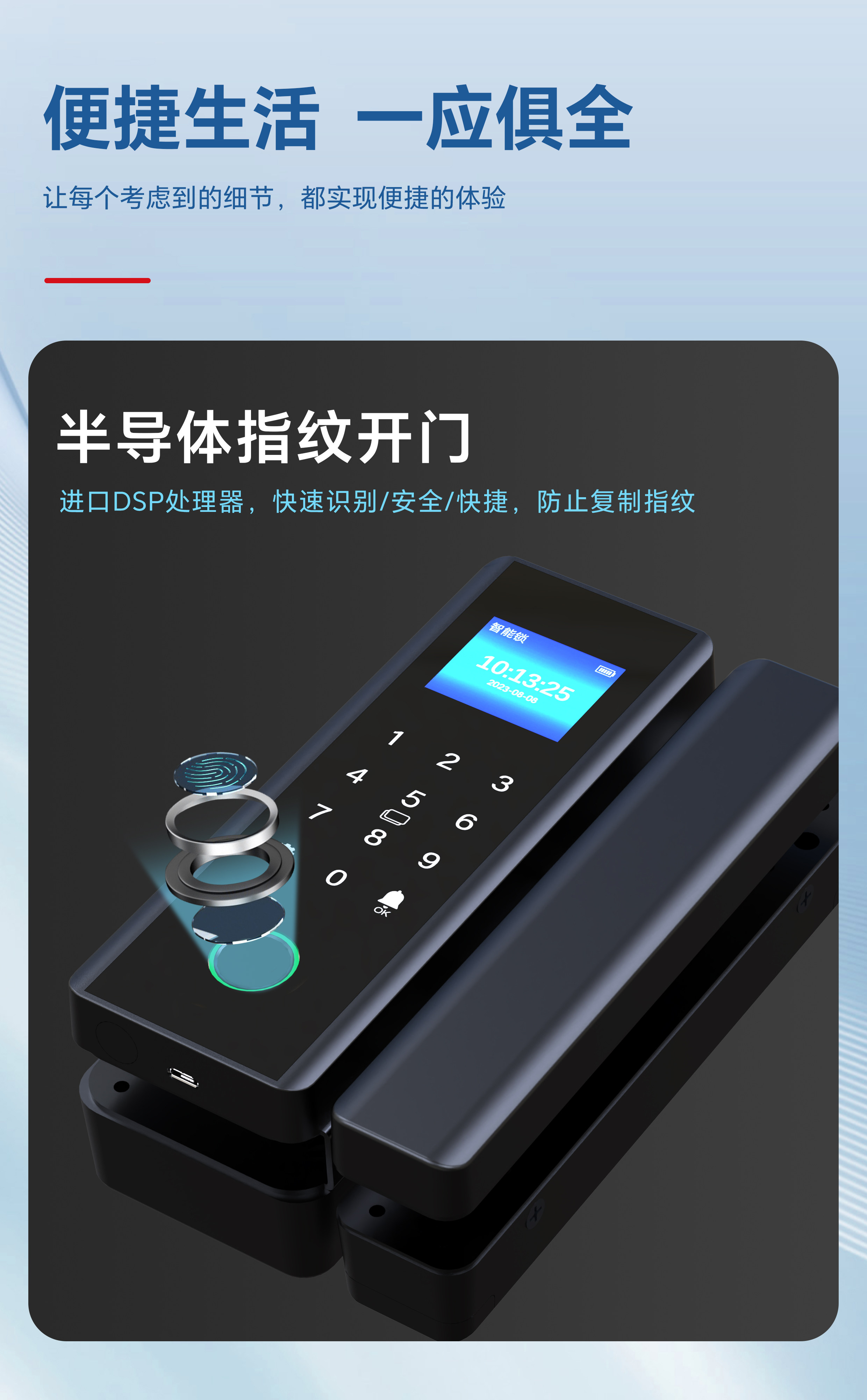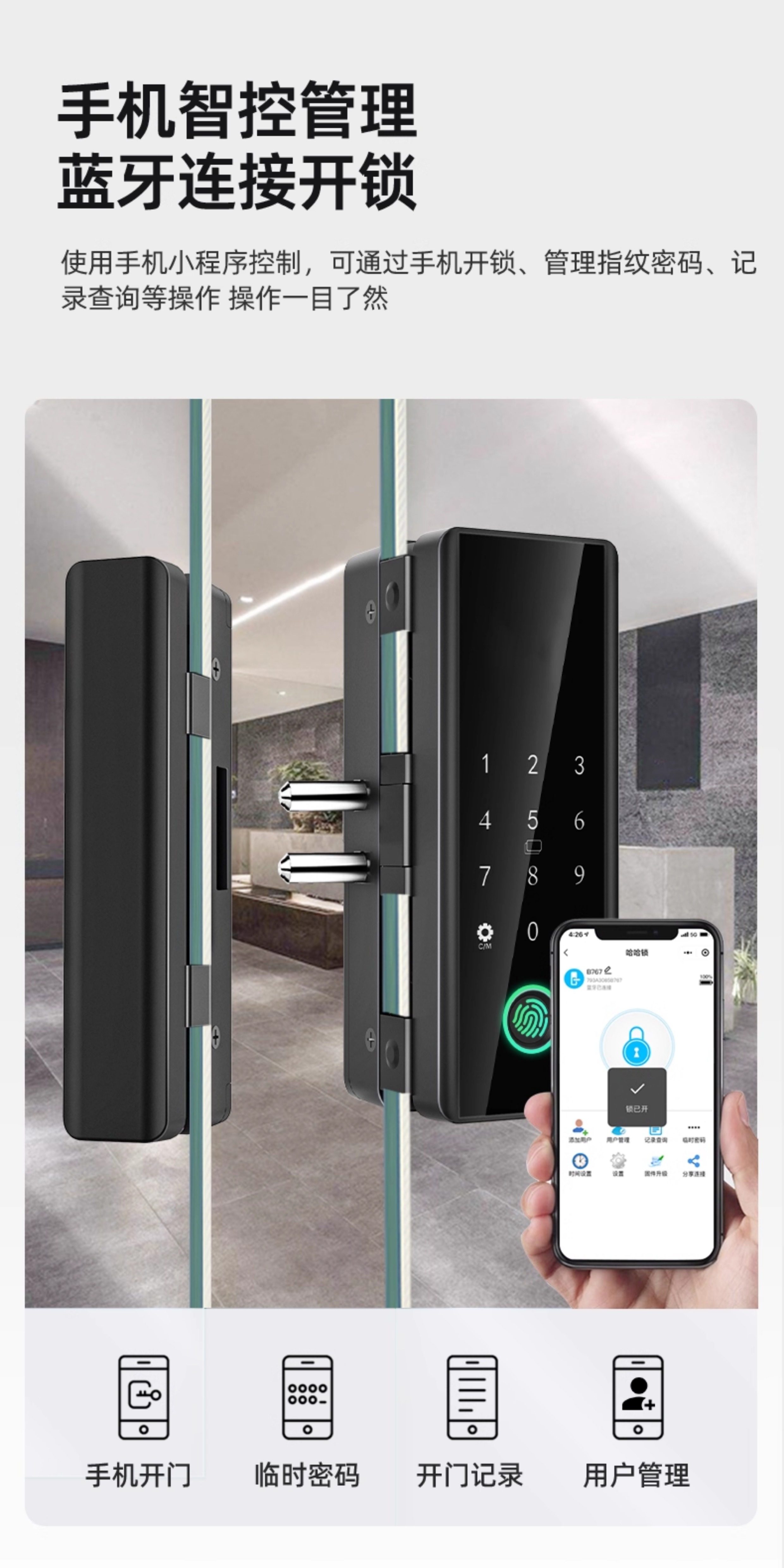 Glass Door Password Lock Fingerprint Lock Single Door Double Door No Drilling Required Framed Frameless Office Access Control Electronic Smart Lock