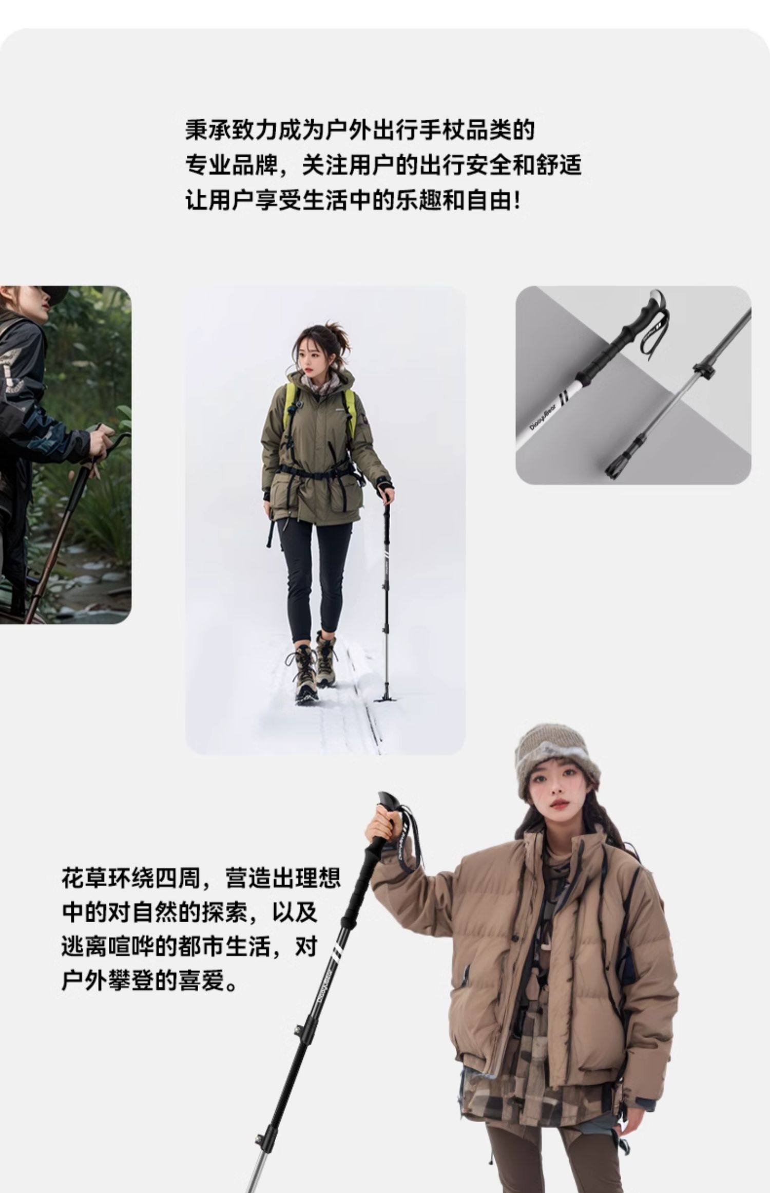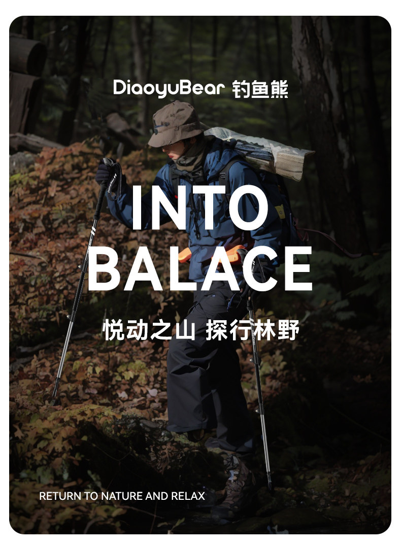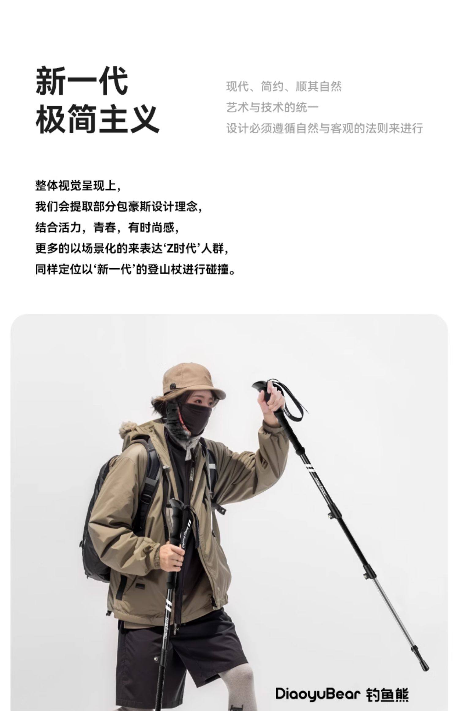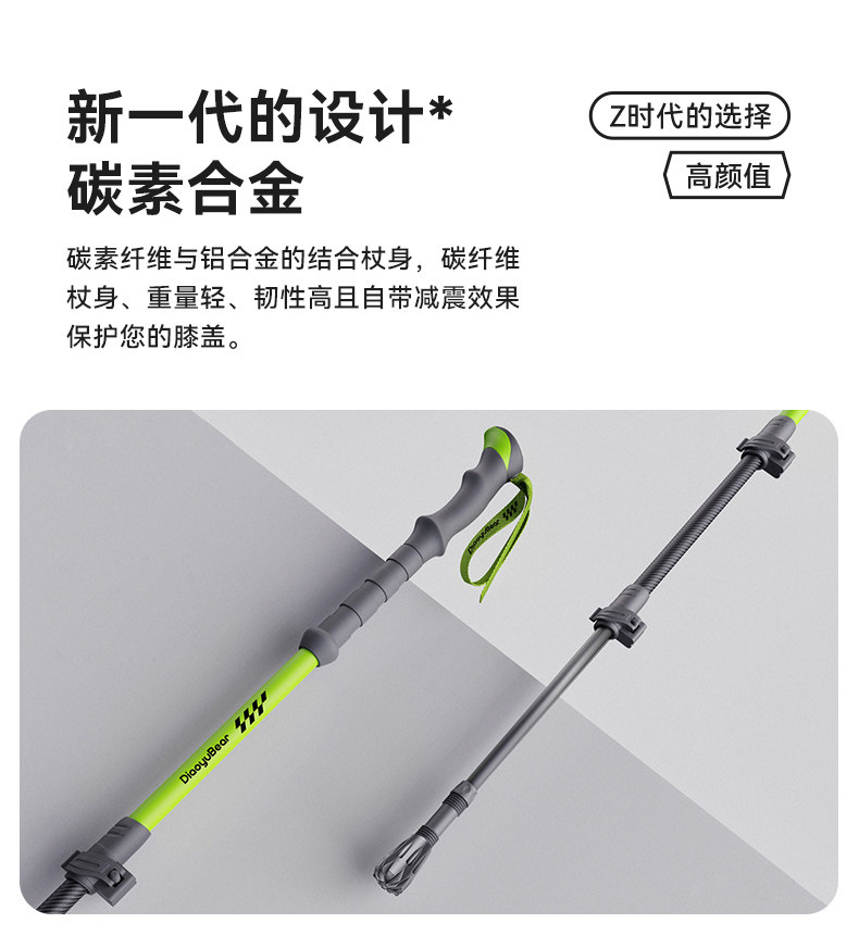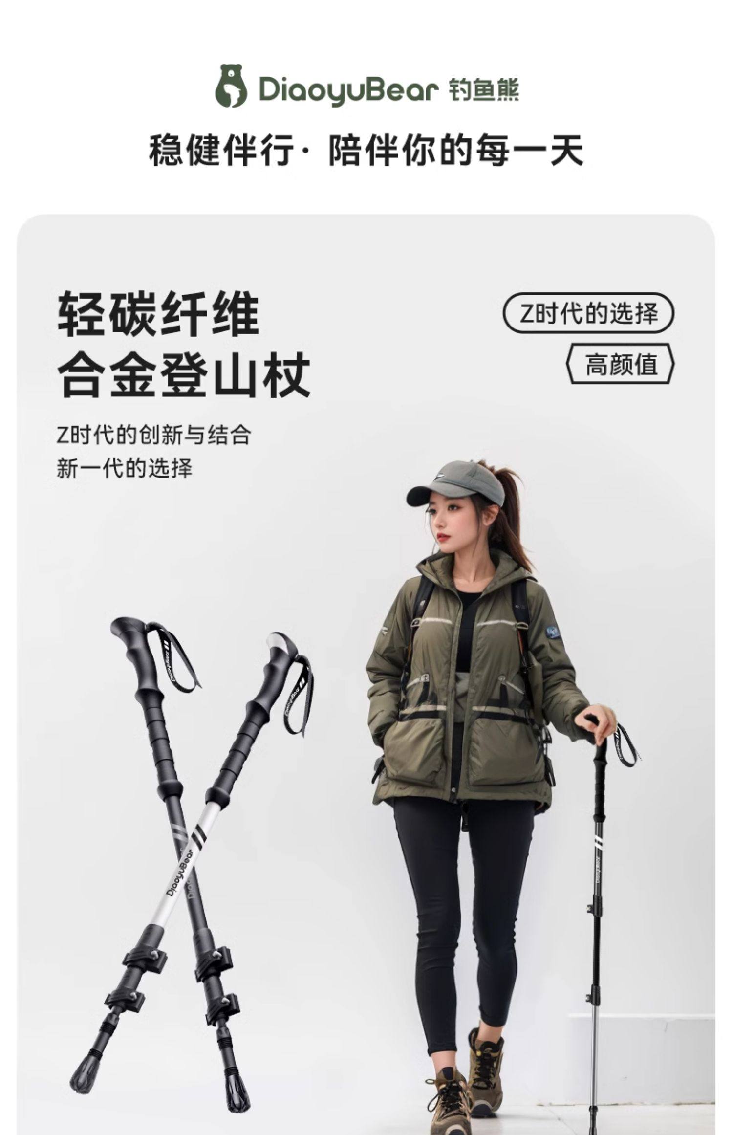 Fishing Bear Carbon Fiber Trekking Pole Professional Outdoor Climbing Equipment Carbon Ultra-Light Telescopic Aluminum Alloy Hiking Stick