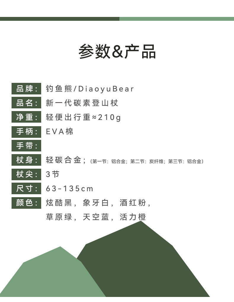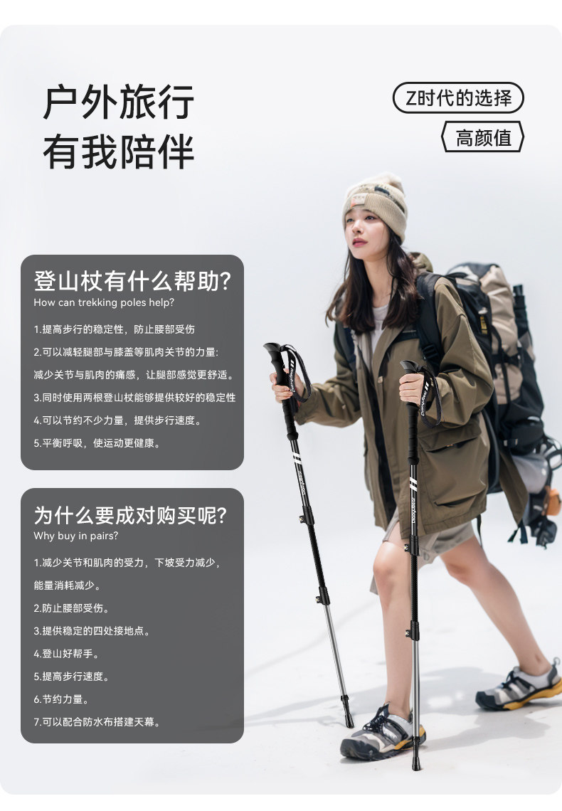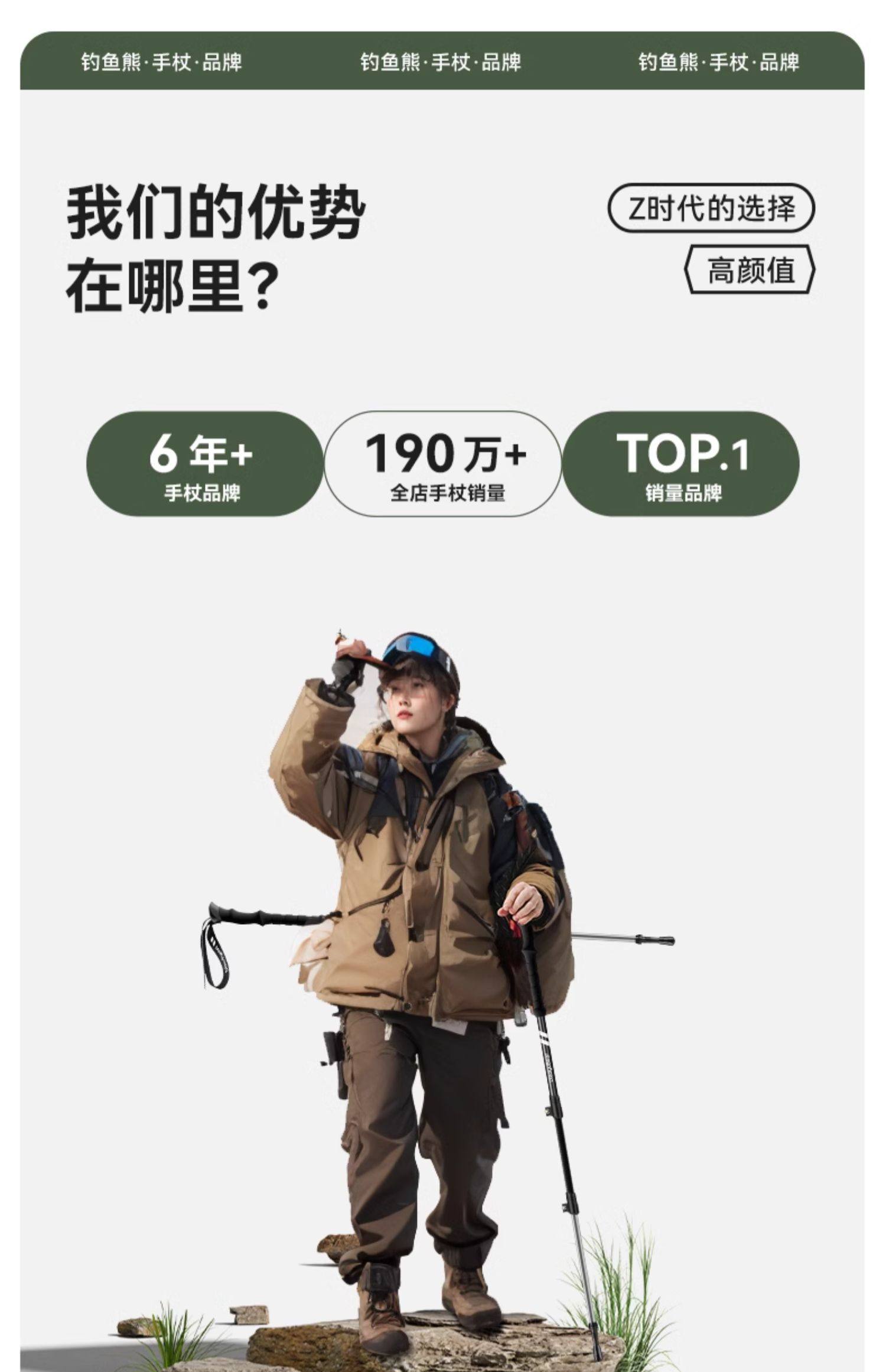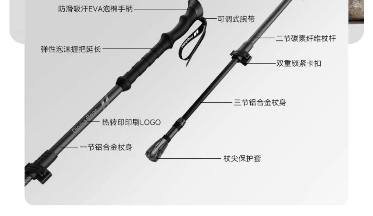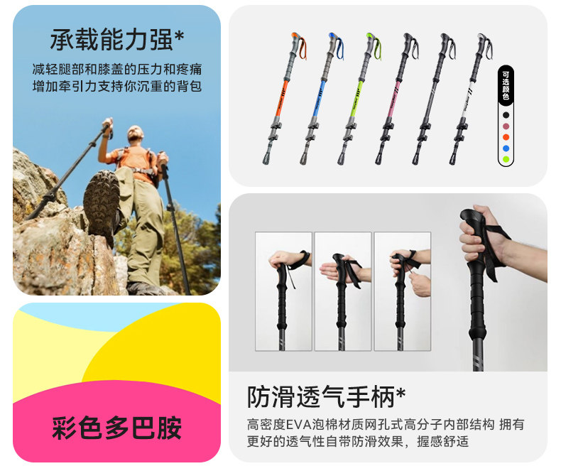 Fishing Bear Carbon Fiber Trekking Pole Professional Outdoor Climbing Equipment Carbon Ultra-Light Telescopic Aluminum Alloy Hiking Stick