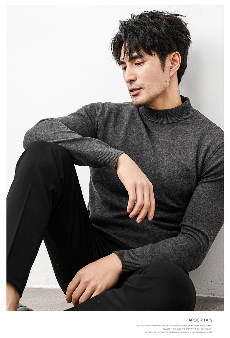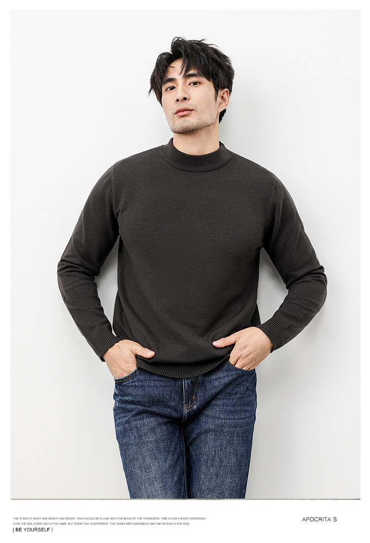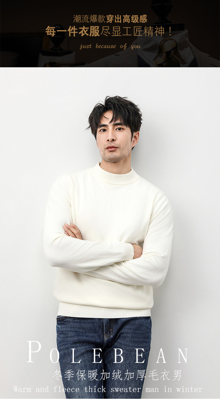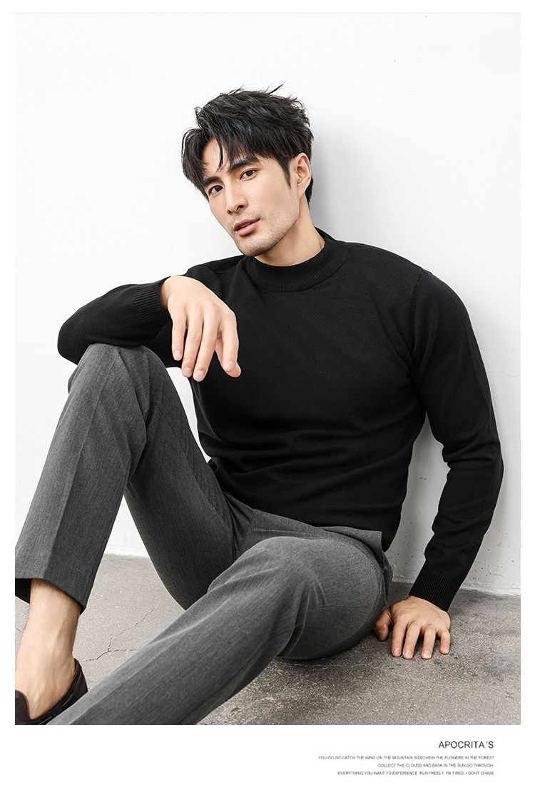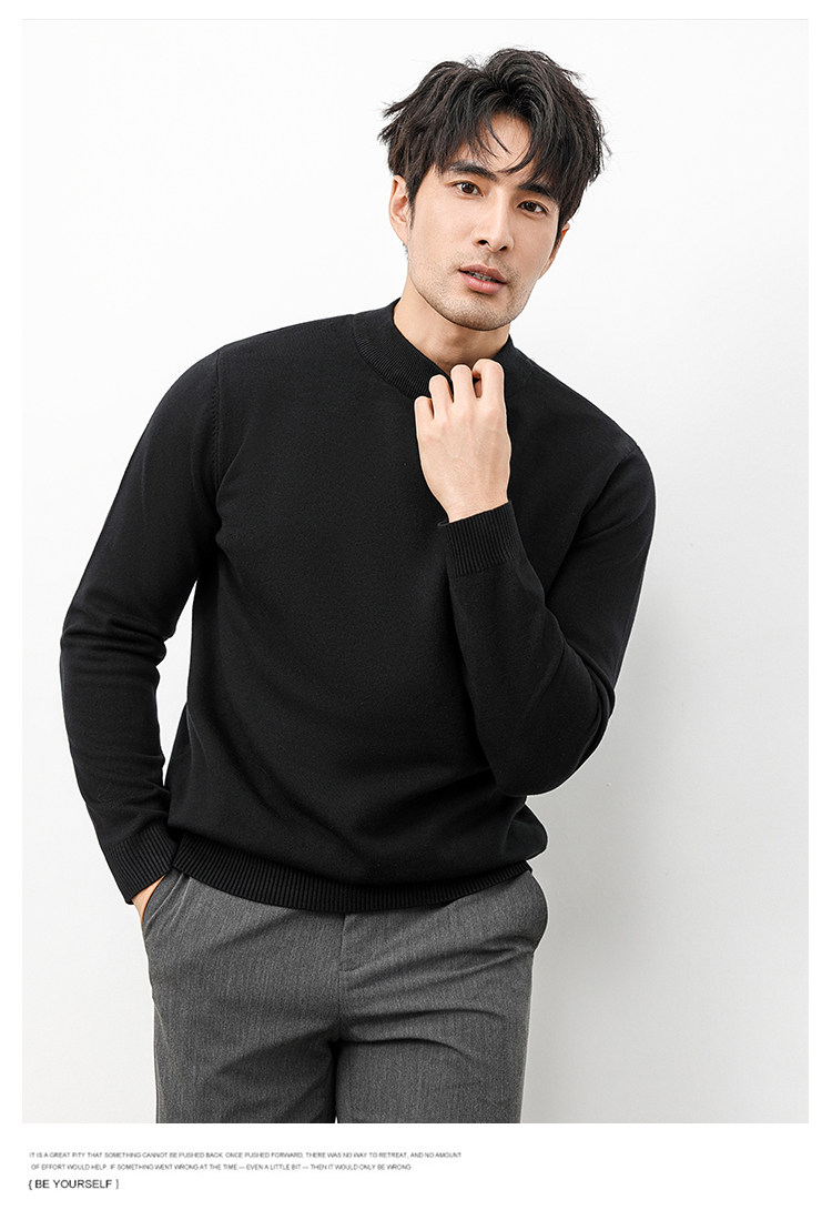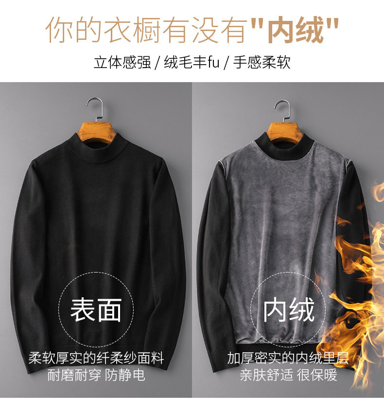 Autumn and Winter Half-Turtleneck Sweater for Men, Fleece-Lined and Thickened, Black Business Style, Korean Trendy Warm Base Layer Wool Knitwear