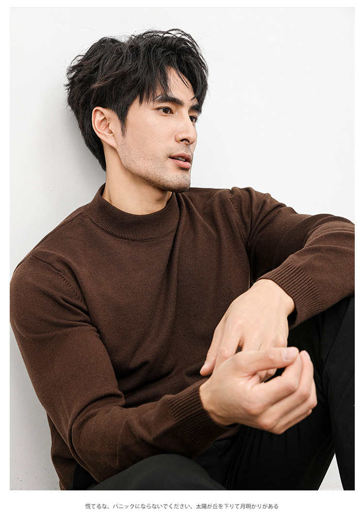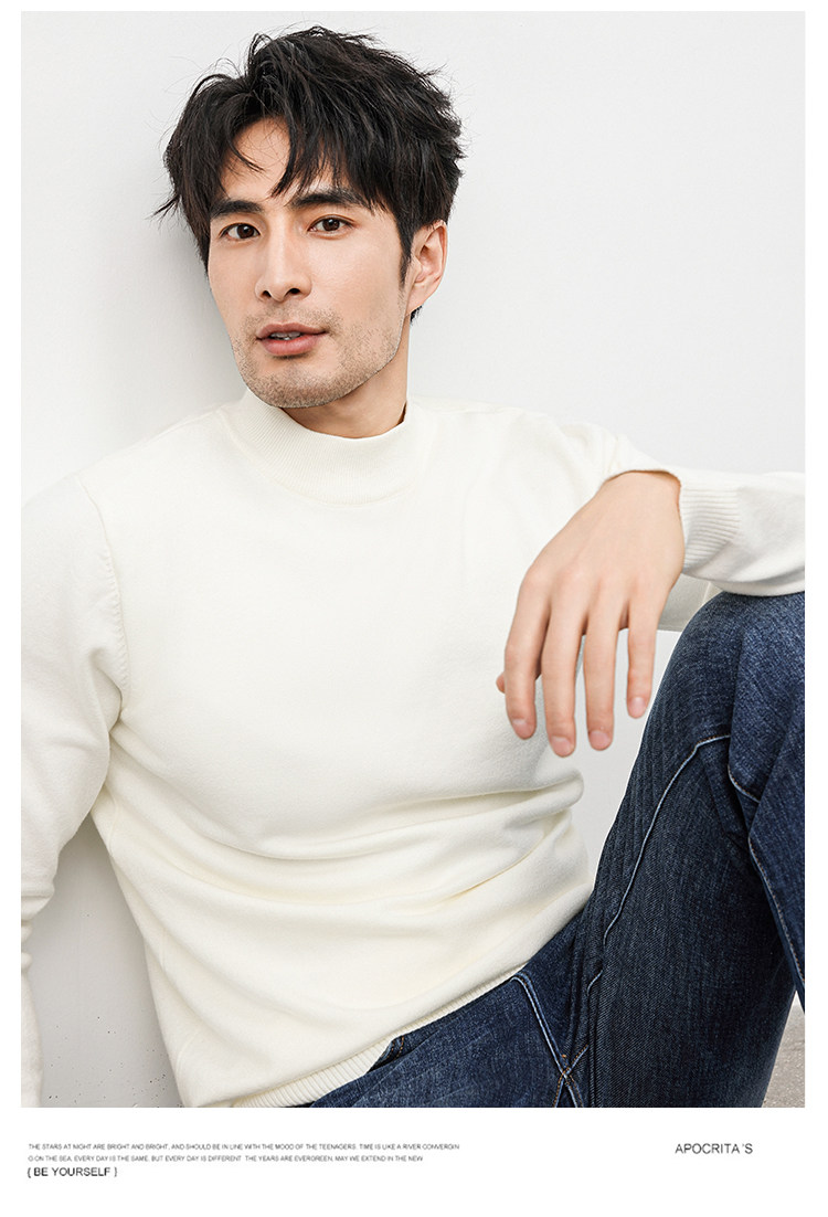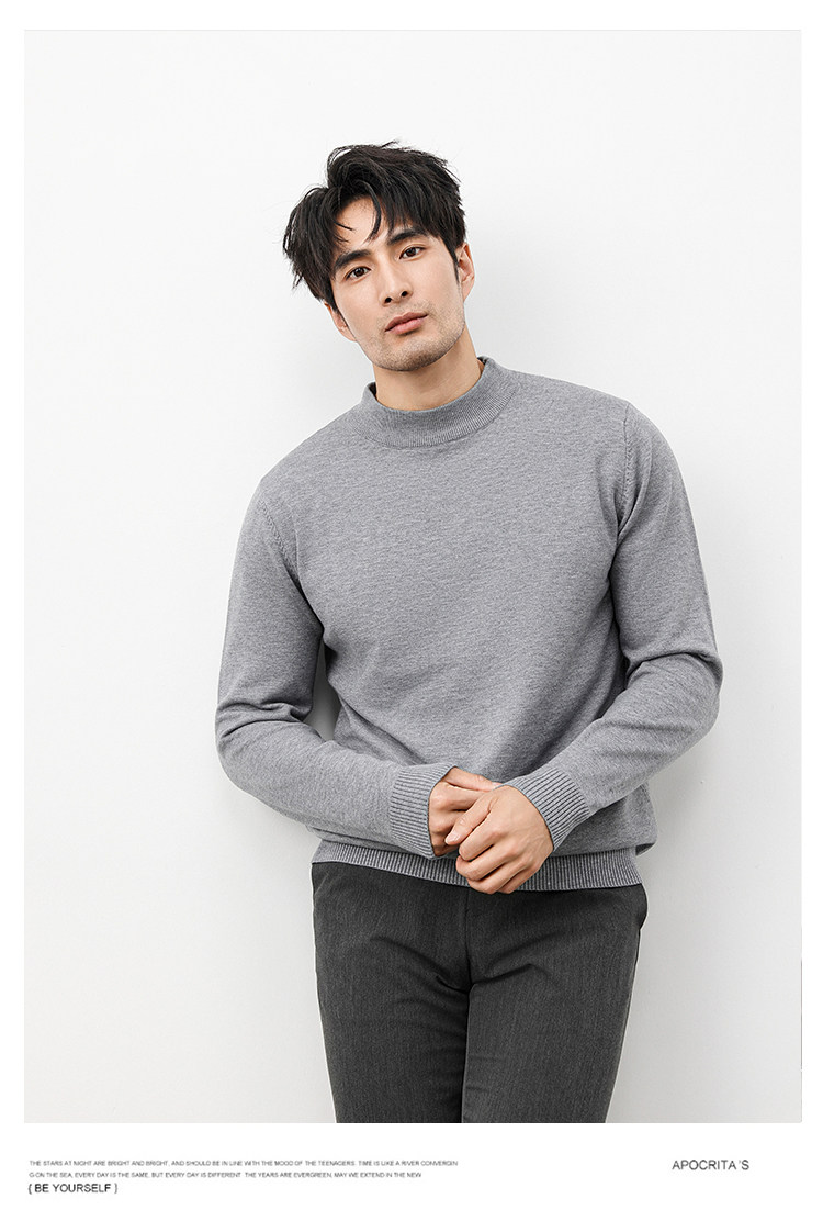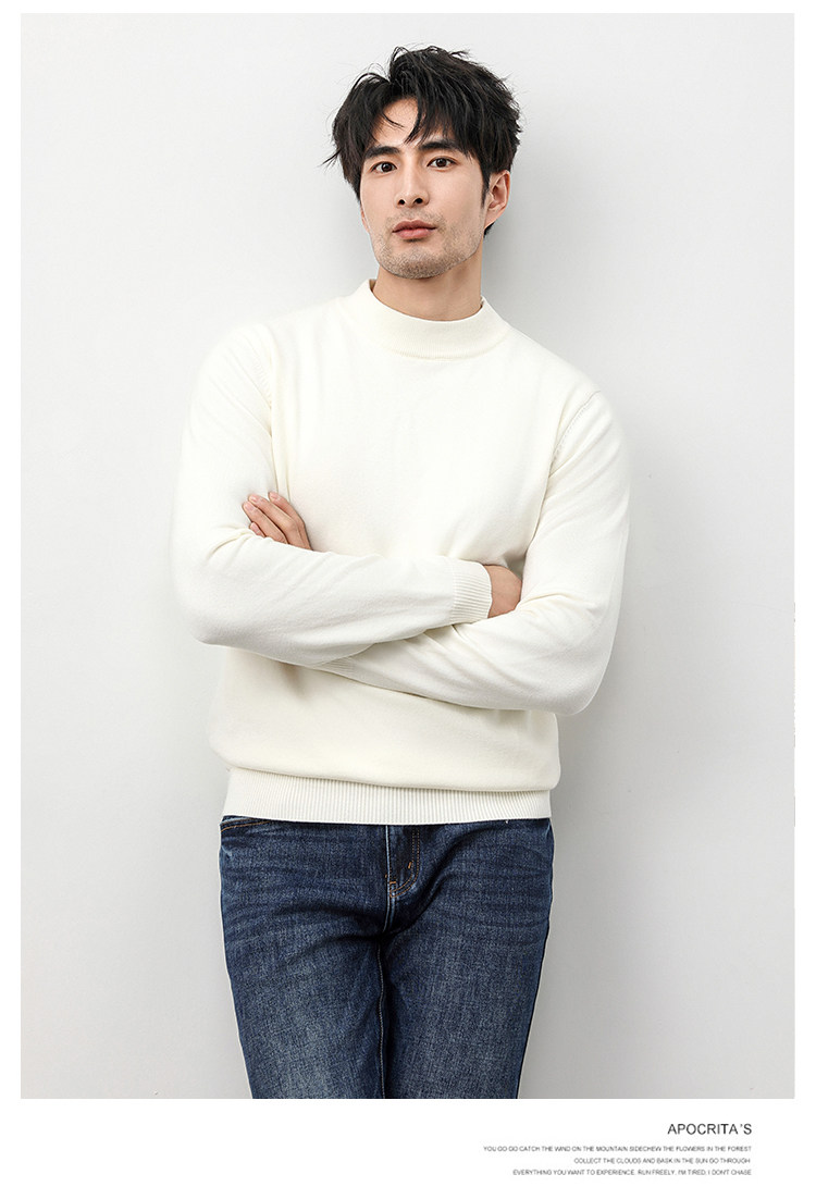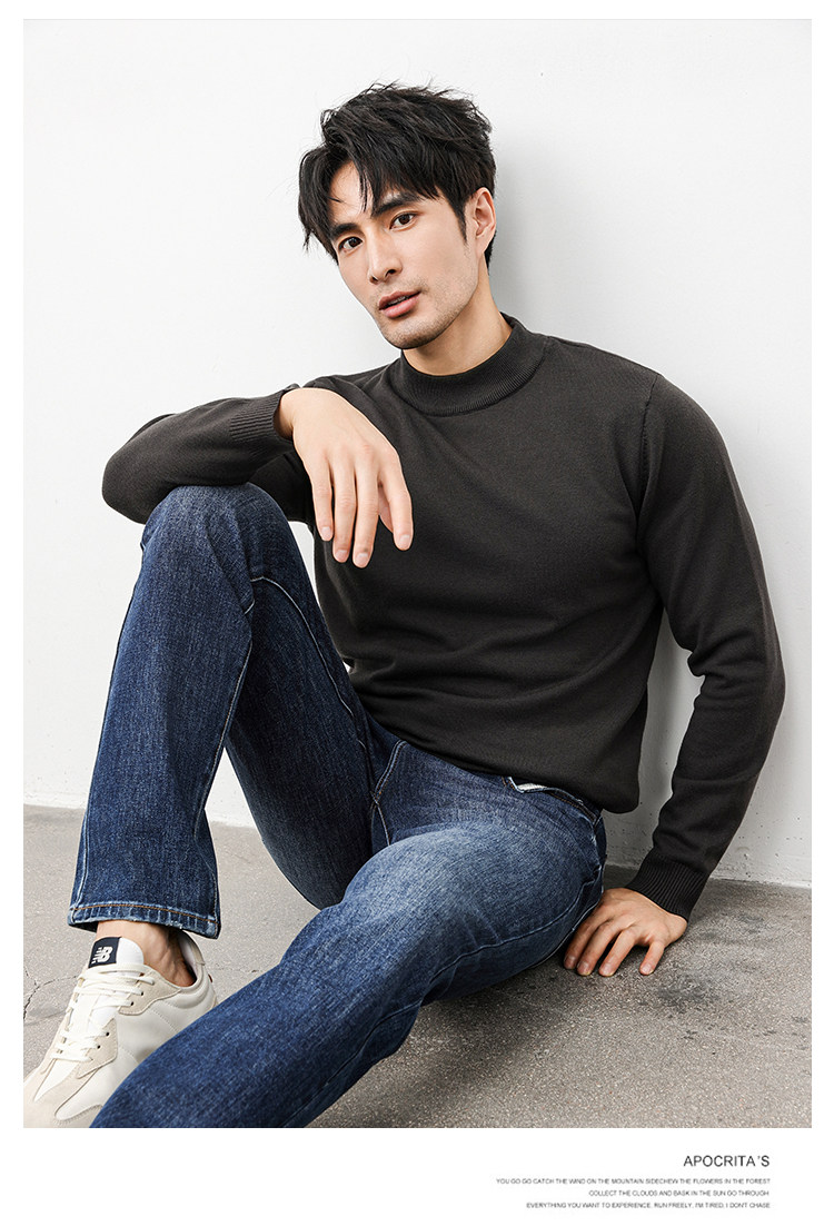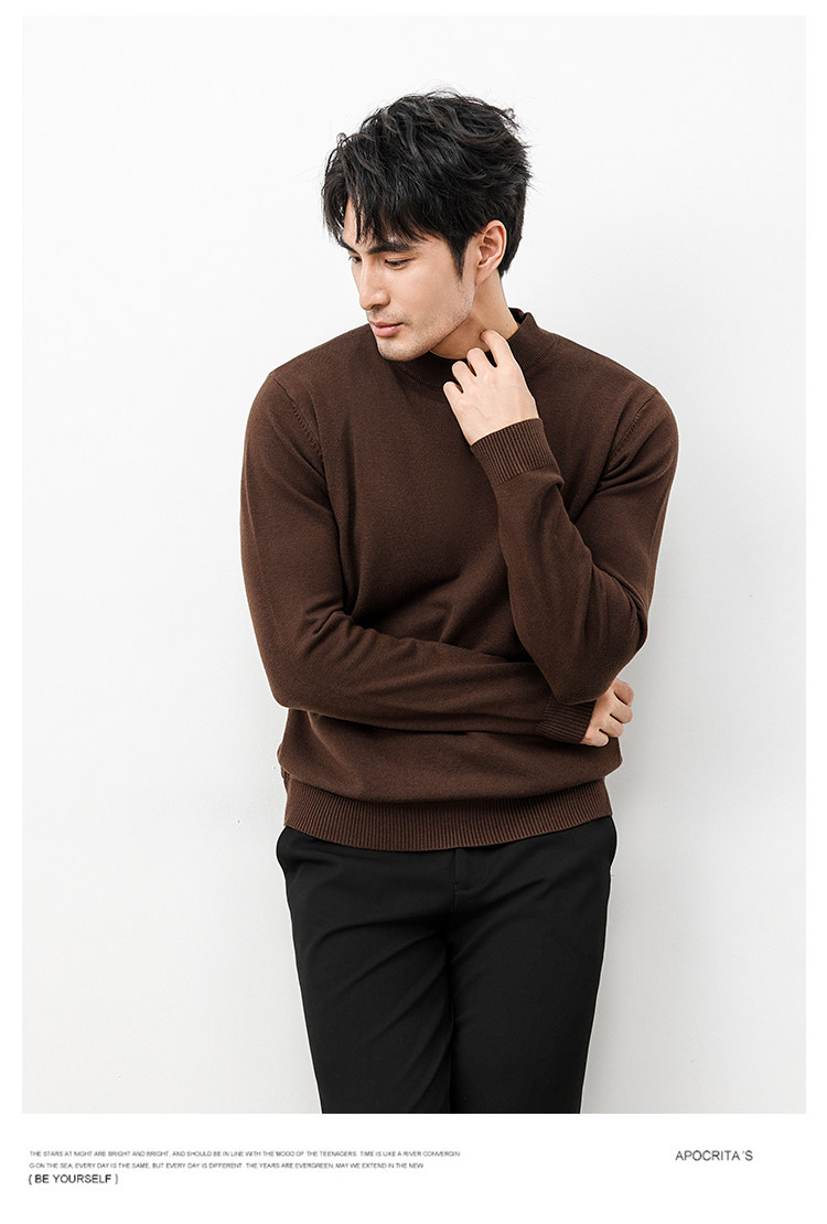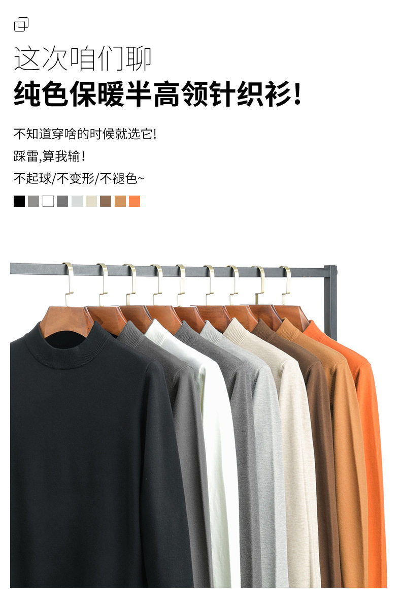 Autumn and Winter Half-Turtleneck Sweater for Men, Fleece-Lined and Thickened, Black Business Style, Korean Trendy Warm Base Layer Wool Knitwear