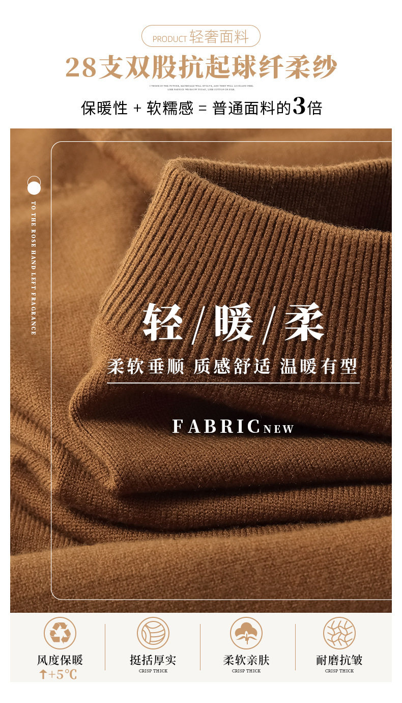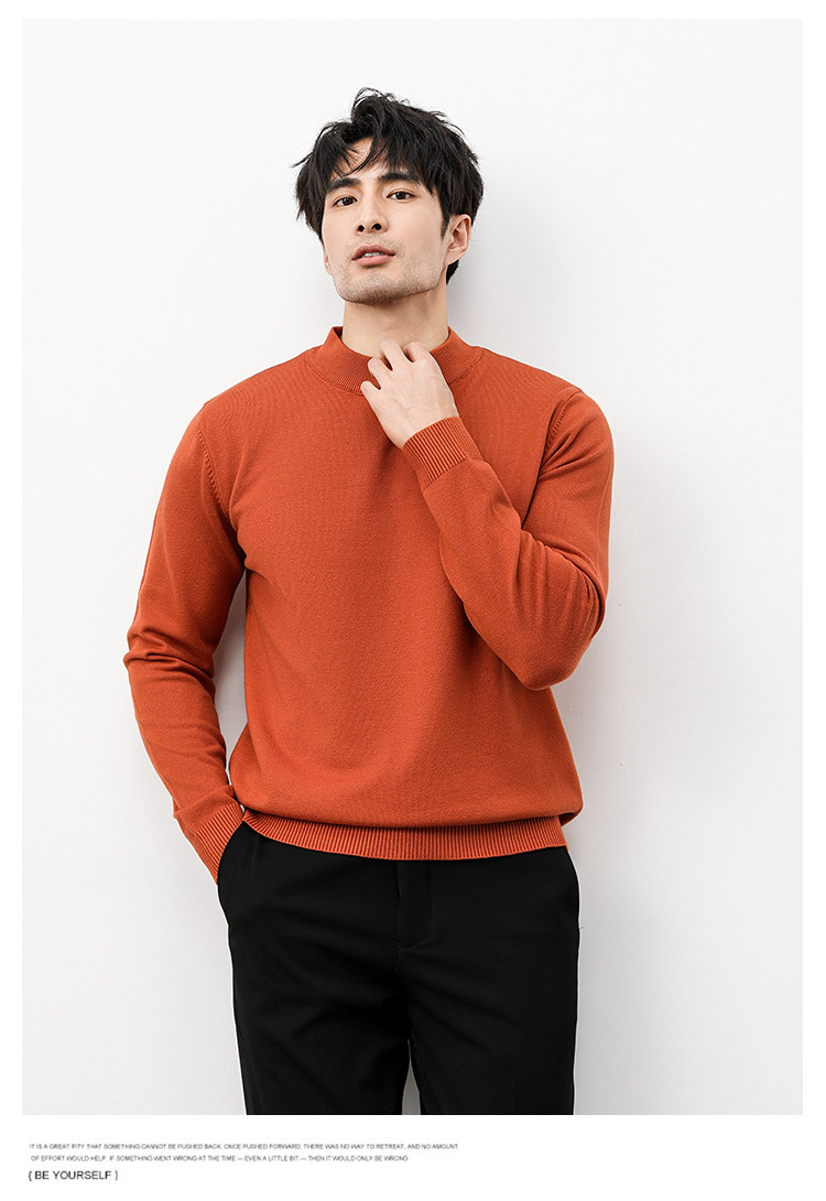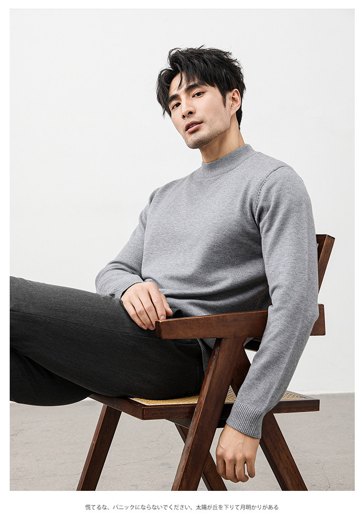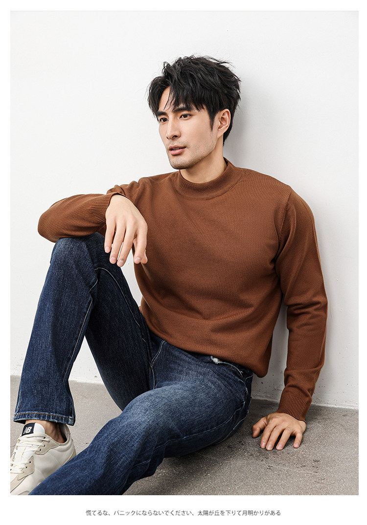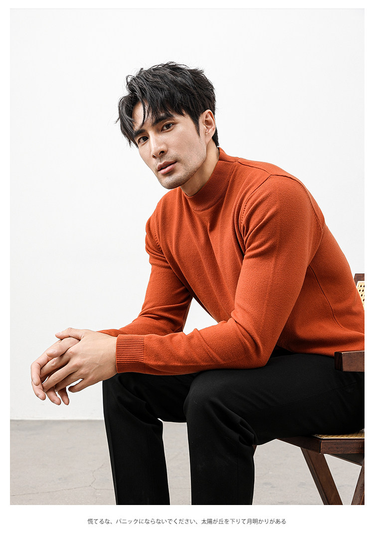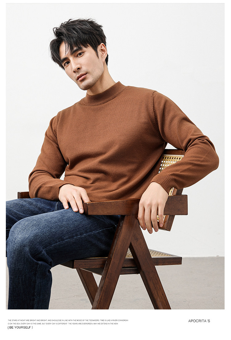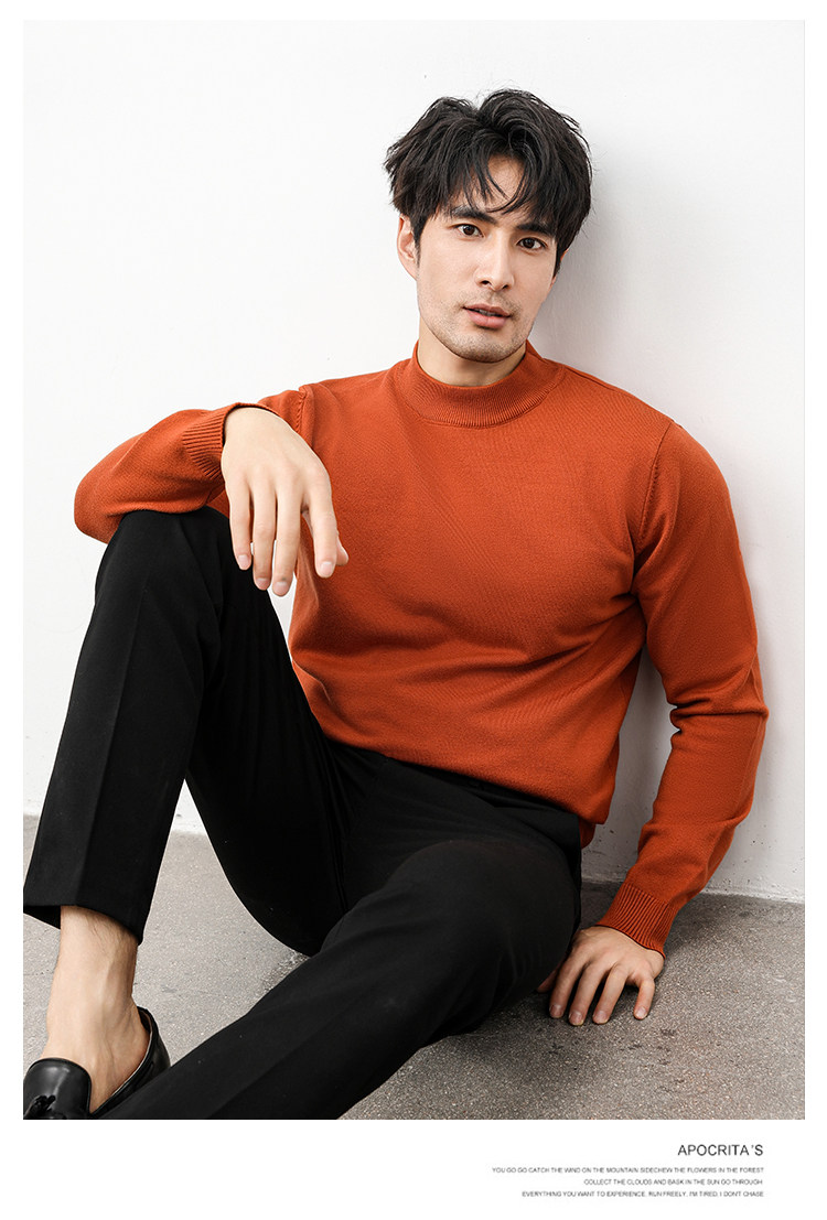 Autumn and Winter Half-Turtleneck Sweater for Men, Fleece-Lined and Thickened, Black Business Style, Korean Trendy Warm Base Layer Wool Knitwear