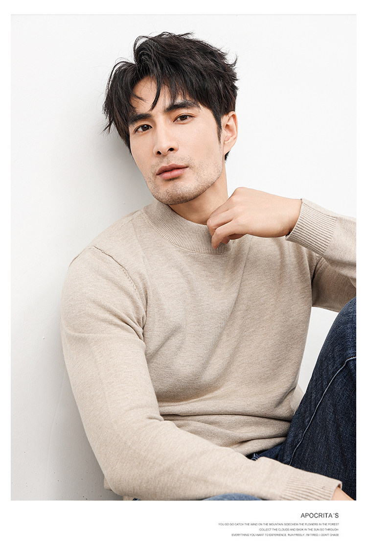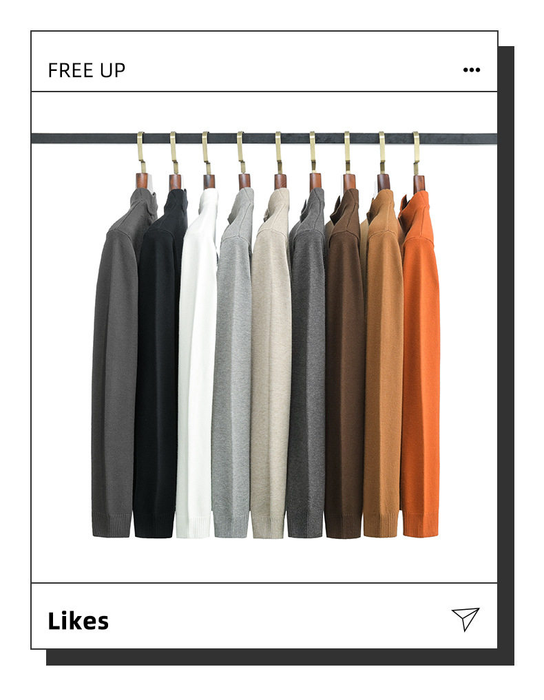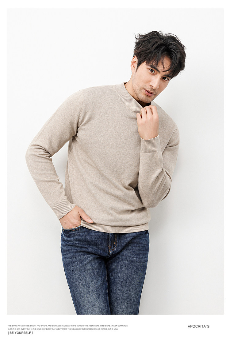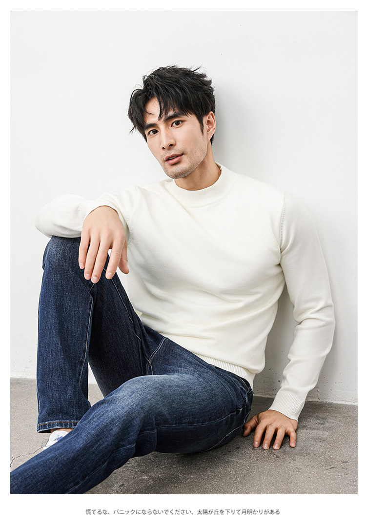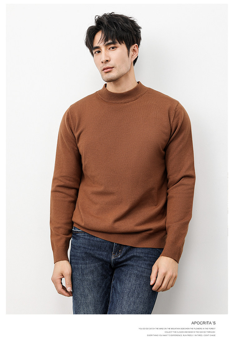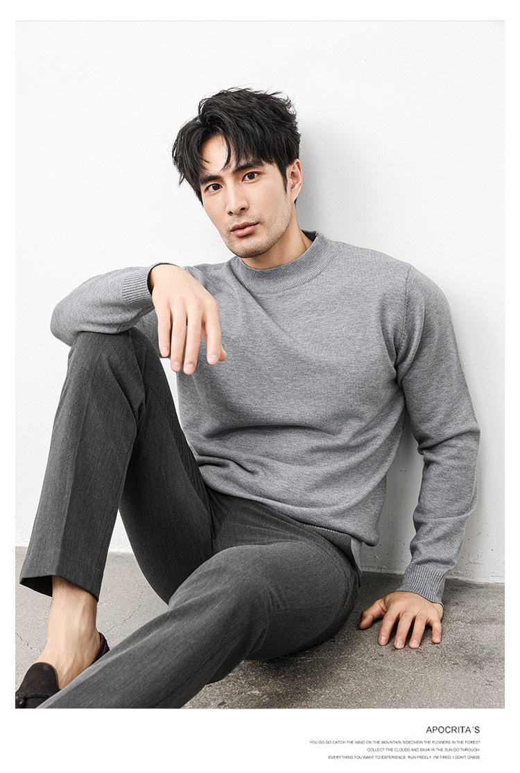Autumn and Winter Half-Turtleneck Sweater for Men, Fleece-Lined and Thickened, Black Business Style, Korean Trendy Warm Base Layer Wool Knitwear