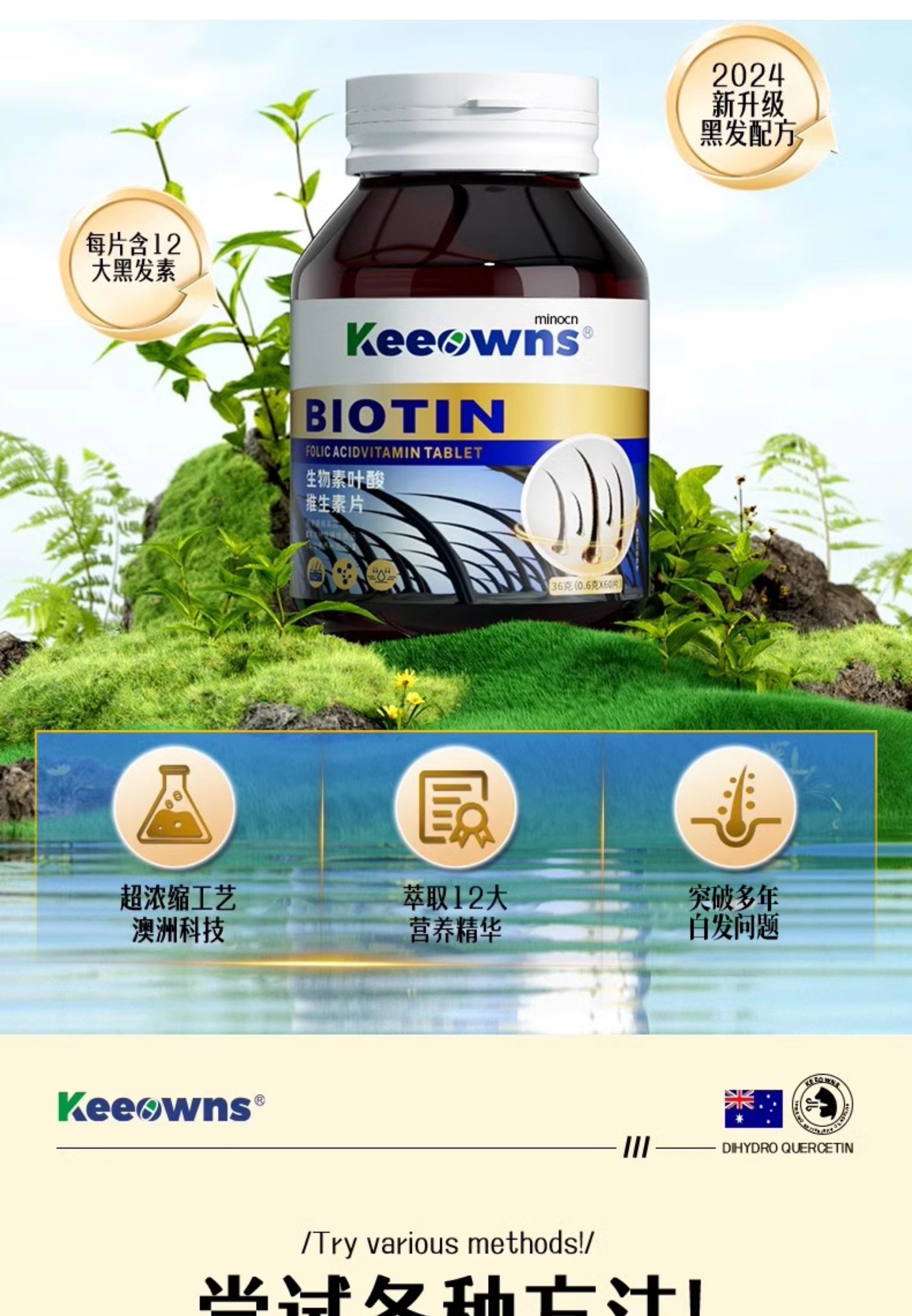 Biotin for Gray Hair, Nourishes and Turns Gray Hair Black, Vitamin B7, Treats Gray Hair at the Root, What Chinese Medicine Should Be Taken, Official Flagship Store