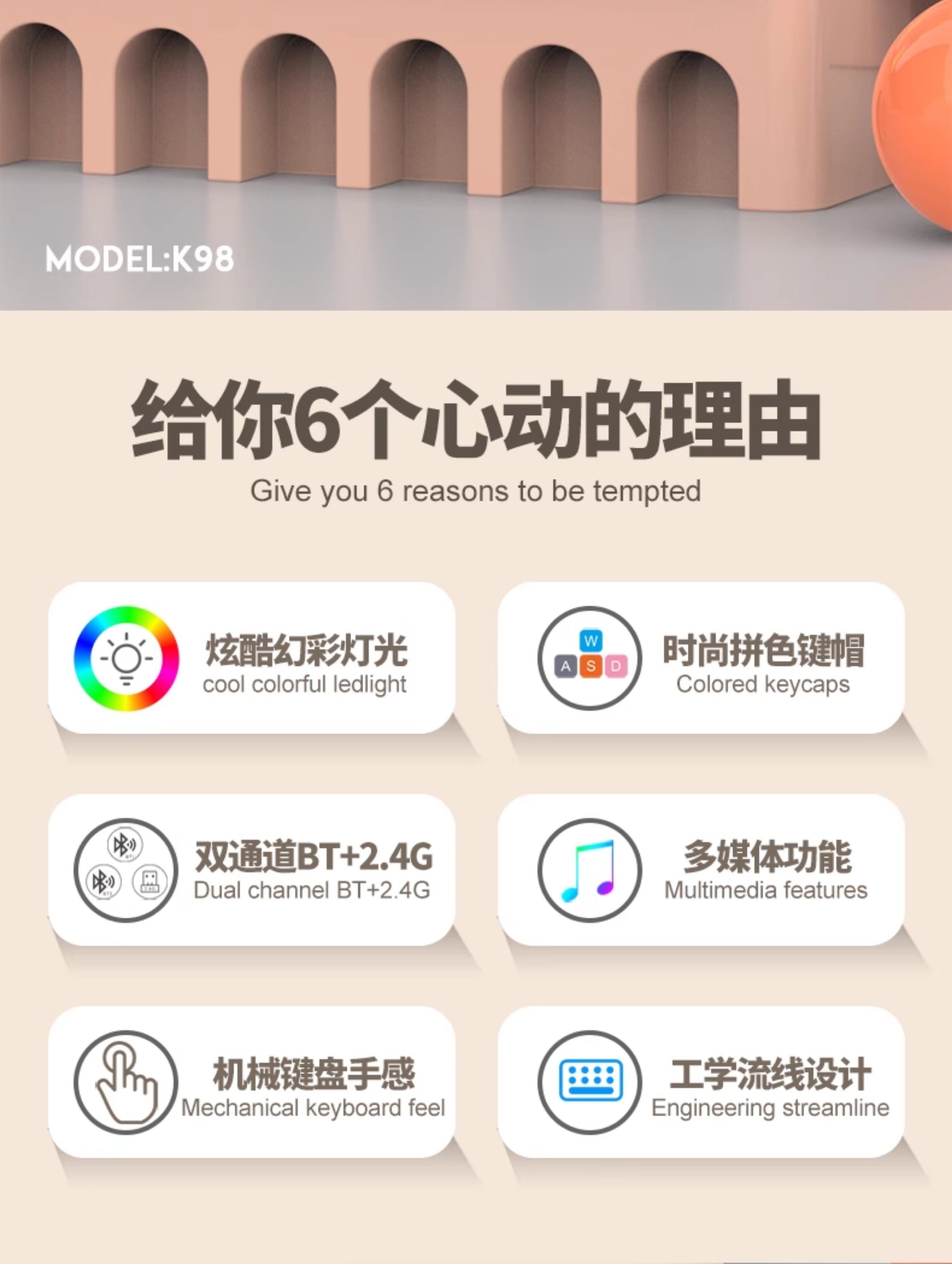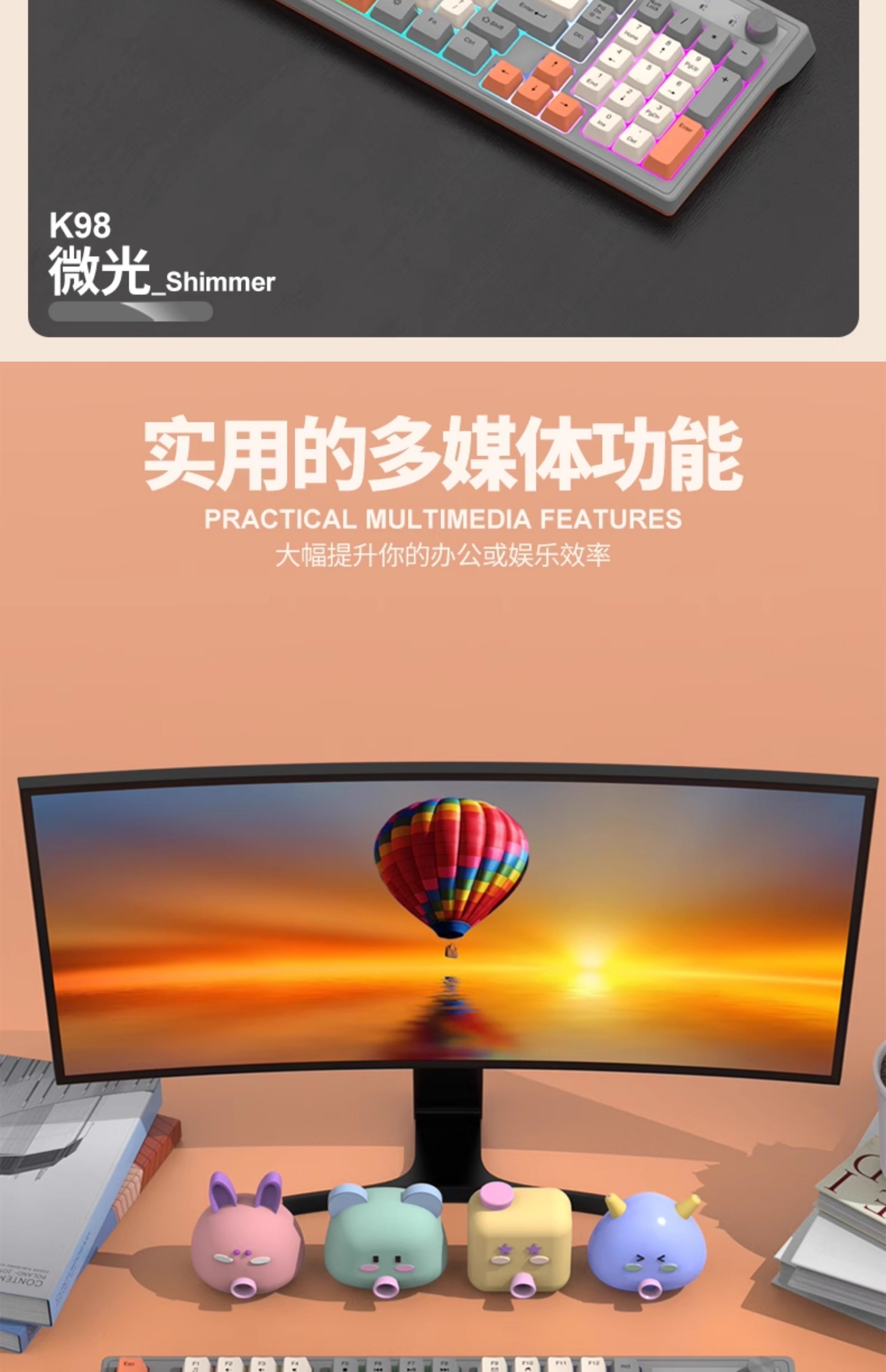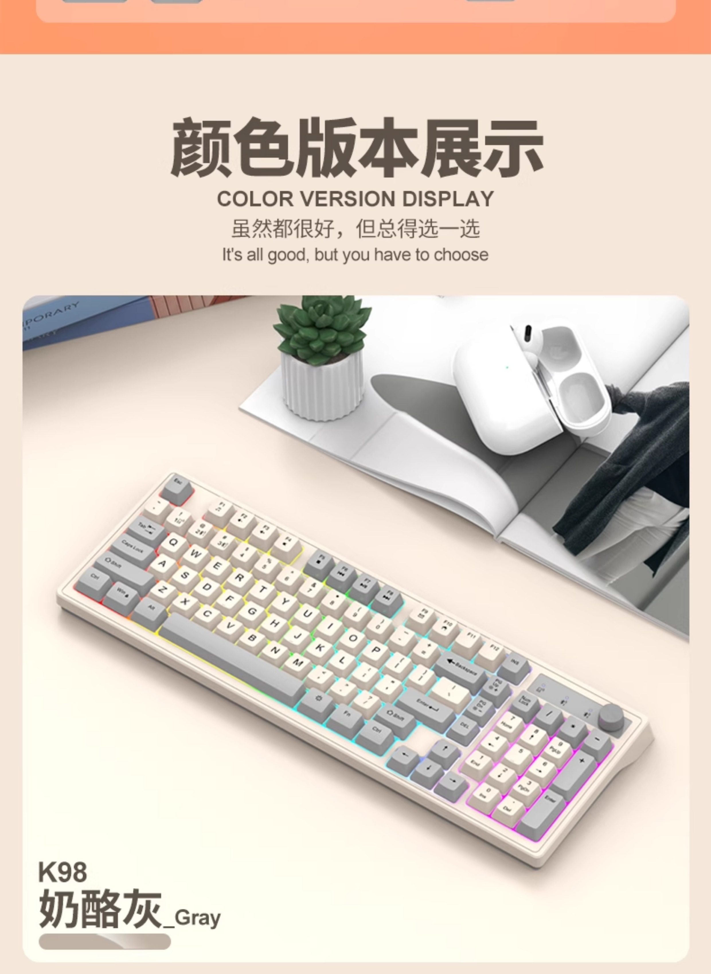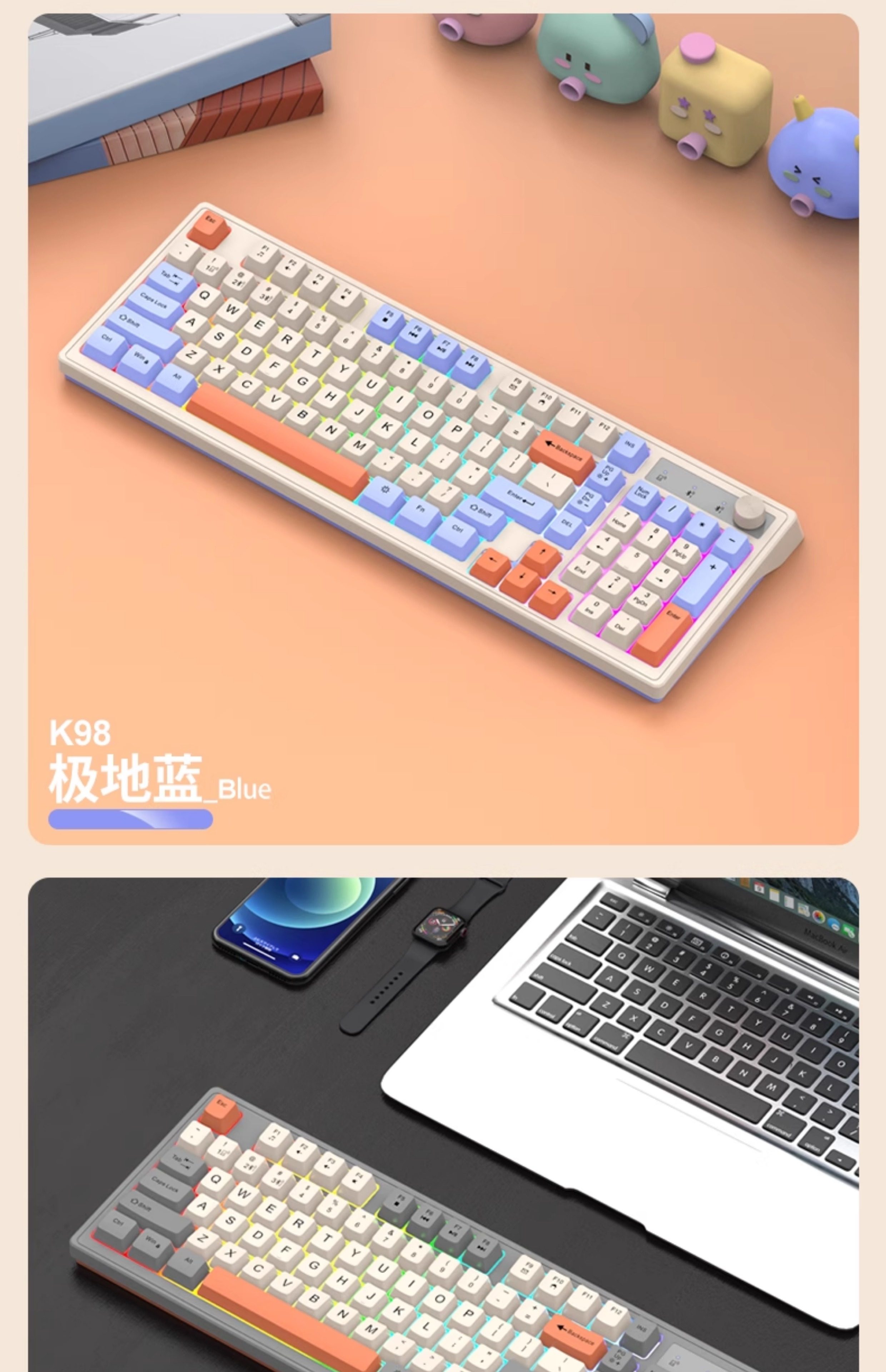 | Color Classification | K98 Shimmer Keyboard [Bluetooth + Wireless],K98 Polar Blue Keyboard [Bluetooth + Wireless],K98 Cheese Gray Keyboard [Bluetooth + Wireless] |