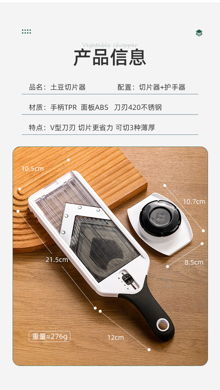 | Color Classification | New V-Shaped Slicer + Hand Guard,New V-Shaped Slicer with Hand Guard and Peeler Brush,Classic Wooden Slices + Hand Protector,Classic Extended Wooden Slicing Board with Hand Protector |