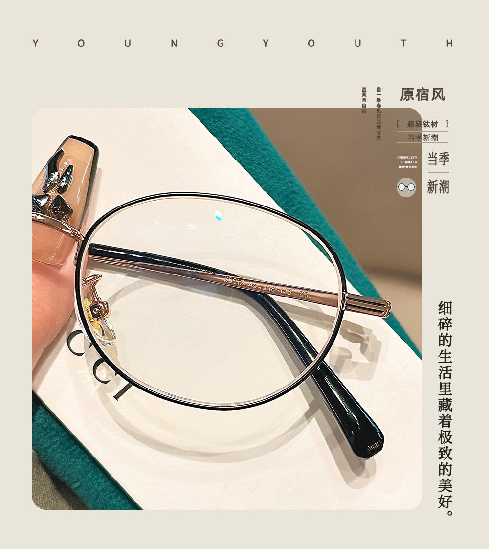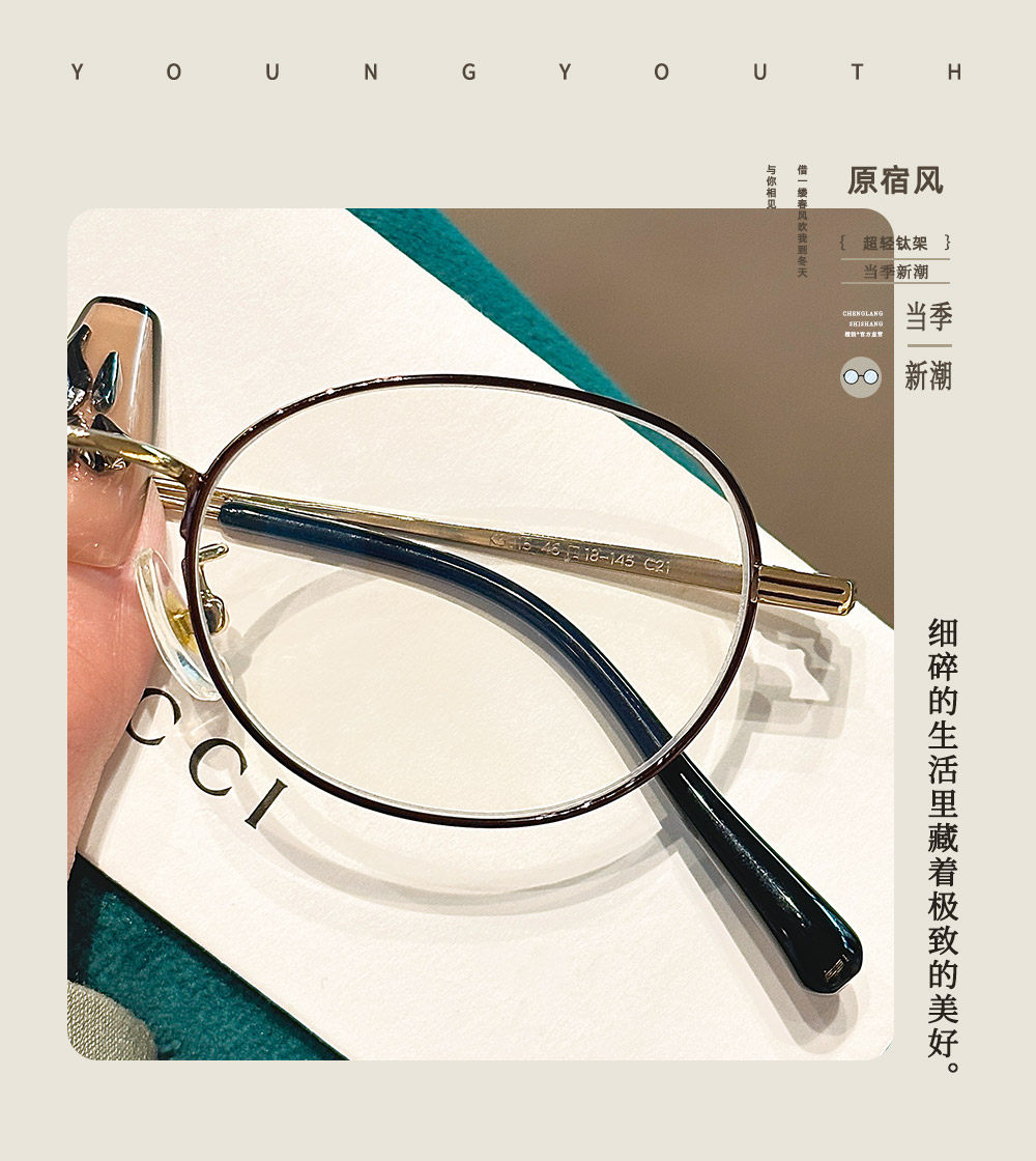 Ultra-Light Pure Titanium Myopia Glasses for Women, Customizable Prescription Online, Anti-Blue Light, Special Retro Small Round Frame Eyeglasses