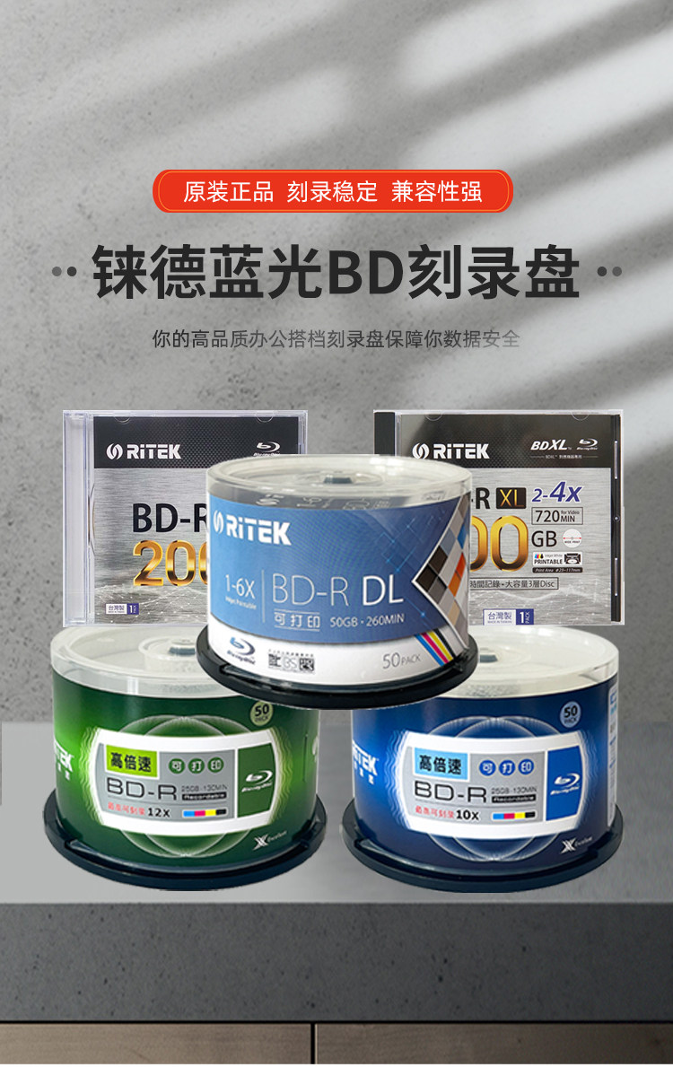 Ritek Blu-Ray Discs 25g 50g 100g 200g Blank Printable Bd-R Dl XL Burning Discs Archive-Grade Burning Discs