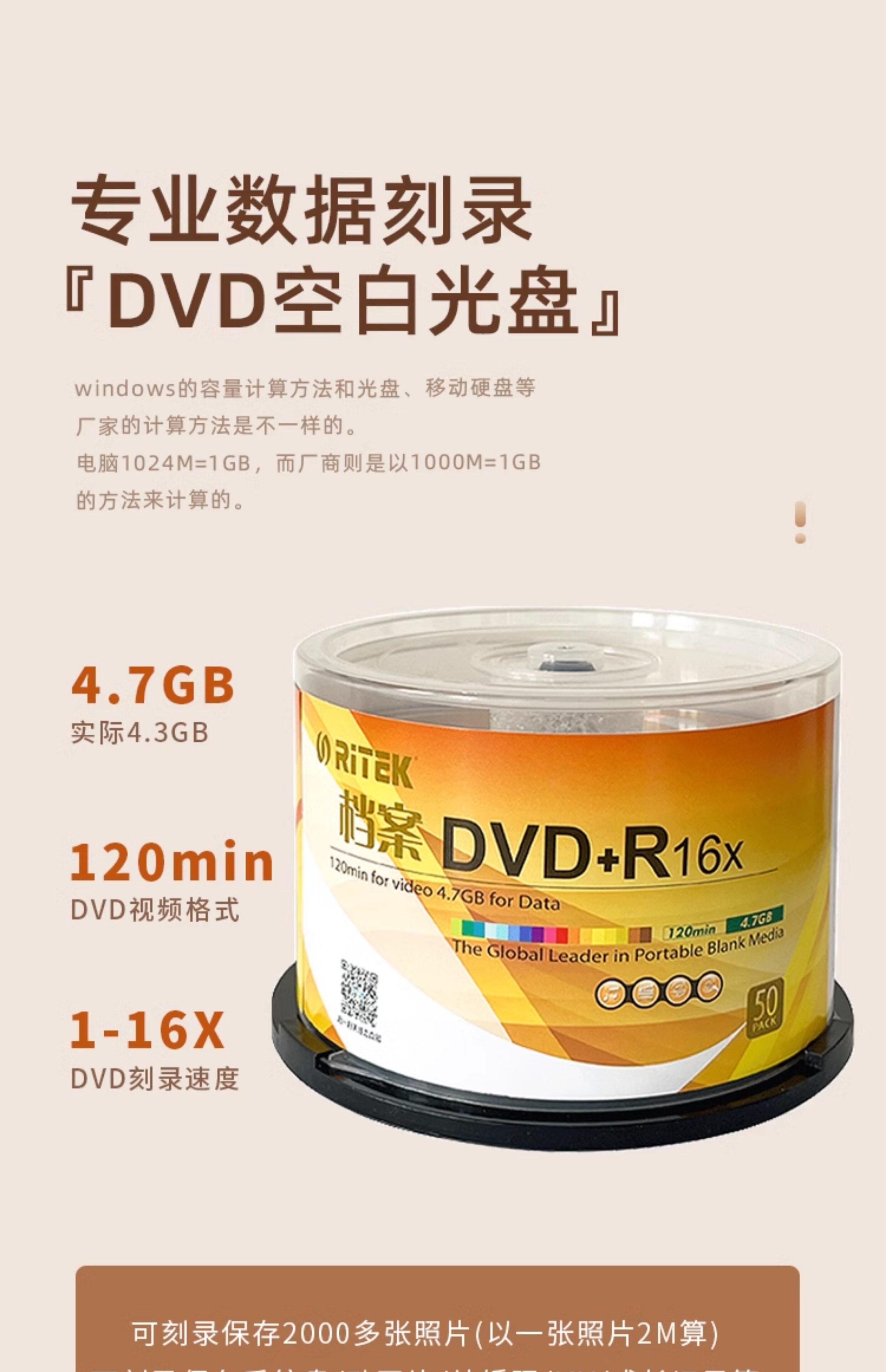 Ritek Archival Dvd Burning Disc 4.7g Blank Dvd-R Disc 16X Business Office Dvd+R Baishiman Disc