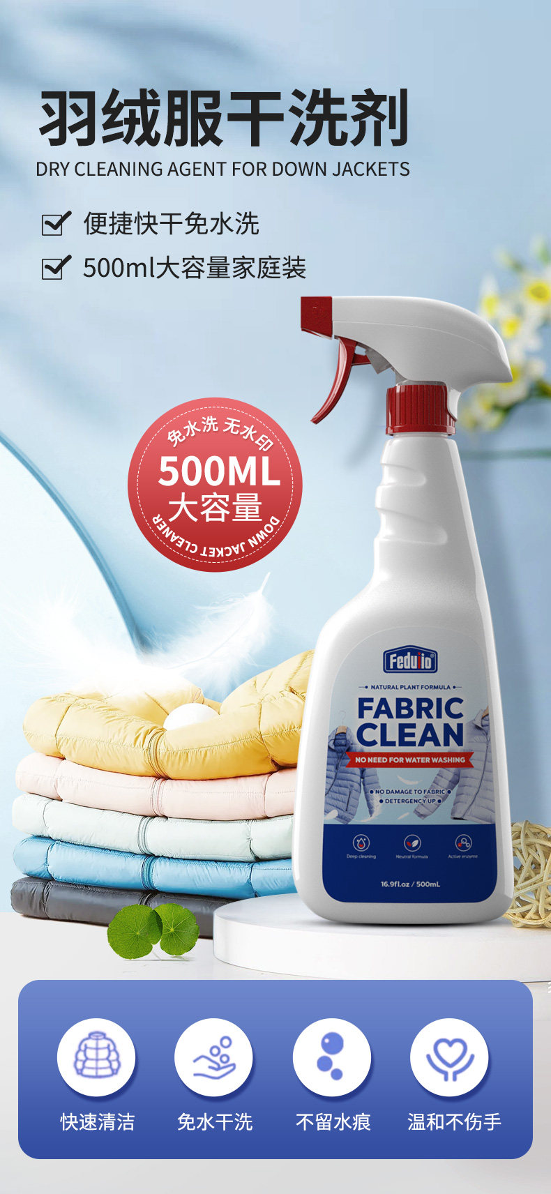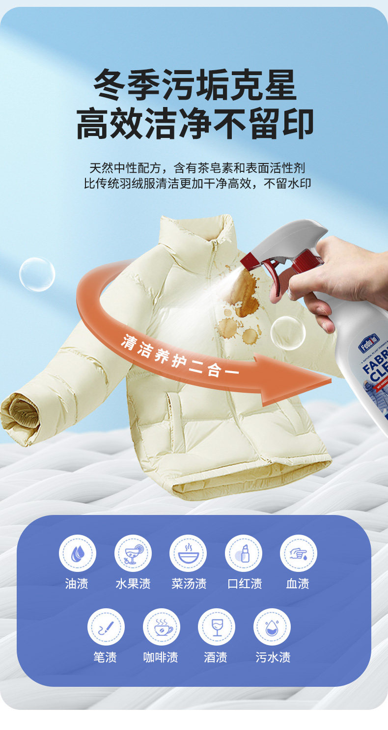 Down Jacket Cleaning Agent, Water-Free Foam Dry Cleaning Agent to Remove Oil Stains on Clothes, Oil Stains, Stubborn Stains Artifact