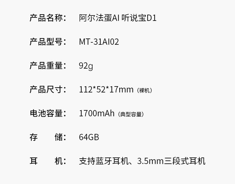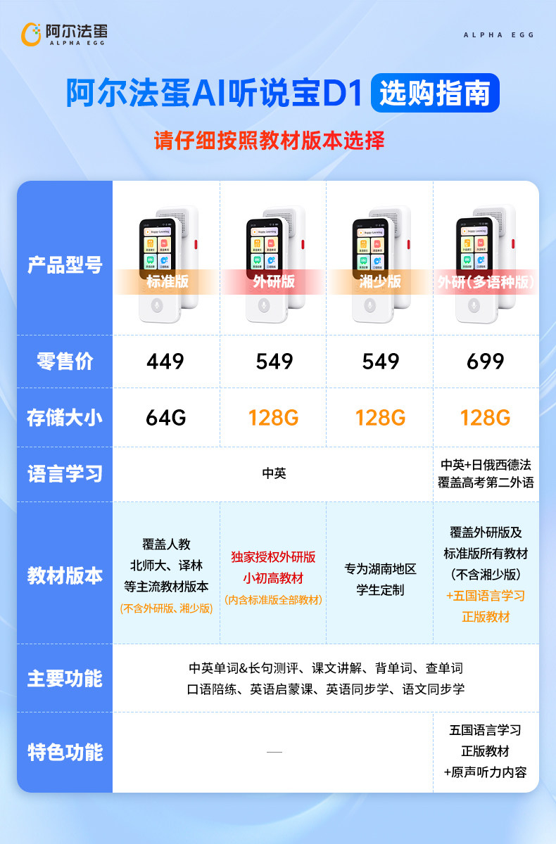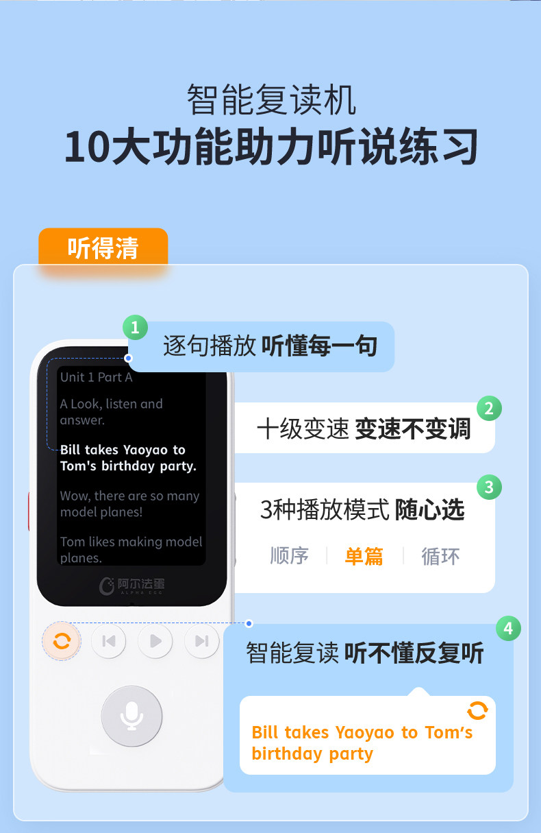 Alpha Egg Ai Listening Device D1 Listening Device with Repeater, Synchronized with New Textbooks, English Listening and Reading Tool for High School and College Entrance Exams, Learning Companion Device