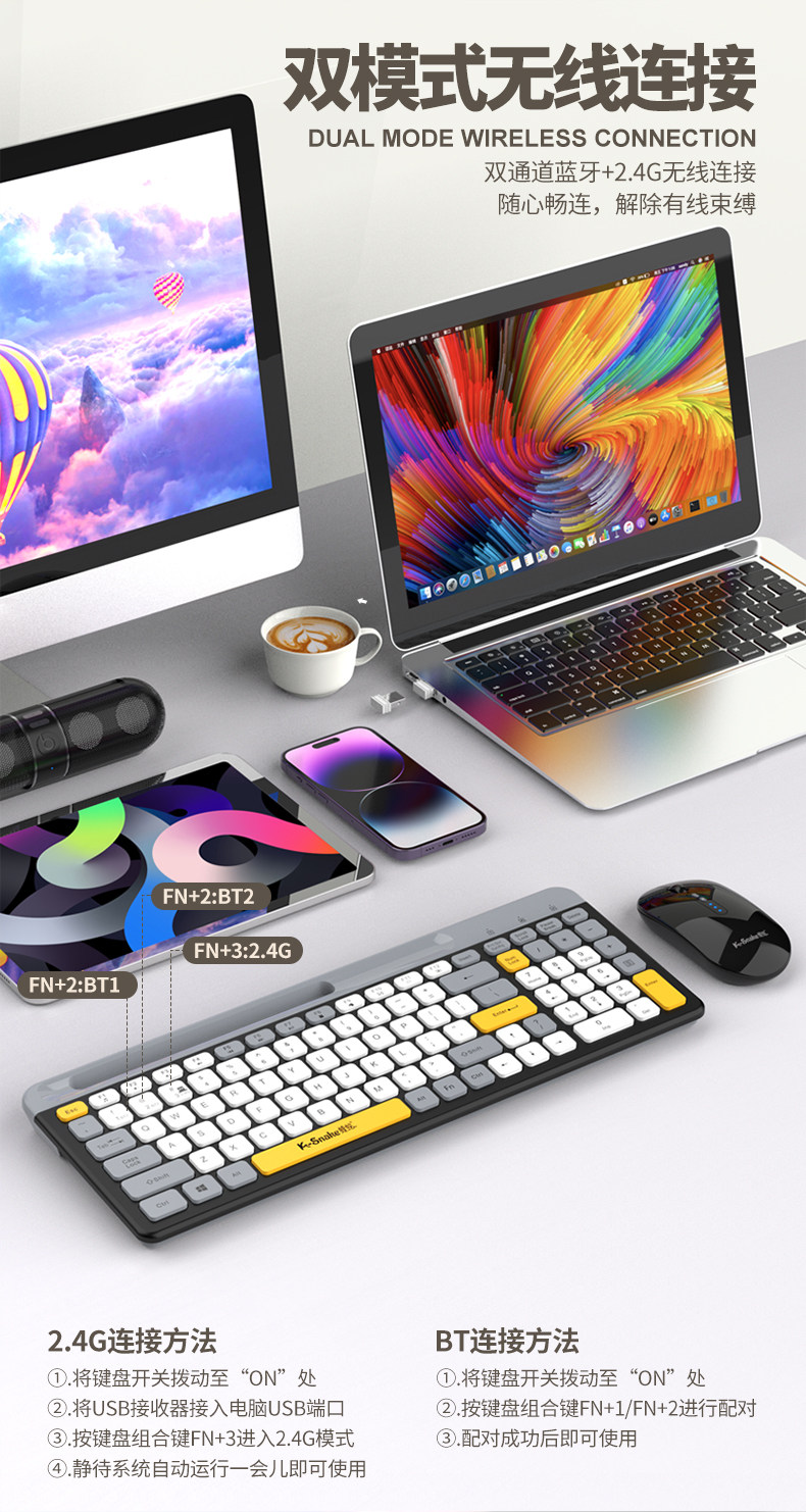 | Color Classification | K100 Shimmer[Bluetooth + Wireless],K100 Cheese Gray[Bluetooth + Wireless],K100 Shimmer Set[Keyboard+Mouse],K100 Cheese Gray Set[Keyboard+Mouse] |