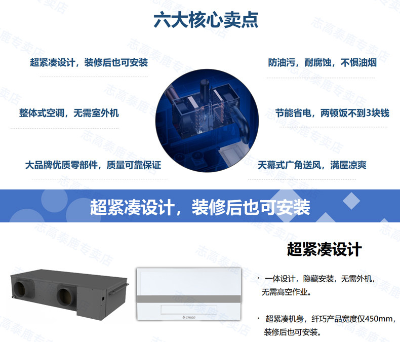 Chigo Kitchen Air Conditioner, Large 1-Ton Household Ceiling-Mounted Embedded Air Conditioner and Cooler