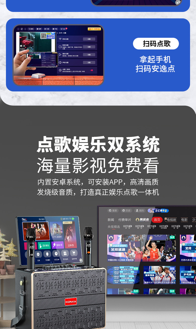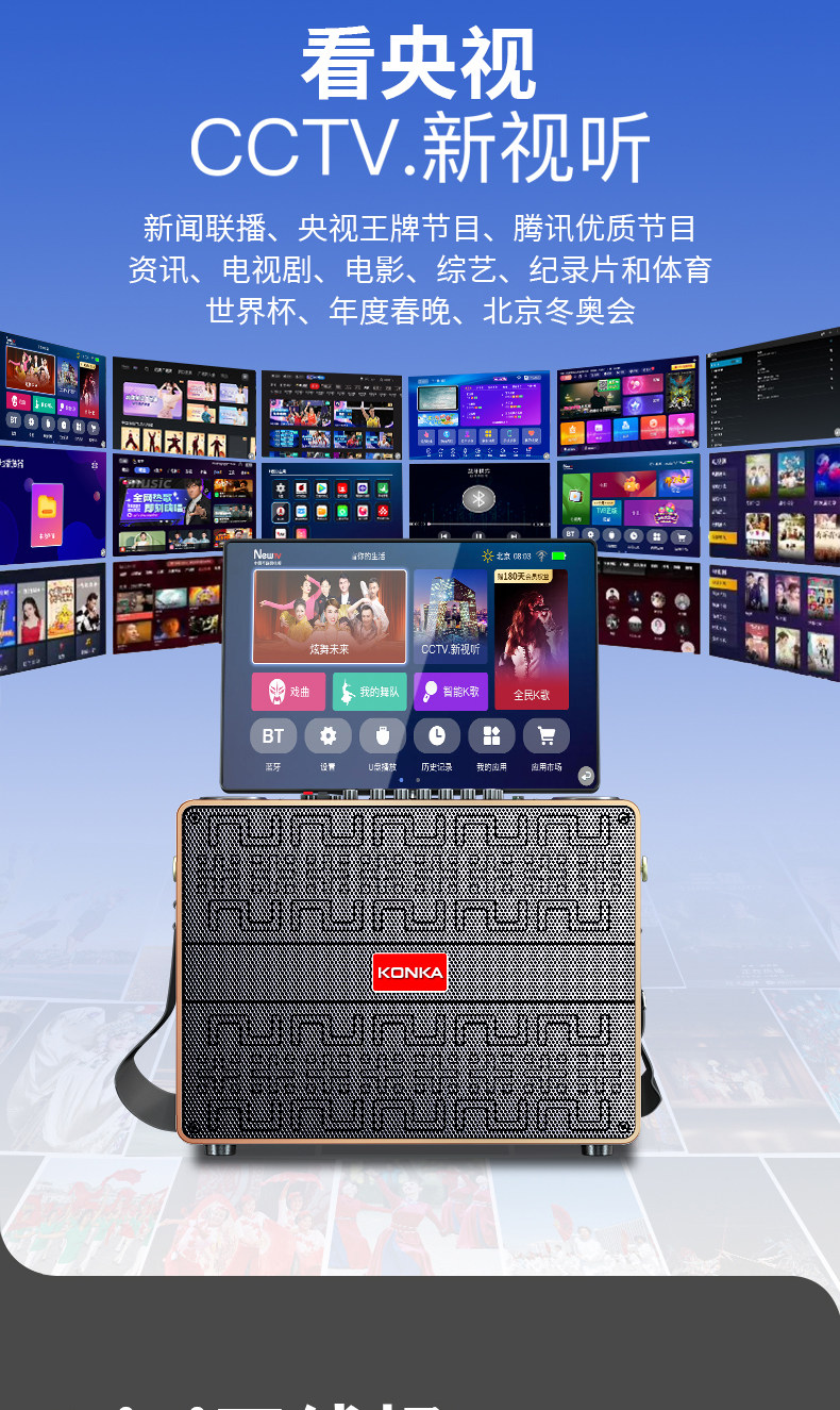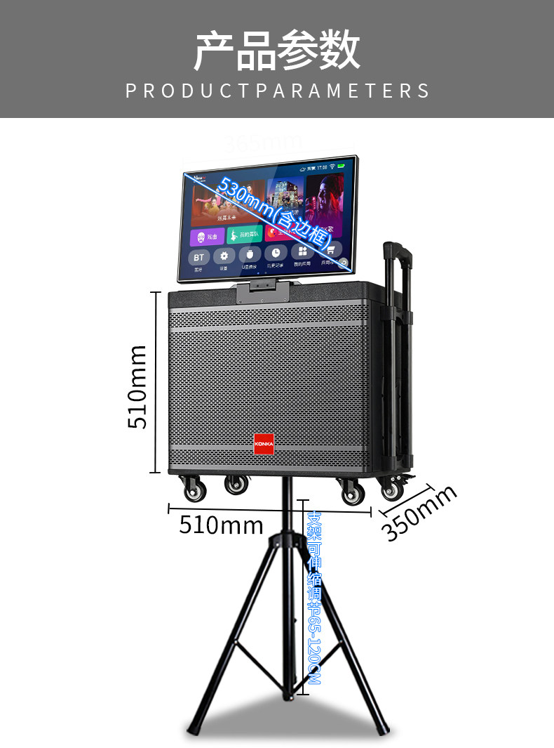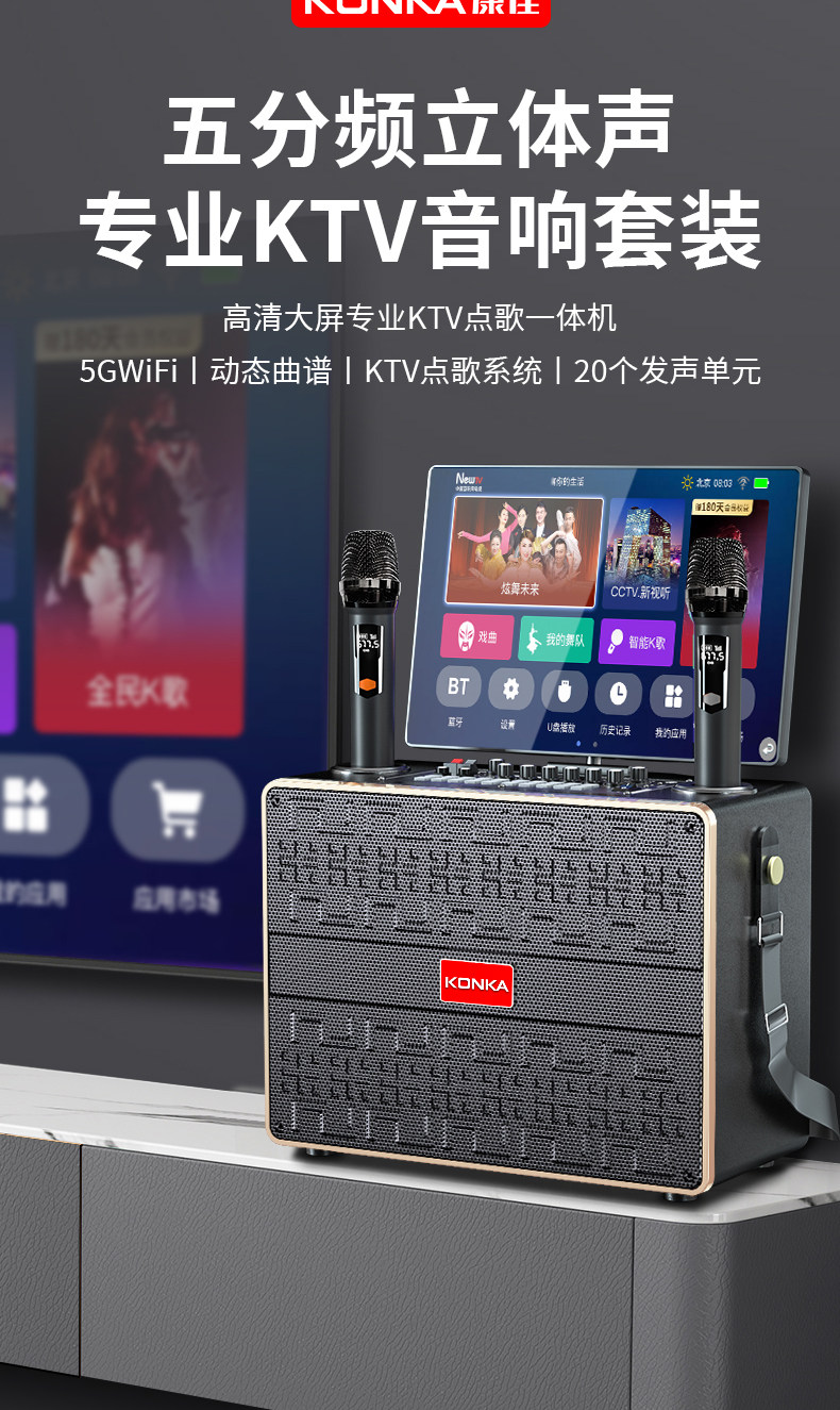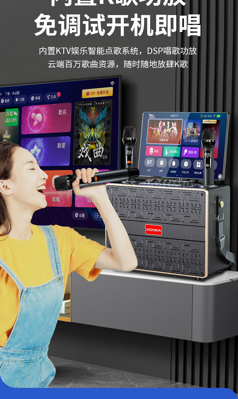 Konka Outdoor Karaoke Speaker Square Dance Speaker with Display Screen Home Ktv Set All-In-One Karaoke Machine