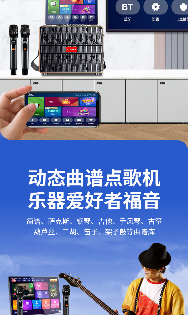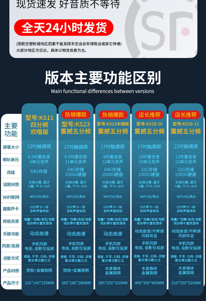 Color Classification {Four-Channel Singing Version} Wifi Networking·Ktv System·Dance·Opera·Music Score· 12inch Screen·64G Storage + 2 Rechargeable Microphones,{Four-Channel Singing Version} Wifi Networking·Ktv System·Dance·Opera·Music Score· 12inch Screen·64G Storage+2 Rechargeable Microphones+Stand,{Four-Channel Singing Version} Wifi Networking·Ktv System·Dance·Opera·Music Score· 12inch Screen·128G Storage + 2 Rechargeable Microphones,{Four-Channel Singing Version} Wifi Networking·Ktv System·Dance·Opera·Music Score· 12inch Screen·128G Storage+2 Rechargeable Microphones+Stand,{Five-Way 19-Speaker} Wifi Networking·Ktv System·Dance·Opera·Music Score· 17inch Screen·1000G+2 Rechargeable Microphones,{Five-Way 19-Speaker} Wifi Networking·Ktv System·Dance·Opera·Music Score· 17inch Screen·1000G+2 Rechargeable Microphones+64Gu Disk,{Five-Way 19-Speaker} Wifi Networking·Ktv System·Dance·Opera·Music Score· 17inch Screen·1000G+2 Rechargeable Microphones+64Gu Disk+Bracket,{Five-Way 12-Speaker·Wooden Box}Wifi Networking·Ktv System·Dance·Opera·Music Score· 17inch Screen·1000G+2 Rechargeable Microphones,{Five-Way 12-Speaker·Wooden Box}Wifi Networking·Ktv System·Dance·Opera·Music Score· 17inch Screen·1000G+64U Disk+2 Rechargeable Microphones,{Five-Way 12-Speaker·Wooden Box}Wifi Networking·Ktv System·Dance·Opera·Music Score· 17inch Screen·1000G+64U Disk+2 Rechargeable Microphones+Stand,{Five-Way 18-Speaker·Wooden Box}Wifi Networking·Ktv System·Dance·Opera·Music Score· 17inch Screen·1000G+2 Metal Microphones+64Gu Disk,{Five-Way 18-Speaker·Wooden Box}Wifi Networking·Ktv System·Dance·Opera·Music Score· 17inch Screen·1000G+2 Metal Microphones+64Gu Disk+Bracket,{Five-Way 21-Speaker·Wooden Box}Wifi Networking·Ktv System·Dance·Opera·Music Score· 22inch Screen·1000G+2 Metal Microphones+64Gu Disk,{Five-Way 21-Speaker·Wooden Box}Wifi Networking·Ktv System·Dance·Opera·Music Score· 22inch Screen·1000G+2 Metal Microphones+64Gu Disk+Bracket