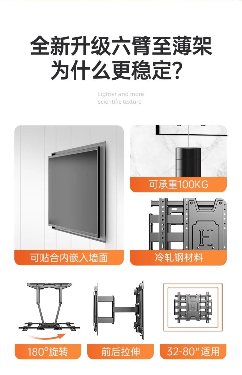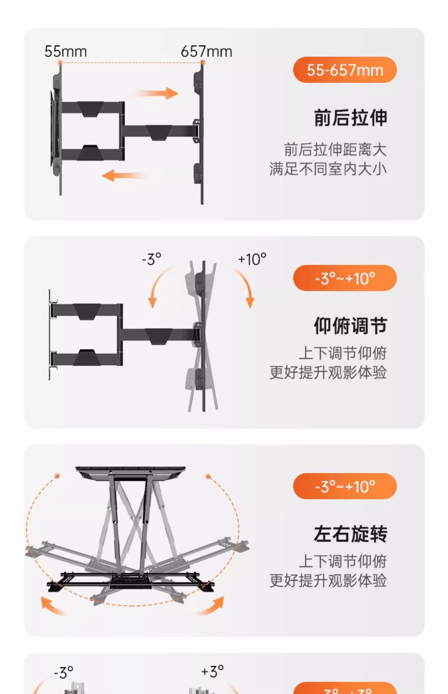 Tv Telescopic Wall Mount Swivel Bracket Universal for 55 65 75 85 86 100inch All-In-One Devices