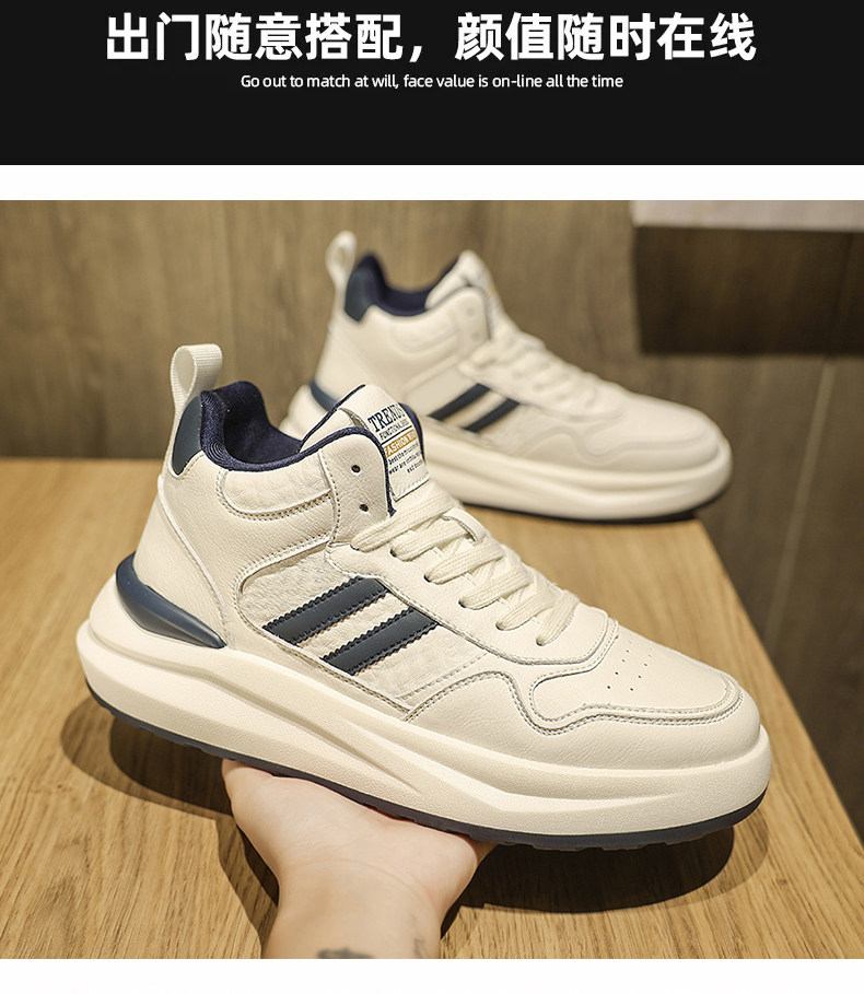 High-Top Men's Shoes for Autumn and Winter 2025, New Style with a High-End Feel, Versatile for Sports and Leisure, Thick-Soled Height-Increasing White Sneakers, Trendy Shoes