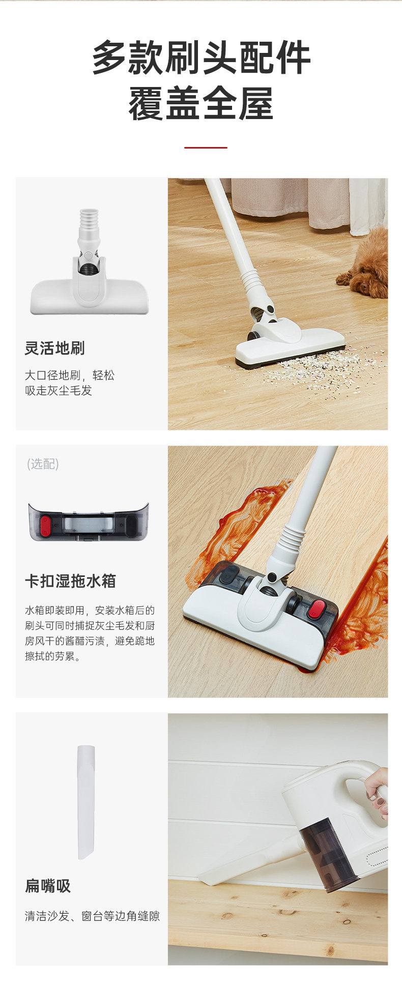 | Additional Features | Disinfection,Mop the Floor,Sterilization,Lighting,Anti-Hair Entanglement,Pet Cleaning,Remove Mites |