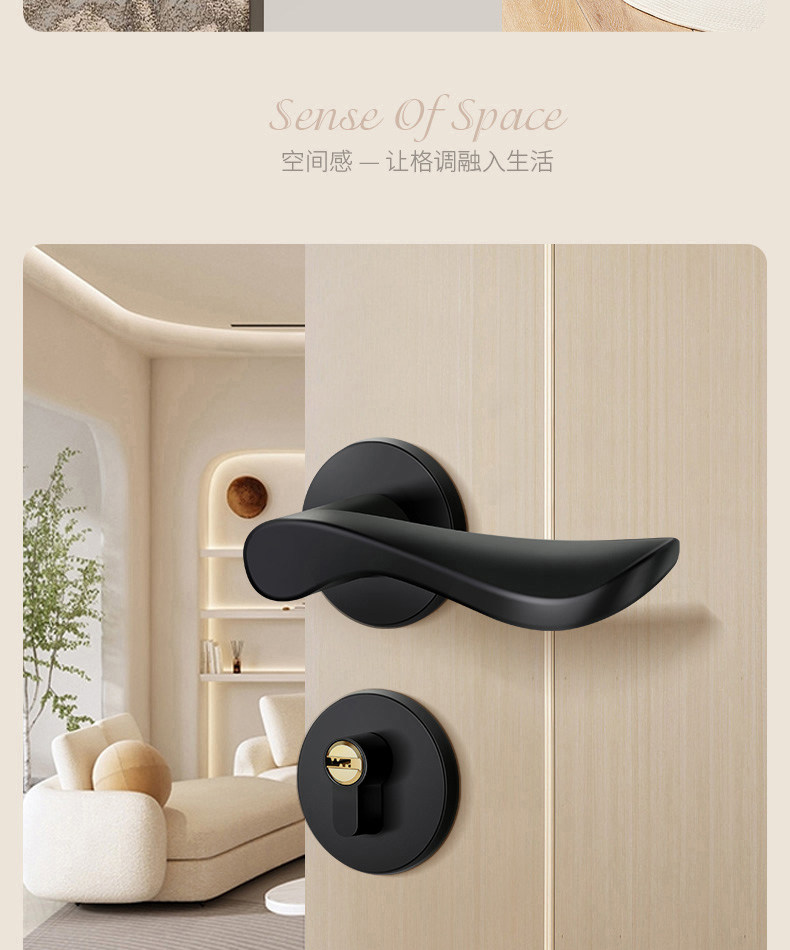 Black Bedroom Door Lock Indoor Wooden Door Lock Room Door Handle Universal Lock Split Silent Magnetic Lock