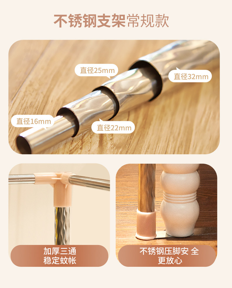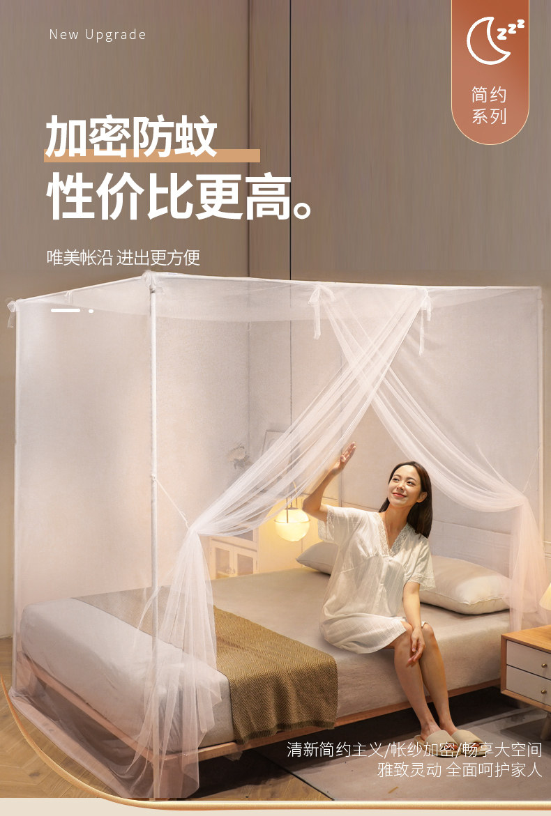 Floor-Standing Single-Door Mosquito Net 2025 New Model for Home Bedroom, Traditional Old-Style with Thickened and Reinforced Support Poles, No Installation Required for Bed
