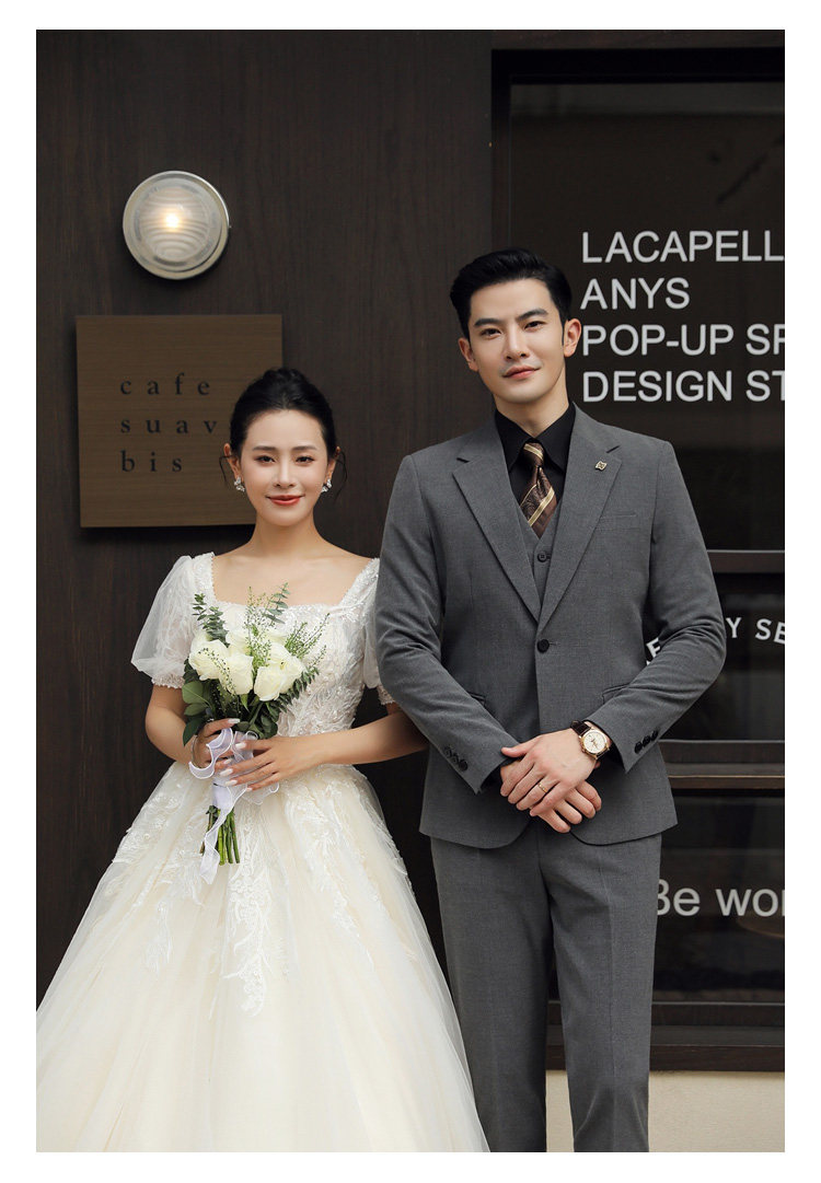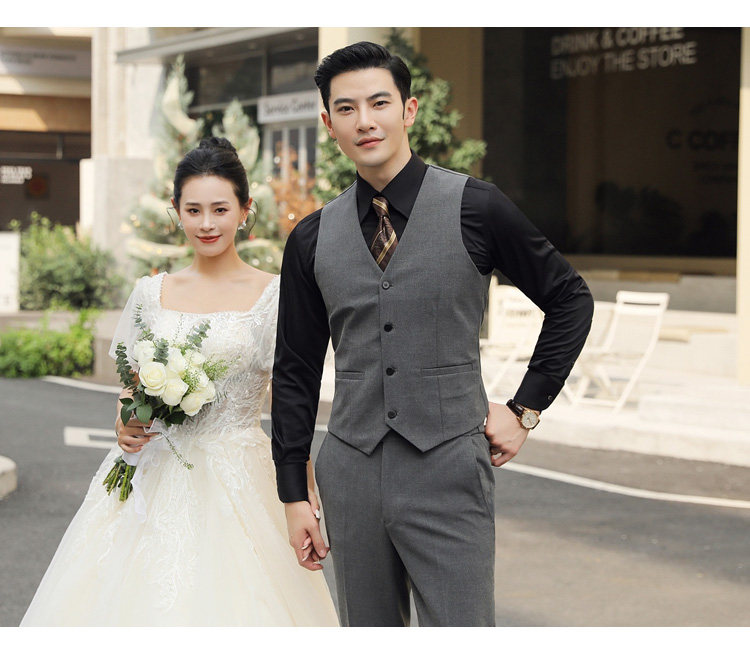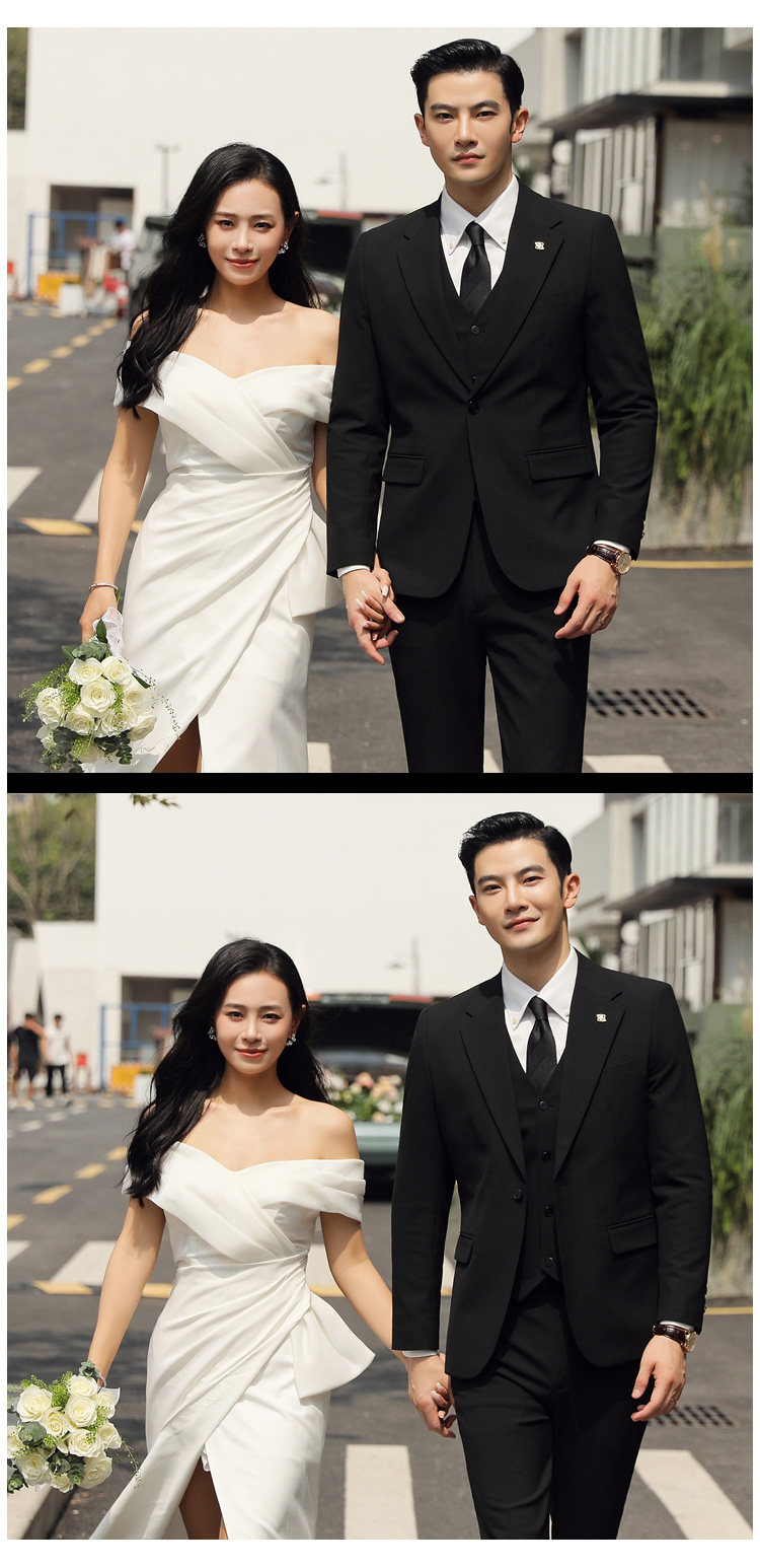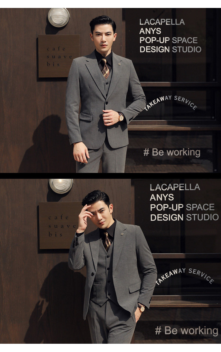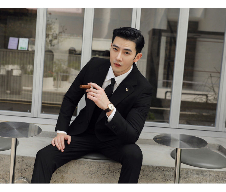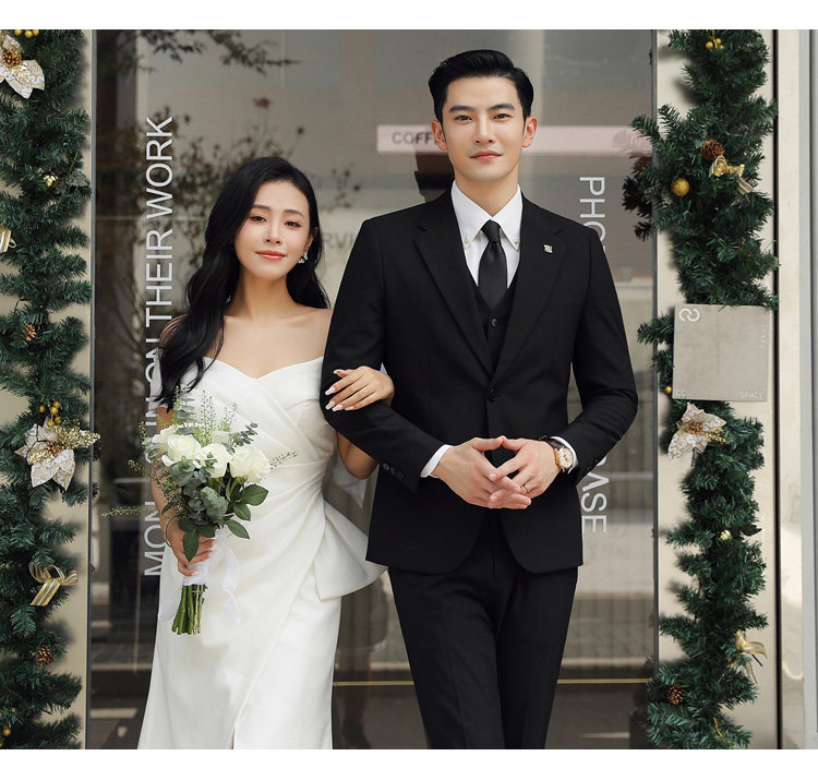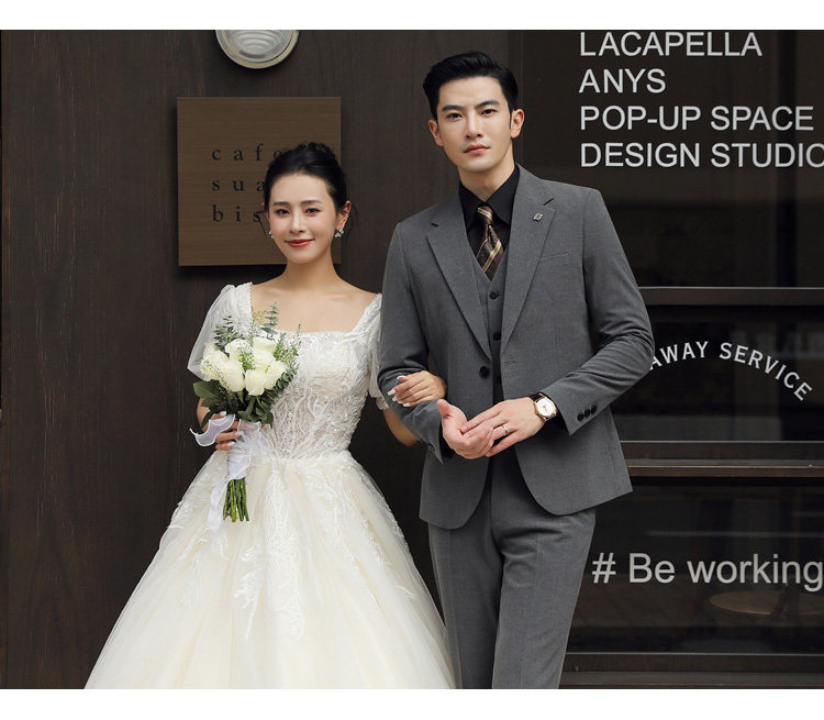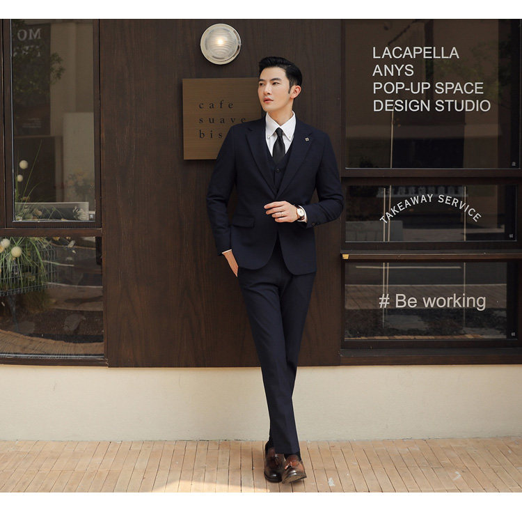 Groom's Wedding Suit, Men's Slim-Fit Business Formal Suit, Men's Korean-Style British-Style Groomsmen's Three-Piece Suit