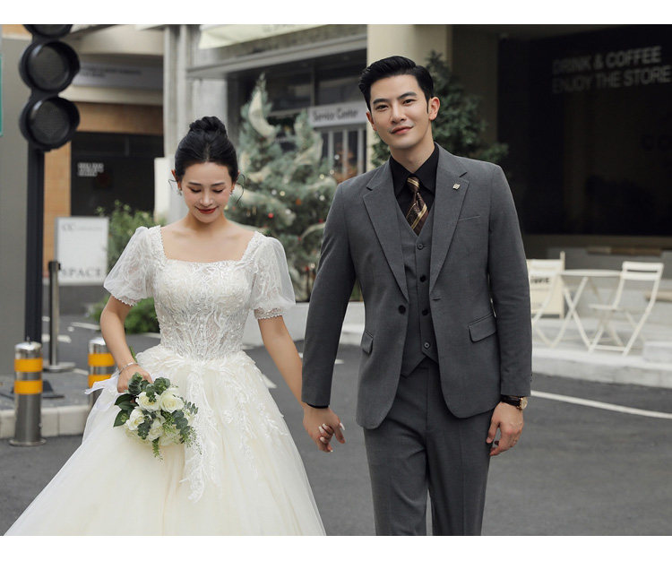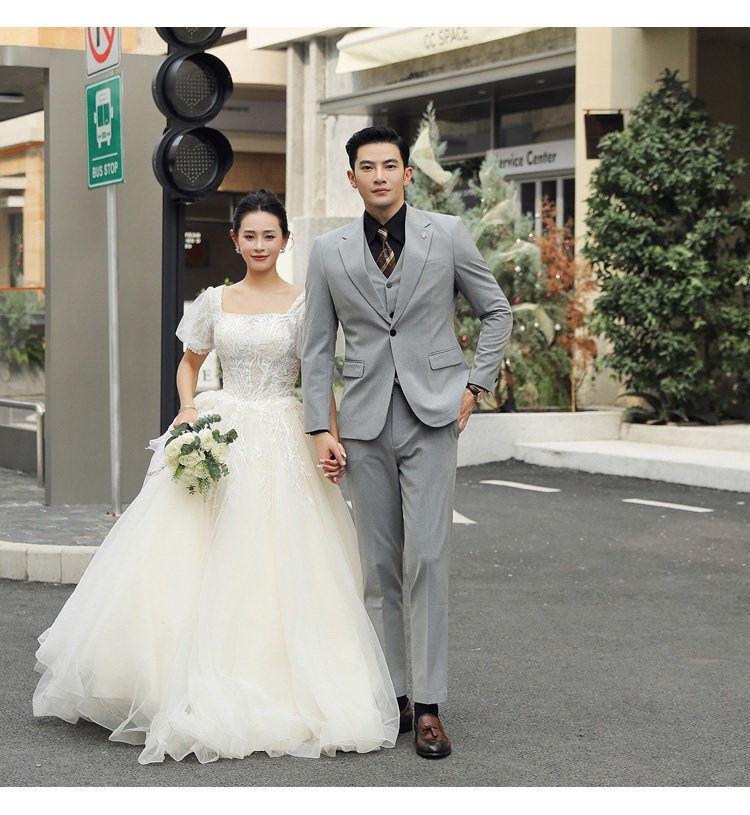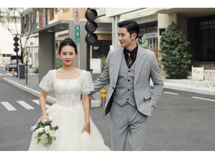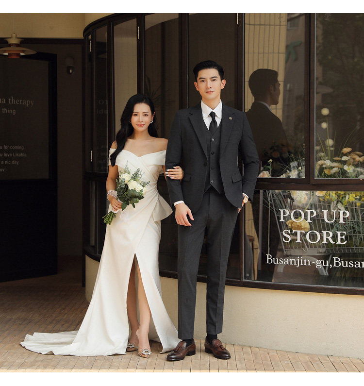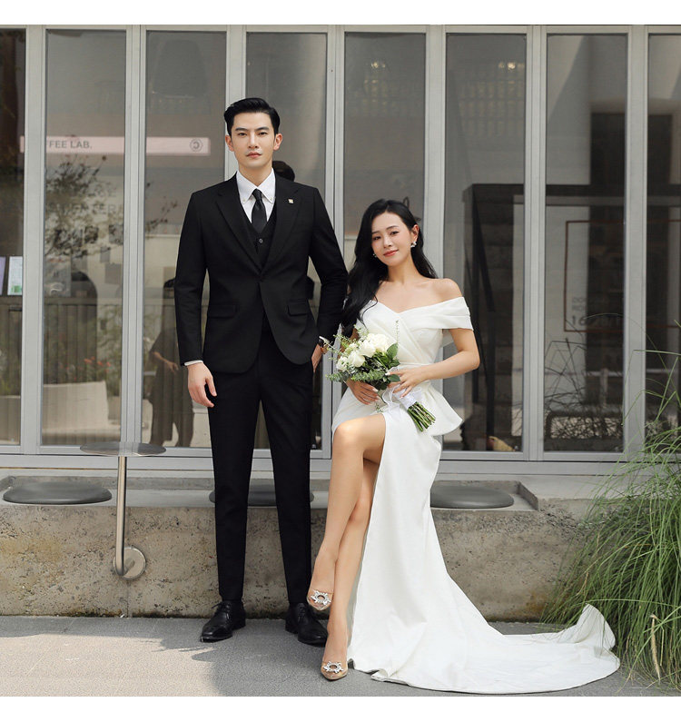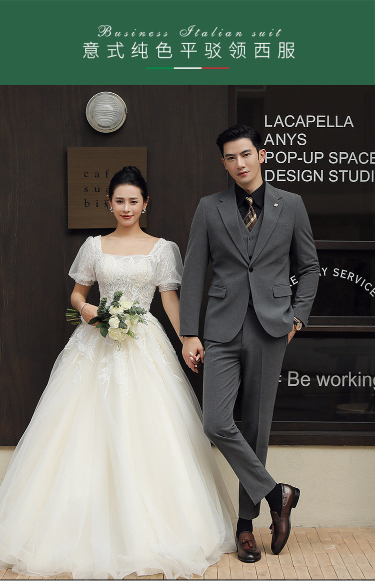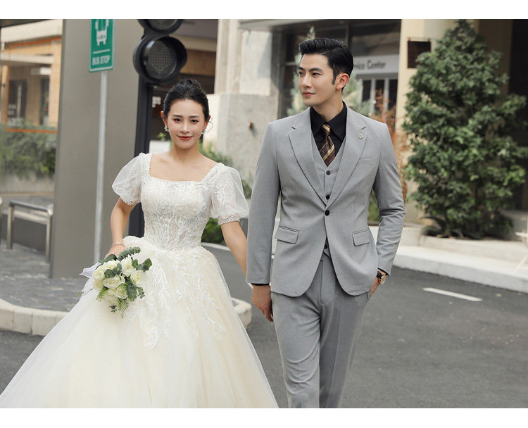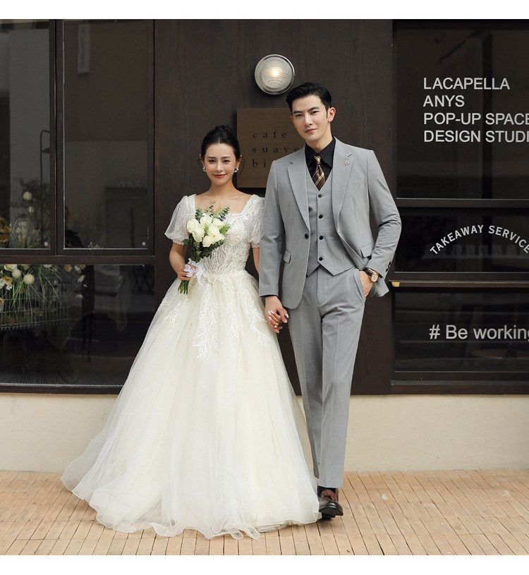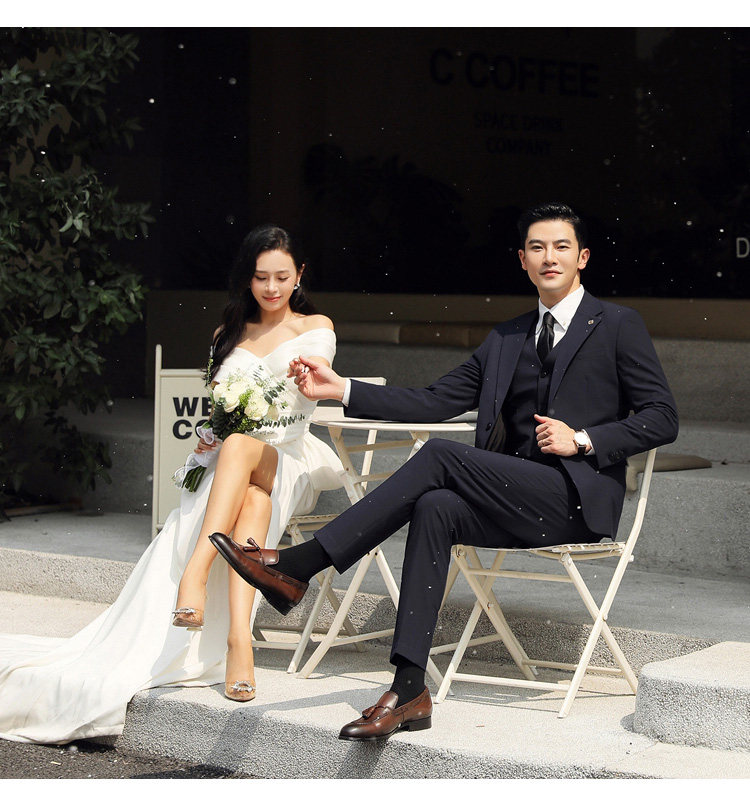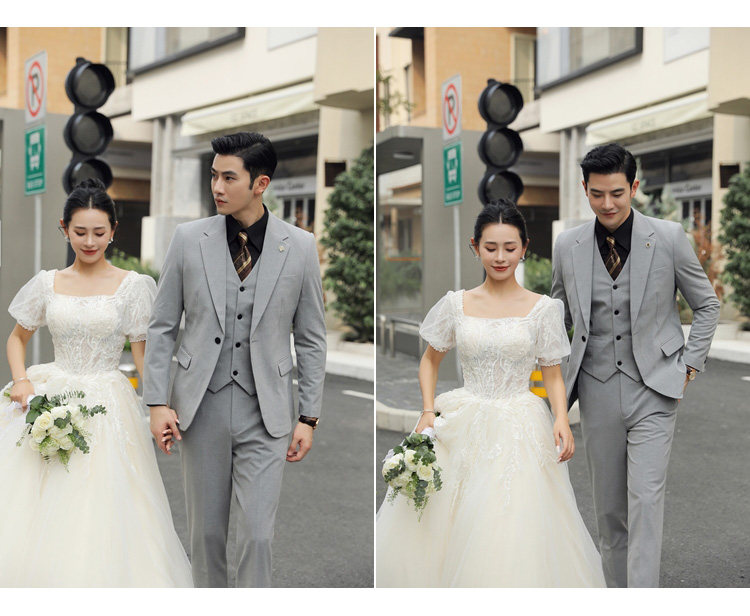 Groom's Wedding Suit, Men's Slim-Fit Business Formal Suit, Men's Korean-Style British-Style Groomsmen's Three-Piece Suit
