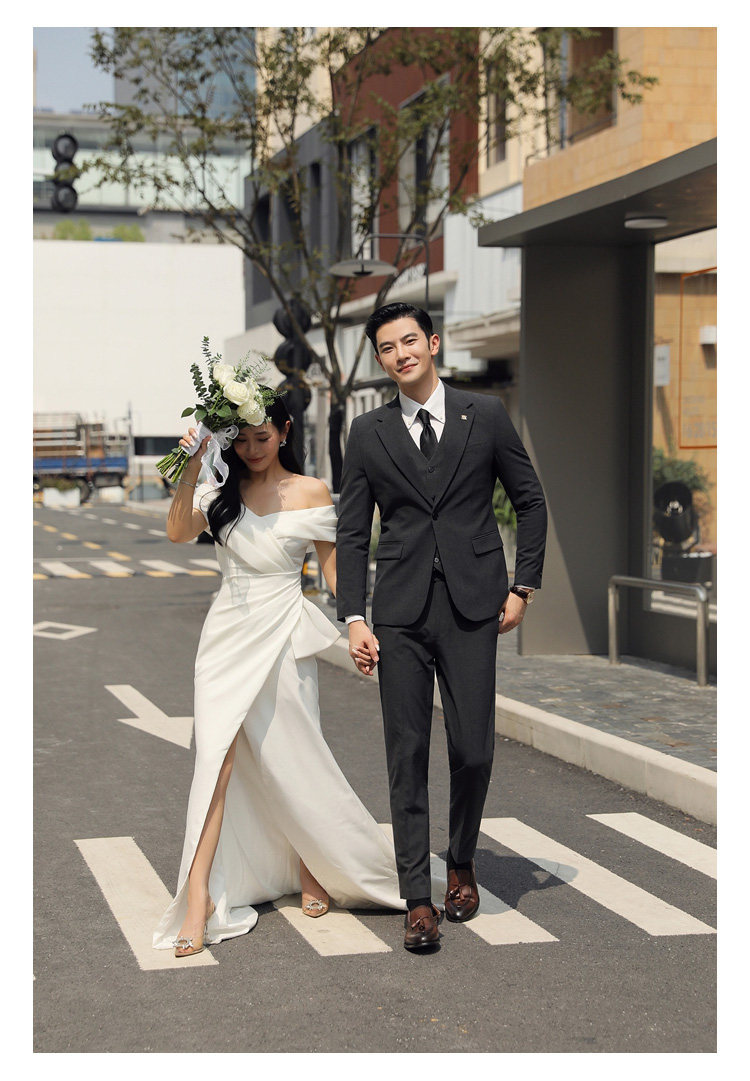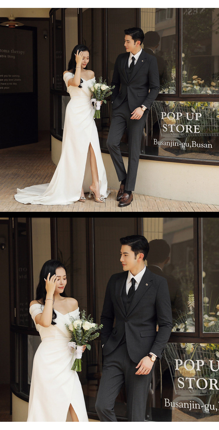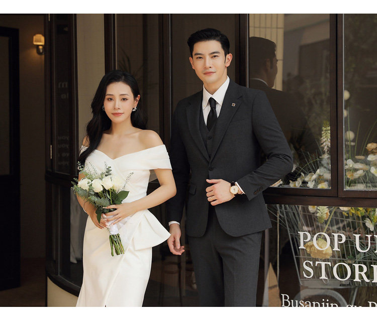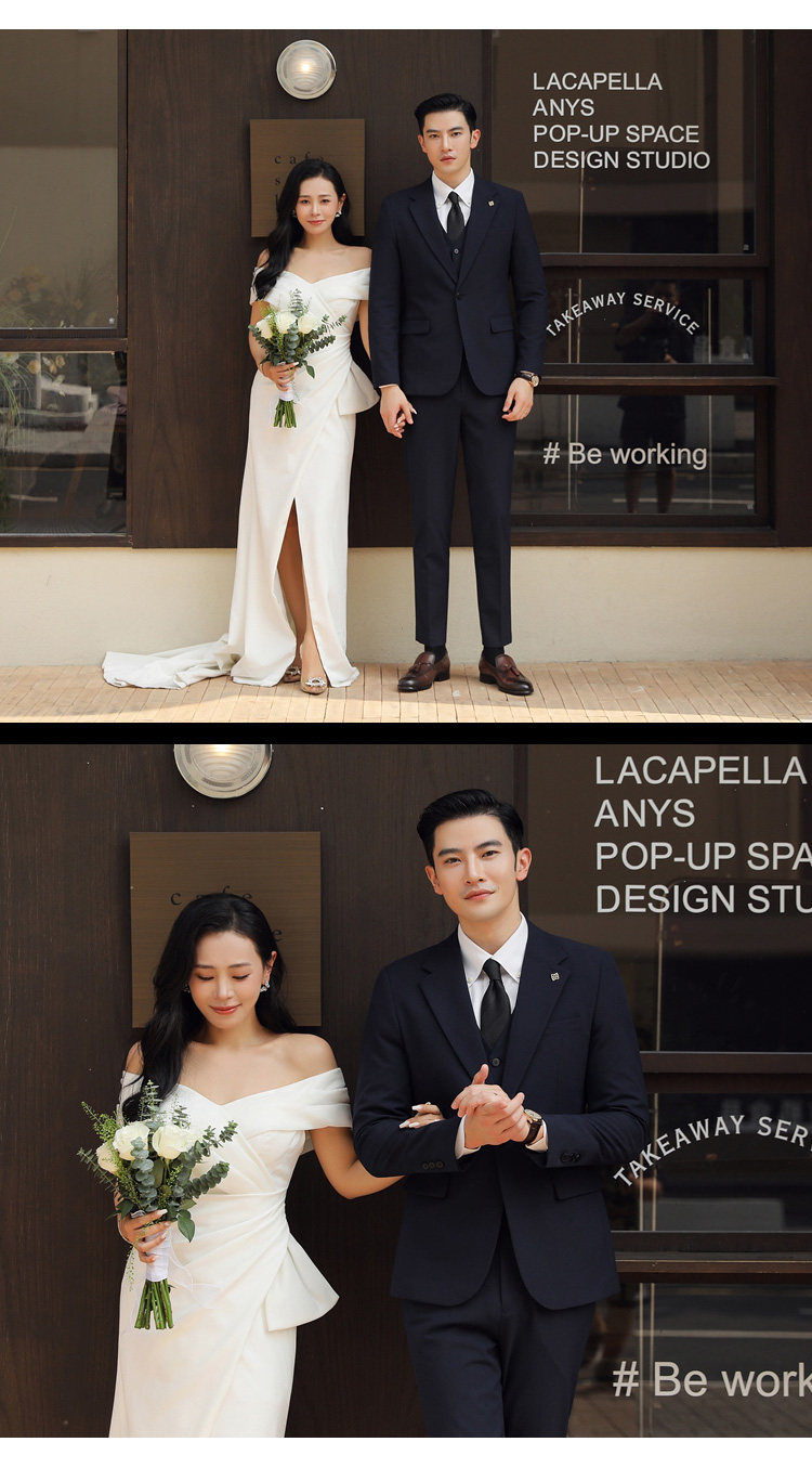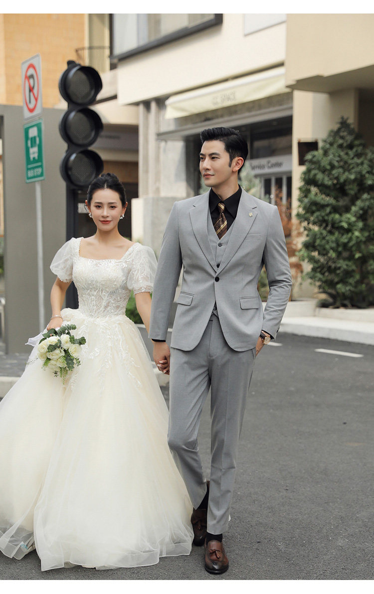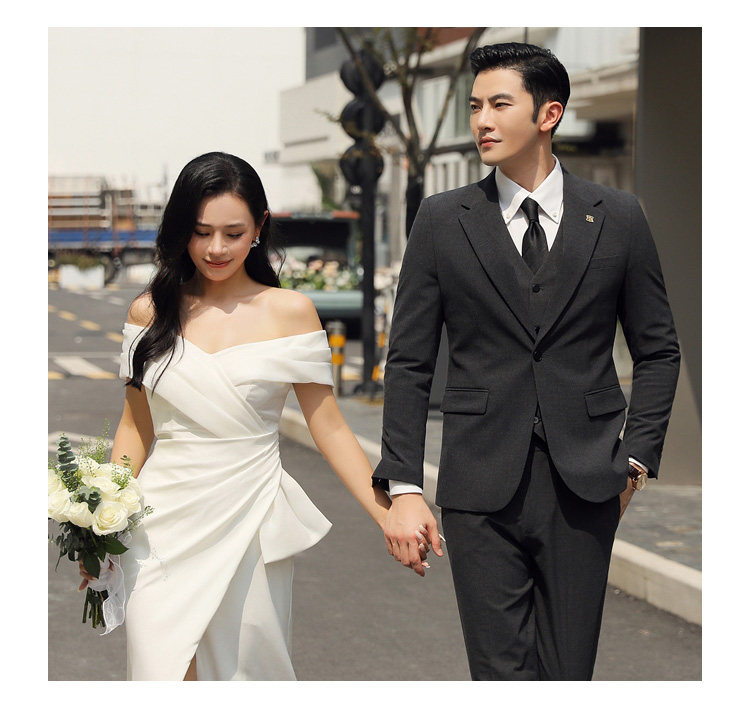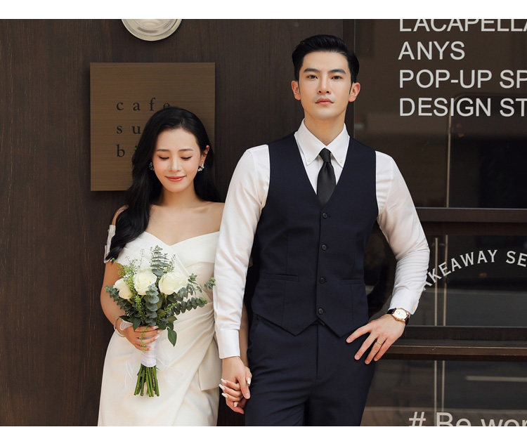 Groom's Wedding Suit, Men's Slim-Fit Business Formal Suit, Men's Korean-Style British-Style Groomsmen's Three-Piece Suit