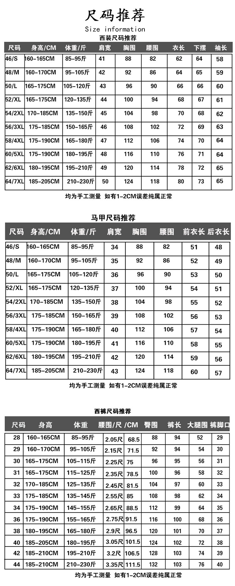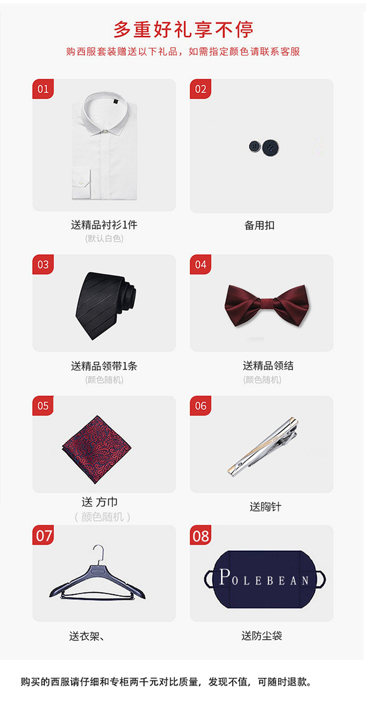 | Color | Single-Button Black (Suit + Vest + Trousers) Comes with a Ten-Piece Shirt + Tie + Bow Tie Set,Single-Button Navy Blue (Suit + Vest + Trousers) Comes with a Ten-Piece Shirt + Tie + Bow Tie Set,Single-Button Dark Gray (Suit + Vest + Trousers) Comes with a Ten-Piece Shirt + Tie + Bow Tie Set,Single-Button, Medium-Grey (Suit + Vest + Trousers) Set, Includes a Complimentary Ten-Piece Shirt, Tie, and Bow Tie Set,Single-Button Light Grey (Suit + Vest + Trousers) Comes with a Ten-Piece Set Including a Shirt, Tie, and Bow Tie,Single-Button Black (Suit + Trousers) Comes with a Ten-Piece Shirt + Tie + Bow Tie Set,Single-Button Navy Blue (Suit + Trousers) Comes with a Ten-Piece Shirt + Tie + Bow Tie Set,Single-Breasted Dark Grey (Suit + Trousers) with Complimentary Ten-Piece Set Including Shirt, Tie, and Bow Tie,Single-Button, Medium-Grey (Suit + Dress Pants) Set, Includes a Complimentary Ten-Piece Shirt, Tie, and Bow Tie Set,Single-Button Light Grey (Suit + Dress Pants) with Complimentary Ten-Piece Set Including Shirt, Tie, and Bow Tie,Black Single Jacket,Navy Blue Single Jacket,Dark Gray Single Jacket,Medium Gray Single Jacket,Light Gray Single Jacket |