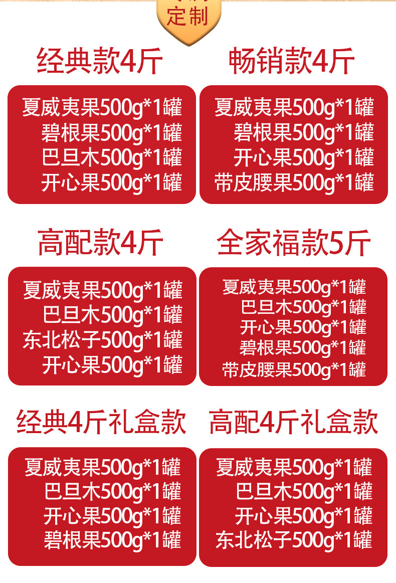 | Food Taste | ăNew Year's Family Fortune Gift Set 2.5kgăExtra-Large Pistachios + Pecans + Skin-On Cashews + Macadamia Nuts + Almonds,ăAnnual Classic 2kgăExtra-Large Pistachios + Pecans + Macadamia Nuts + Almonds,ăBestselling Lunar New Year TreatsăExtra-Large Pistachios + Pecans + Skin-On Cashews + Macadamia Nuts,ăNew Year's Special Offer 2kgăMacadamia Nuts + Almonds + Black Beans + Chickpeas,ăAnnual Super Value 2.5kgăMacadamia Nuts + Almonds + Chickpeas + Pumpkin Seeds + Spicy Peanuts,ăNew Year's Family Fortune Gift Set 2.5kgăExtra-Large Pistachios + Pecans + Skin-On Cashews + Macadamia Nuts + Almonds,ăClassic Lunar New Year Gift Set 2kgăExtra-Large Pistachios + Pecans + Macadamia Nuts + Almonds,ăBestselling Lunar New Year Gift Set 2kgăExtra-Large Pistachios + Pecans + Skin-On Cashews + Macadamia Nuts,ăPremium Lunar New Year Gift Set 2kgăNortheastern Pine Nuts + Extra-Large Pistachios + Macadamia Nuts + Almonds,ăPremium Lunar New Year Gift Set 2kgăNortheastern Pine Nuts + Extra-Large Pistachios + Macadamia Nuts + Almonds |