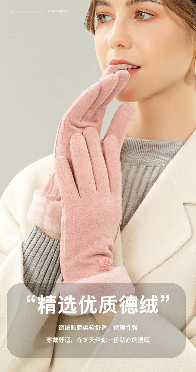Touchscreen Gloves for Women, Winter Cycling, Cute, Fleece-Lined, Thickened, for Riding Electric Bikes, Outdoor Cold Protection, German Velvet Business Gloves