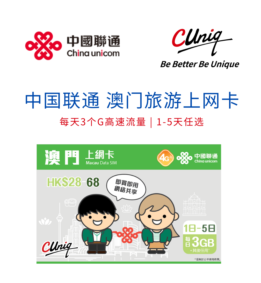 Macau Data Internet Card, Macau Travel Phone Card, Choose from 1-5 Days of High-Speed Internet Access