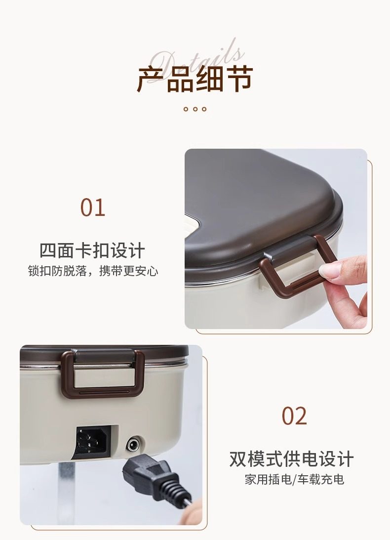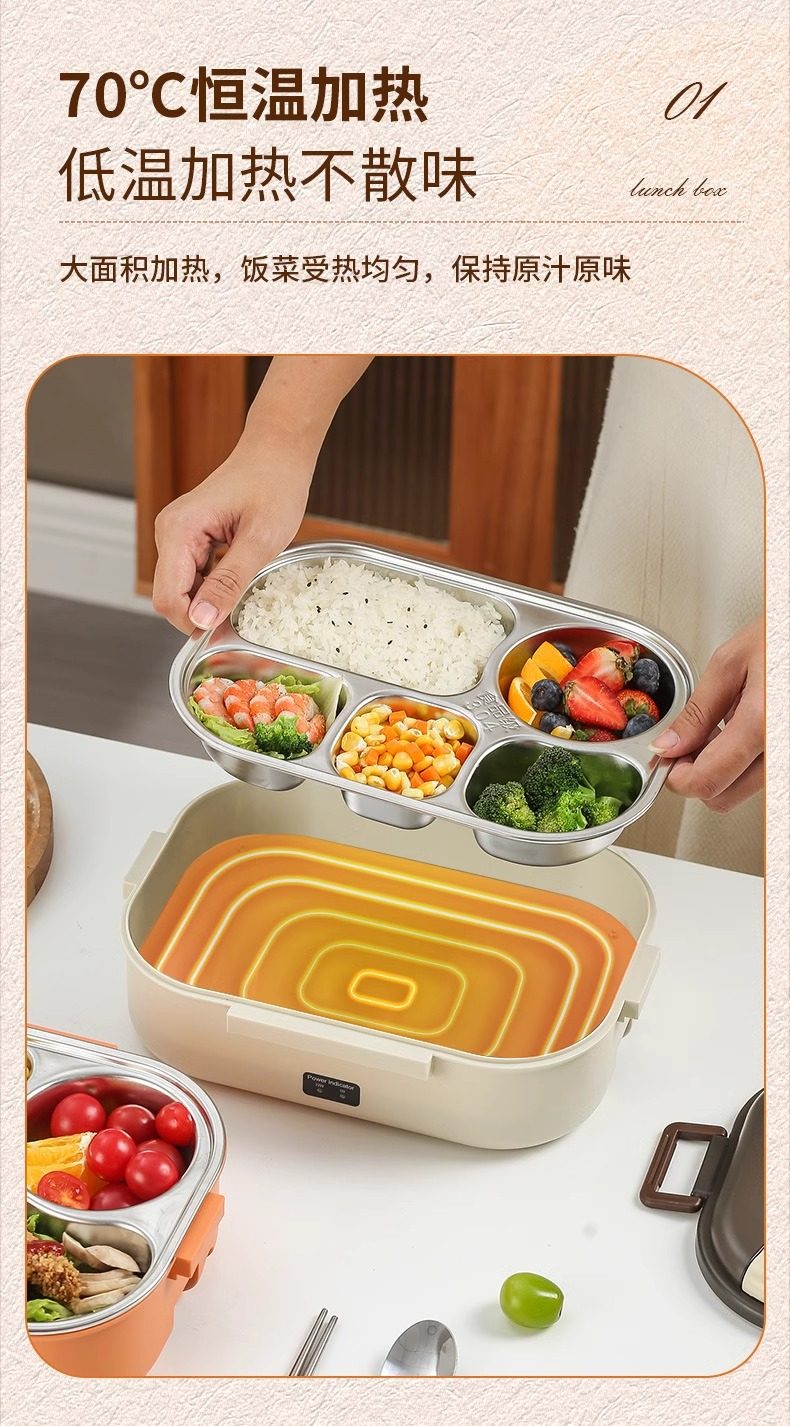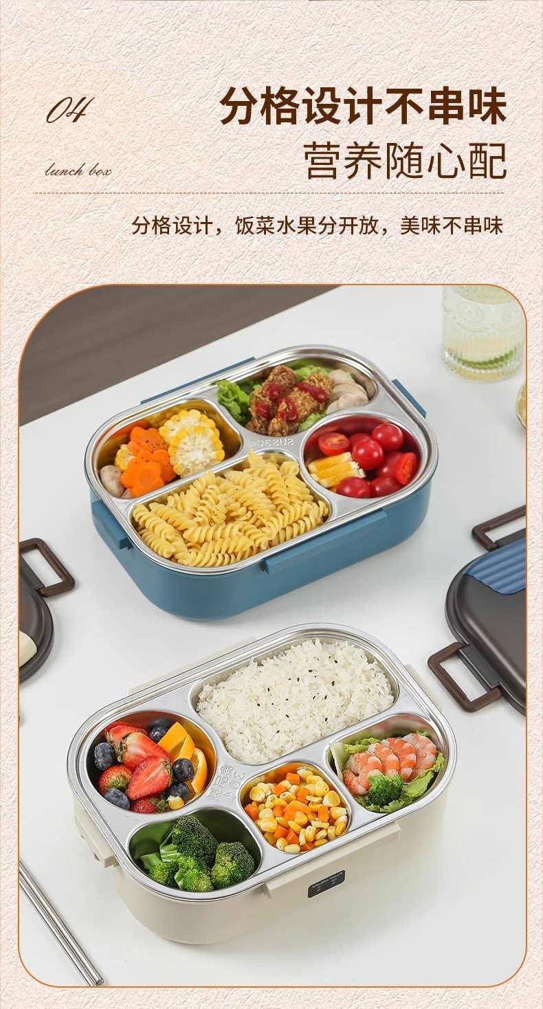 Electric Lunch Box, No Water Needed, Plug-In Heating, Portable, for Adults, Students, Office Workers, Insulated, Car-Mounted, Meal Carrier