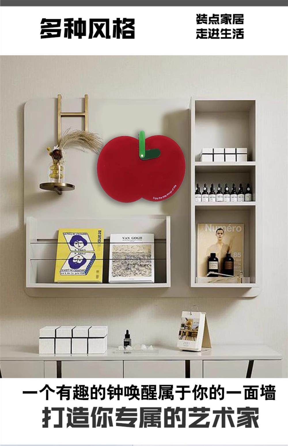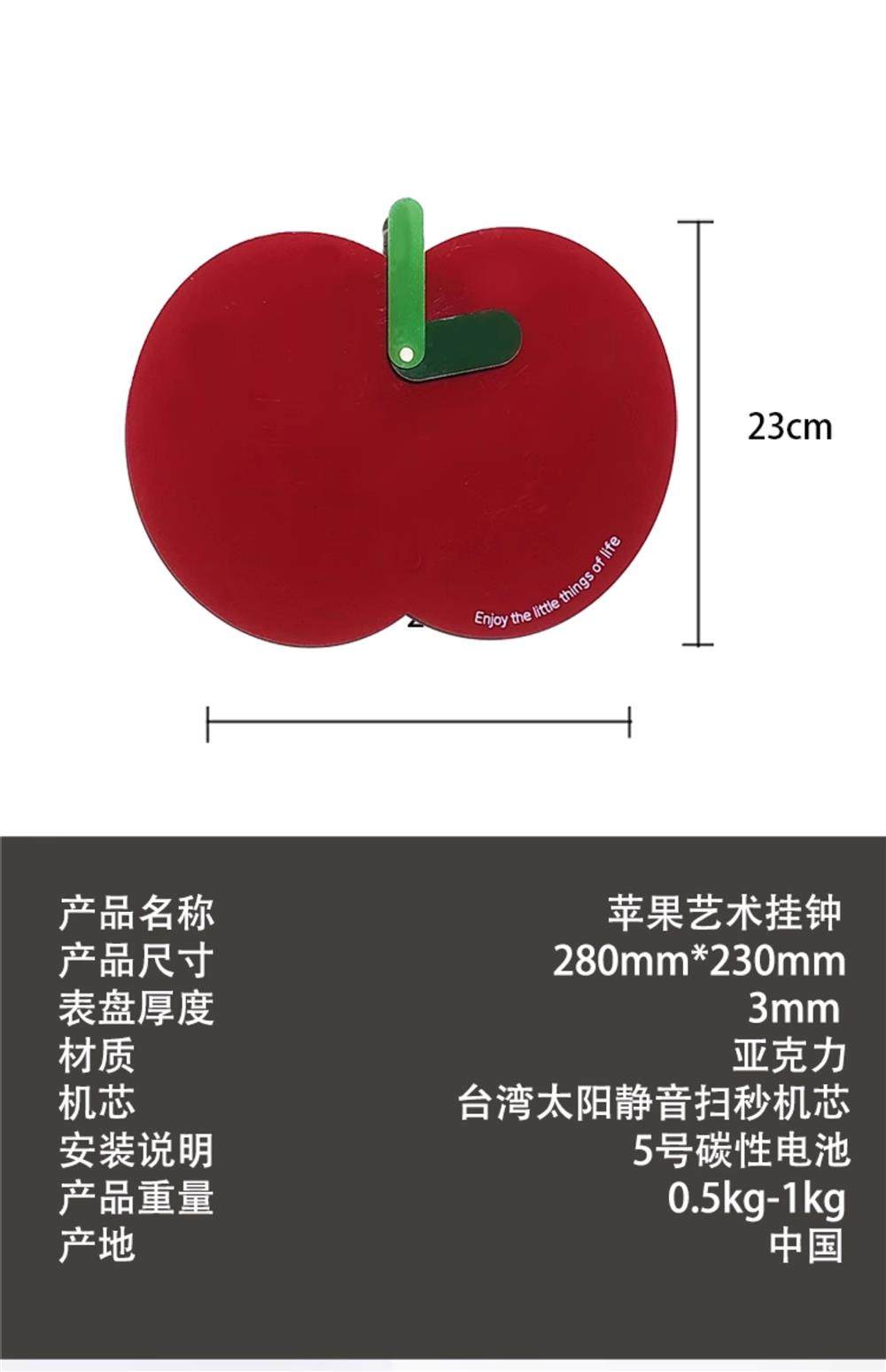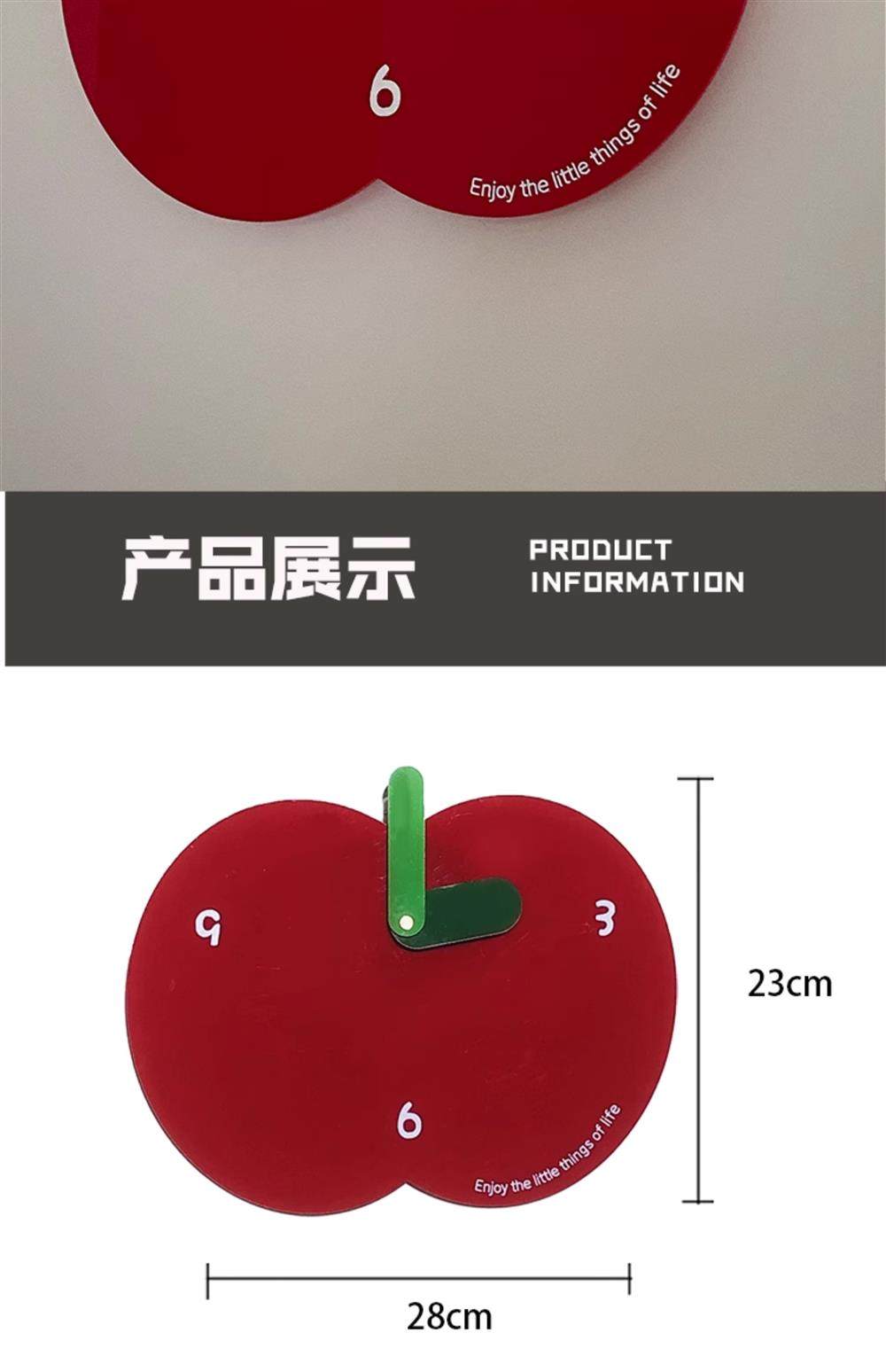 Apple Wall Clock, Cute and Trendy, Home Design, New Modern Decorative Clock, Silent Sweep Second Clock for Children's Room