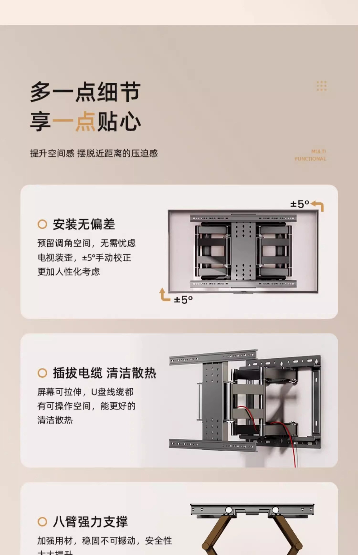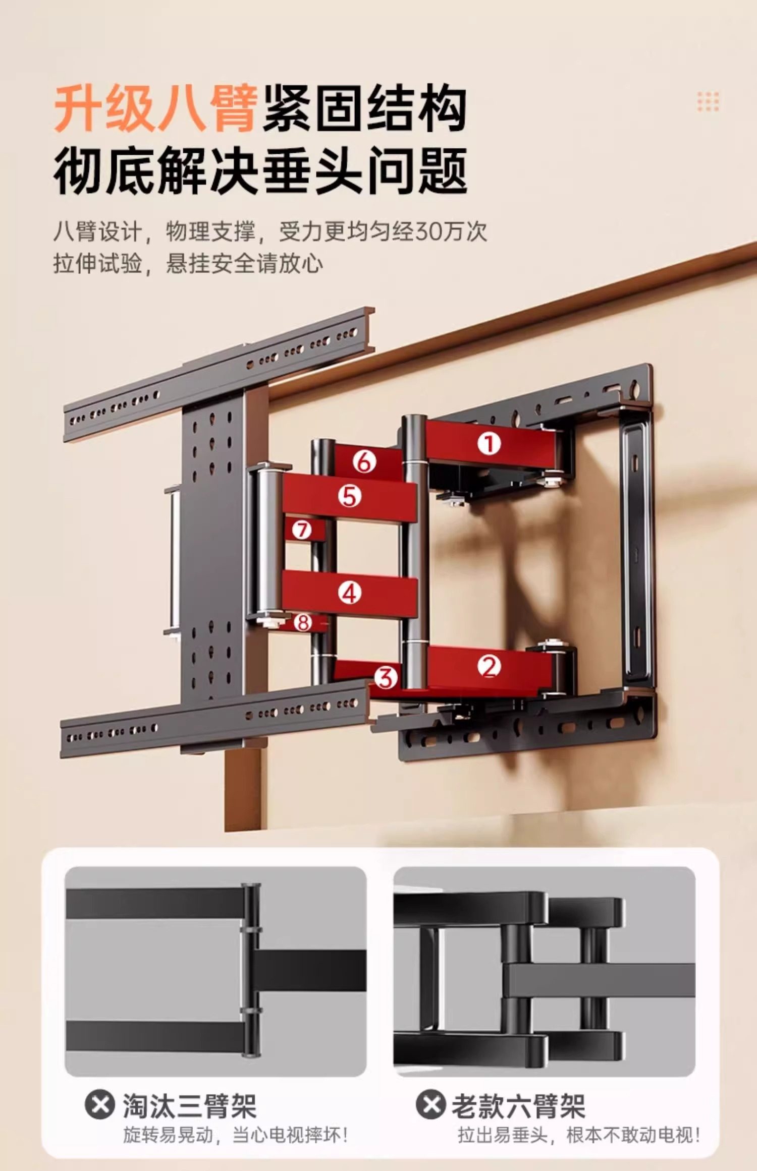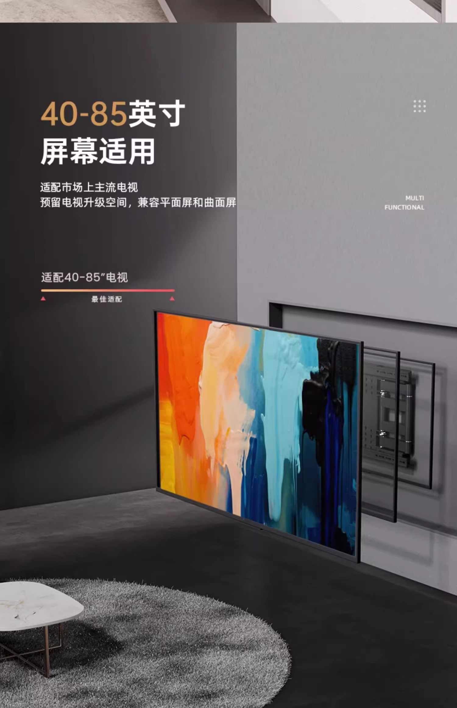 | Color Classification | Upgraded Eight-Arm Design for Enhanced Stability[32-65inch Universal]Ultra-Thin Wall-Mounted about 4cm,Upgraded Eight-Arm Design for Enhanced Stability[40-75inch Universal]Ultra-Thin Wall-Mounted about 4cm,Upgraded Eight-Arm Design for Enhanced Stability[40-80inch Universal]Ultra-Thin Wall-Mounted about 4cm,Upgraded Eight-Arm Design for Enhanced Stability[40-86inch Universal]Ultra-Thin Wall-Mounted about 4cm,Upgraded Eight-Arm Design for Enhanced Stability[50-90inch Universal]Ultra-Thin Wall-Mounted about 4cm,Upgraded Eight-Arm Design for Enhanced Stability[55-100inch Universal]Ultra-Thin Wall-Mounted about 4cm,Ultra-Thin, Large-Screen, Premium, Super-Resistant[40-85inch Universal]Ultra-Thin Wall-Mounted 3cm,Ultra-Thin, Large-Screen, Premium, Super-Resistant[50-100inch Universal]Ultra-Thin Wall-Mounted 3cm,[Eight-Arm Load-Bearing - More Stable and Stronger - Refuse to Bow Your Head!] |