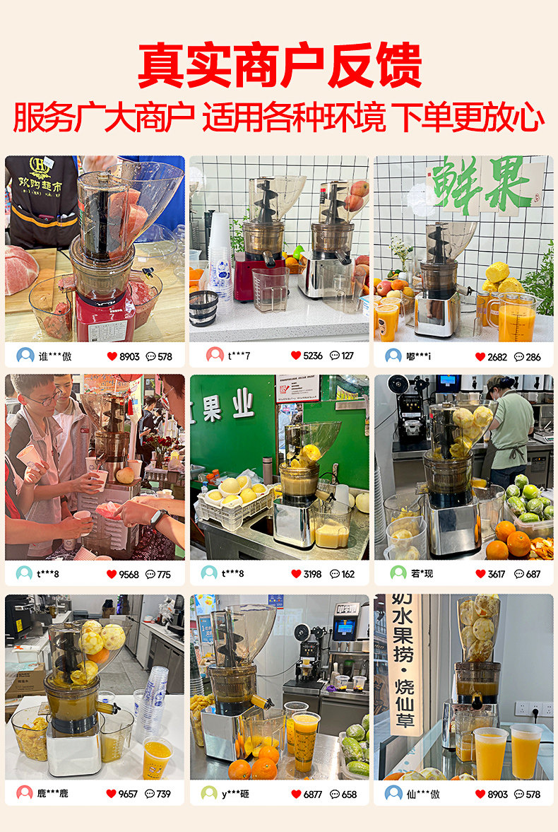Michael Cool Original Juice Machine Commercial Juicer with Pulp Separation, Large Capacity for Street Vending, High Power, Large Juice Opening, Fully Automatic