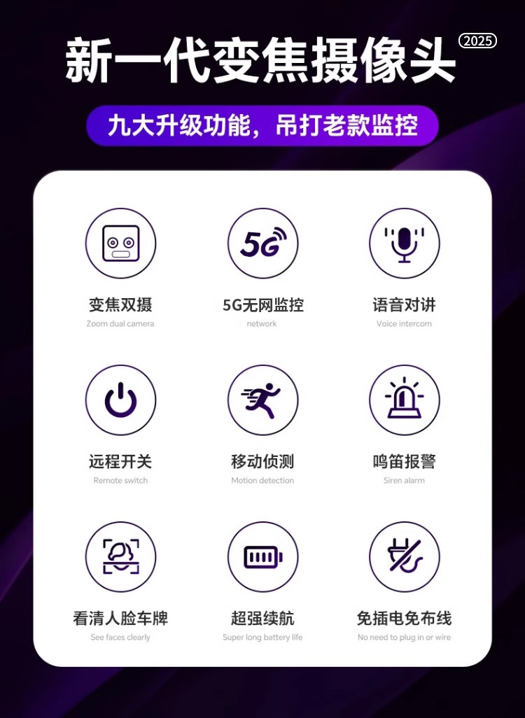 | Color Classification | [Wifi Round Version]Mobile Phone Remote Monitoring + Continuous Video and Audio Recording + Motion Detection Notification,[Send Lifetime Traffic-5G Thin and Light Version]2-Year Standby Time + Offline Mobile Phone Monitoring + Motion-Activated Recording & Audio + Remote Power On/Off + Strong Magnetic Mount (No Installation Required),[Free Lifetime Traffic-5G Thin and Light White Version]2-Year Standby Time + Offline Mobile Phone Monitoring + Motion-Activated Recording & Audio + Remote Power On/Off + Strong Magnetic Mount (No Installation Required),[Dual-Band Wifi Upgraded Version]2-Year Standby Time + Mobile Remote Monitoring + Motion-Activated Recording & Audio + Remote Power On/Off + No Installation Required,[Dual-Band Wifi Top Version]3-Year Standby Time + Remote Mobile Phone Monitoring + Motion-Activated Recording & Audio + Two-Way Voice Communication + Remote Power On/Off + Strong Magnetic Mount (No Installation Required),[Free Lifetime Traffic-5G Top Version]3-Year Standby Time + Offline Mobile Phone Monitoring + Motion-Activated Recording & Audio + Two-Way Voice Communication + Remote Power On/Off + Strong Magnetic Mount (No Installation Required),[Free Lifetime Traffic-5G Dual Camera Version]3-Year Standby Time + 10X Dual-Screen Display + Offline Mobile Phone Monitoring + Motion-Activated Recording & Audio + Two-Way Voice Communication + Remote Power On/Off + Strong Magnetic Mount (No Installation Required),Plug-In-Free 4g Version[2-Year Standby + Offline Mobile Phone Monitoring + Audio and Video Recording + Two-Way Voice Communication + Remote Power On/Off] |