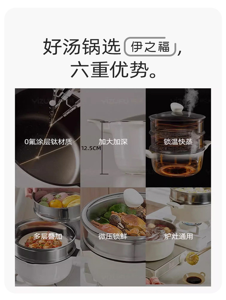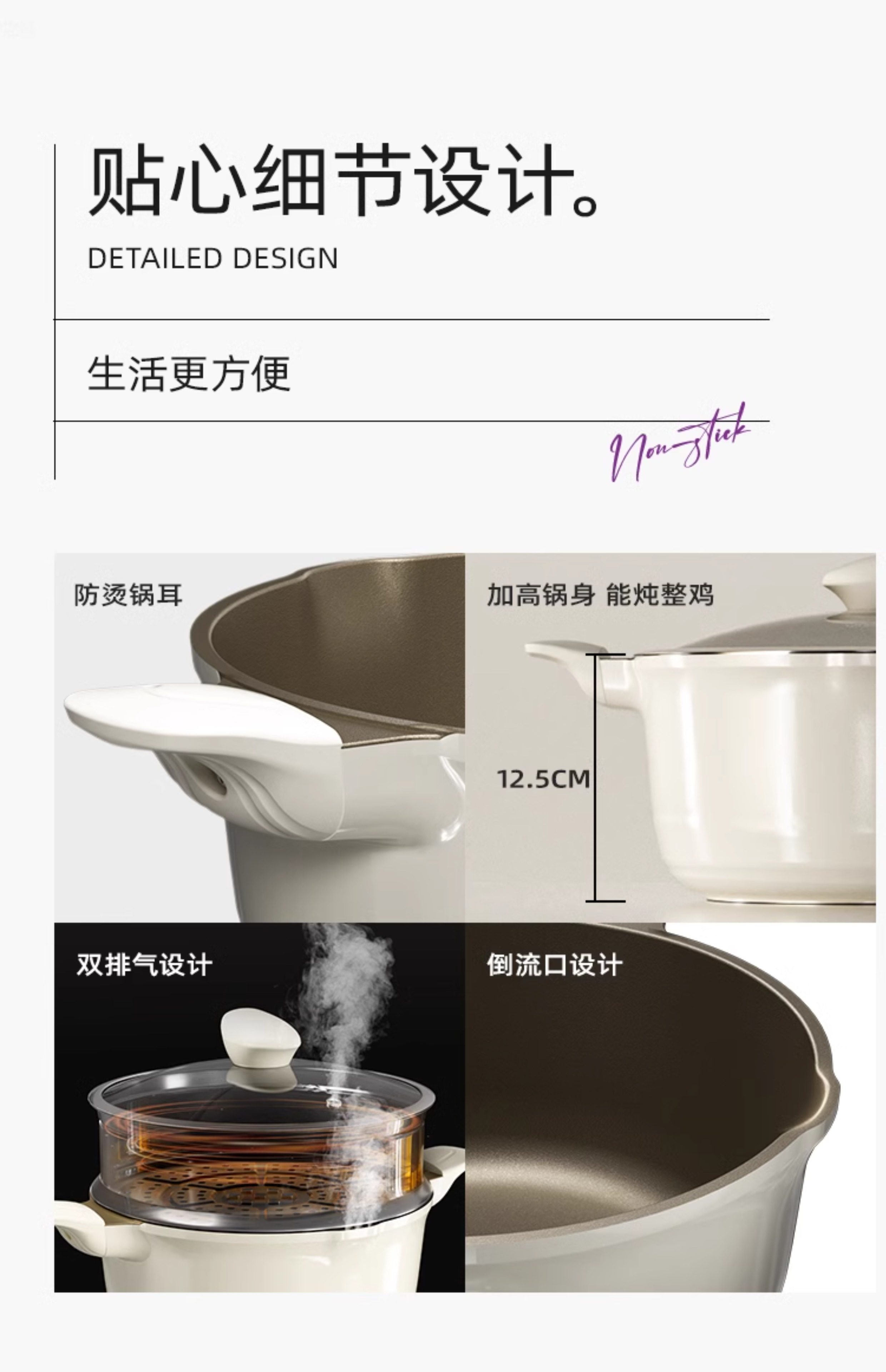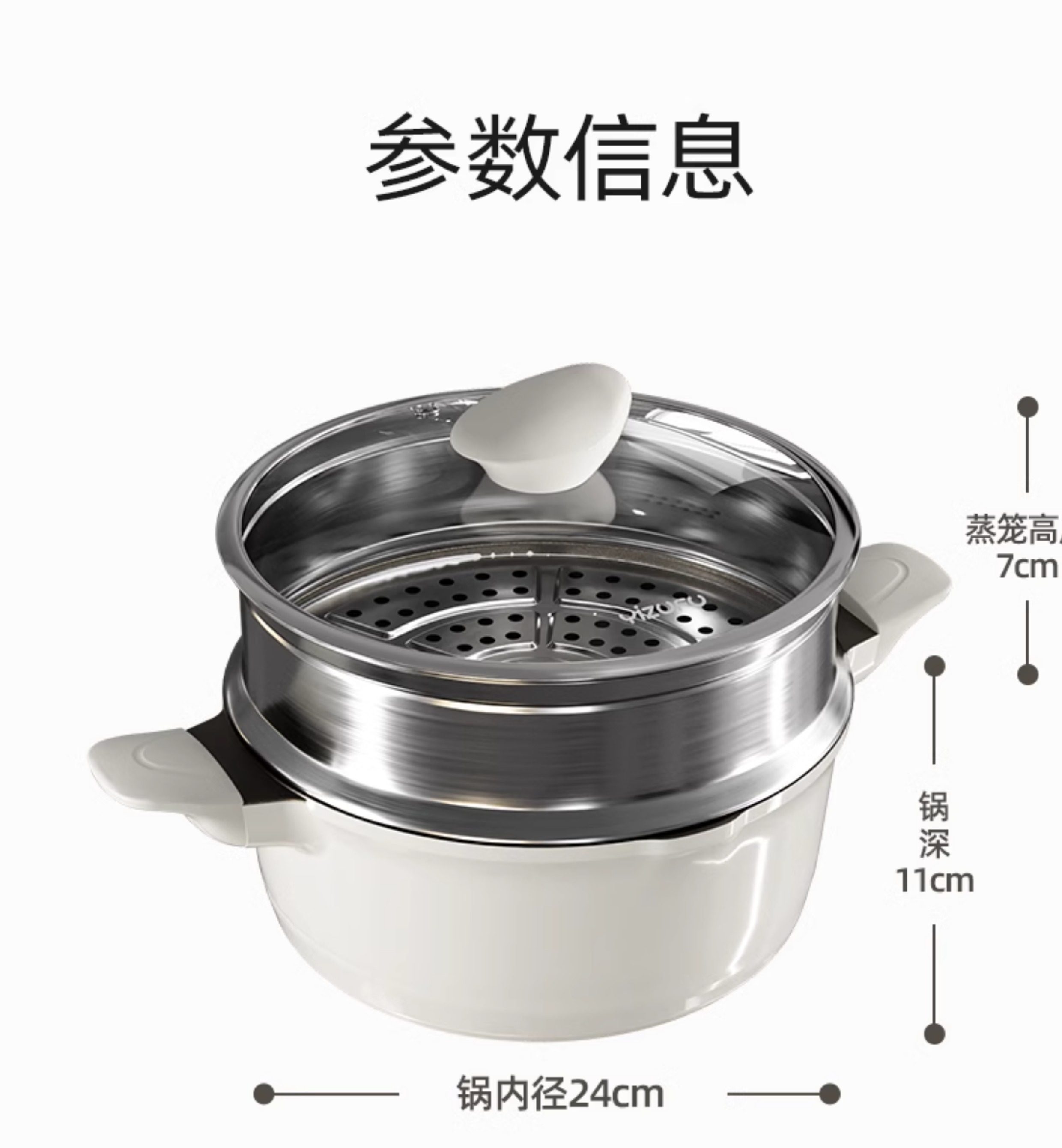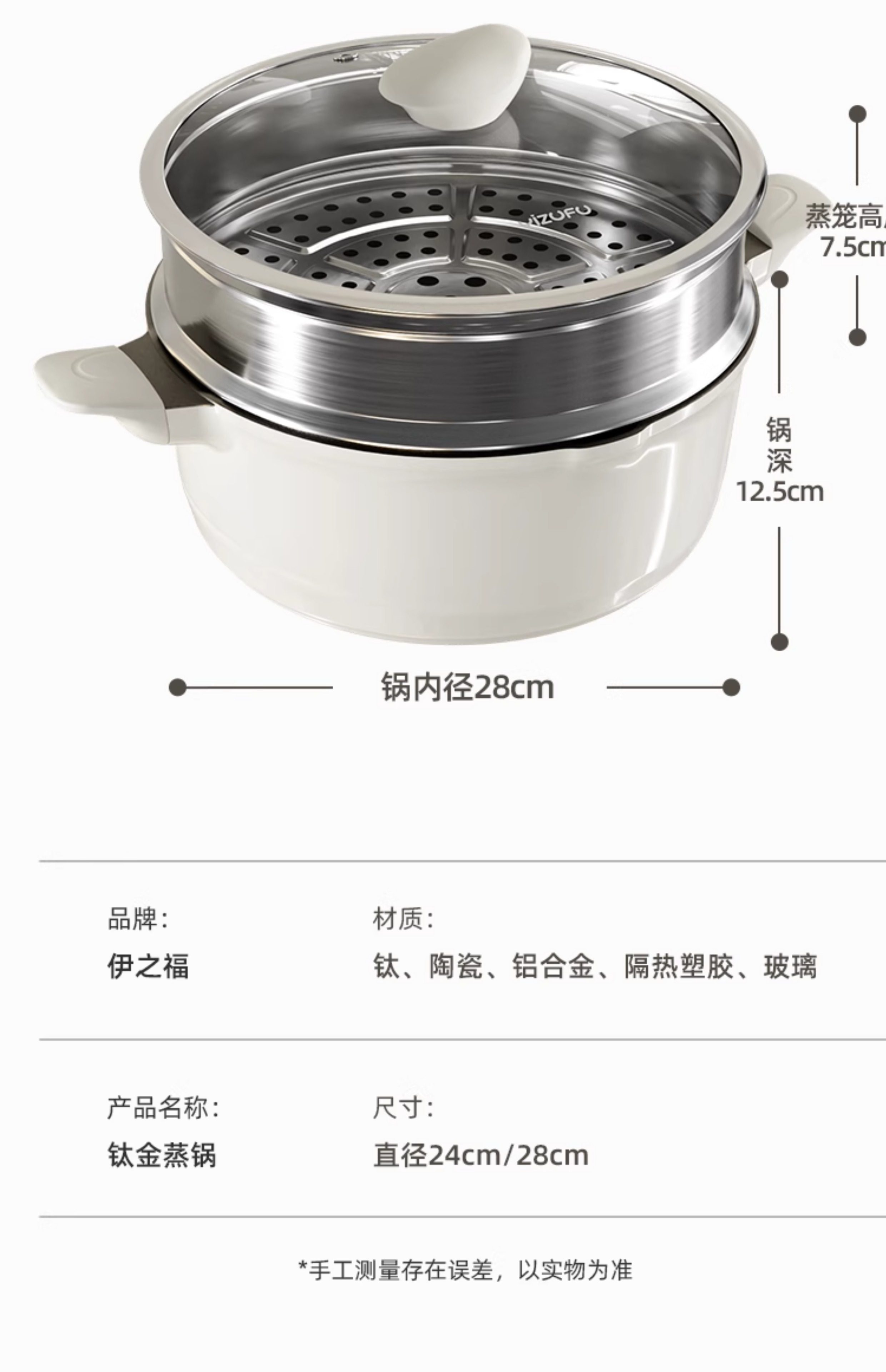 | Color Classification | 24cm Steamer, Steam on Top and Cook on Bottom, One Pot for Multiple Uses,28cm Steamer, Steam on Top and Cook on Bottom, One Pot for Multiple Uses,24cm Double-Layer Steamer, a Variety of Steaming in One Pot,28cm Double-Layer Steamer, a Variety of Steaming in One Pot,24cm Single Pot, Titanium Inside and Ceramic Outside, Locks in Temperature and Stews Quickly,28cm Single Pot, Titanium Inside and Ceramic Outside, Locks in Temperature and Stews Quickly |