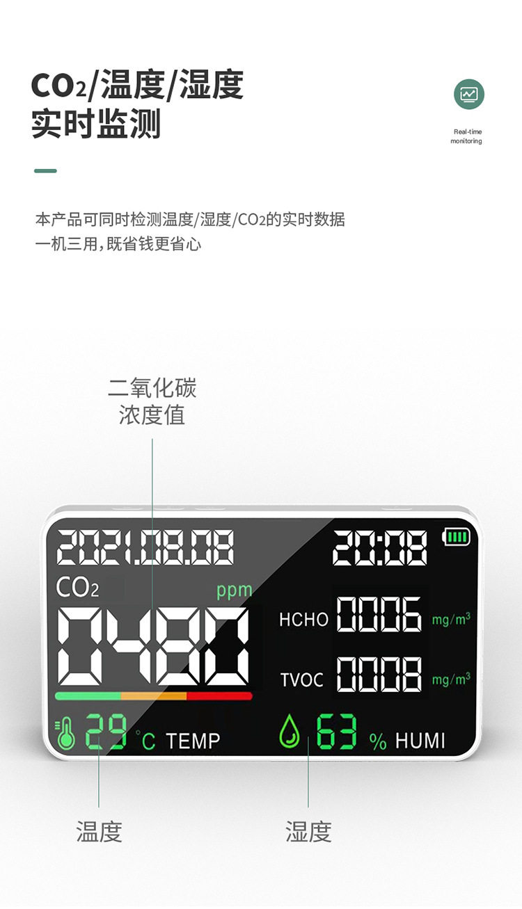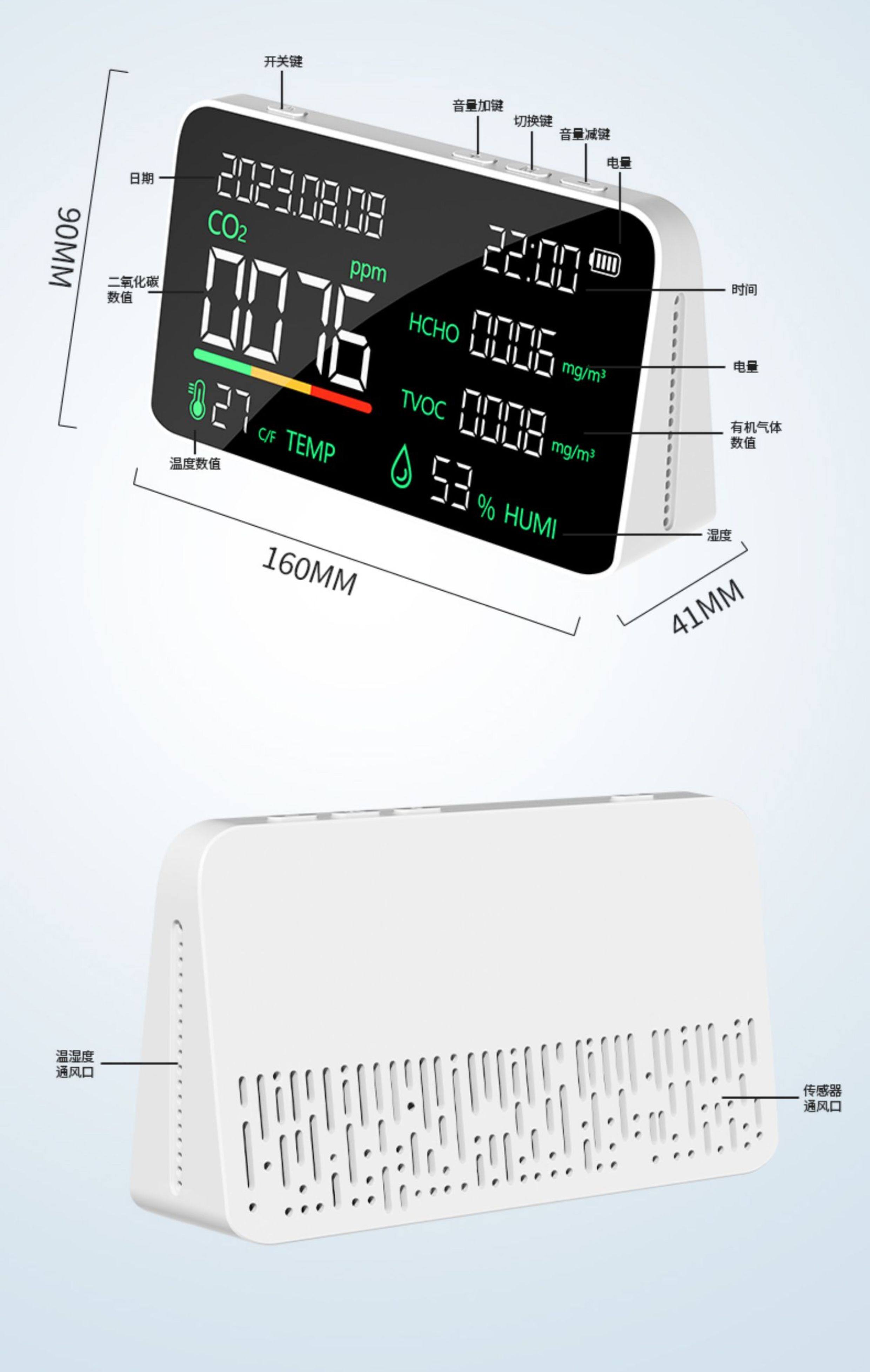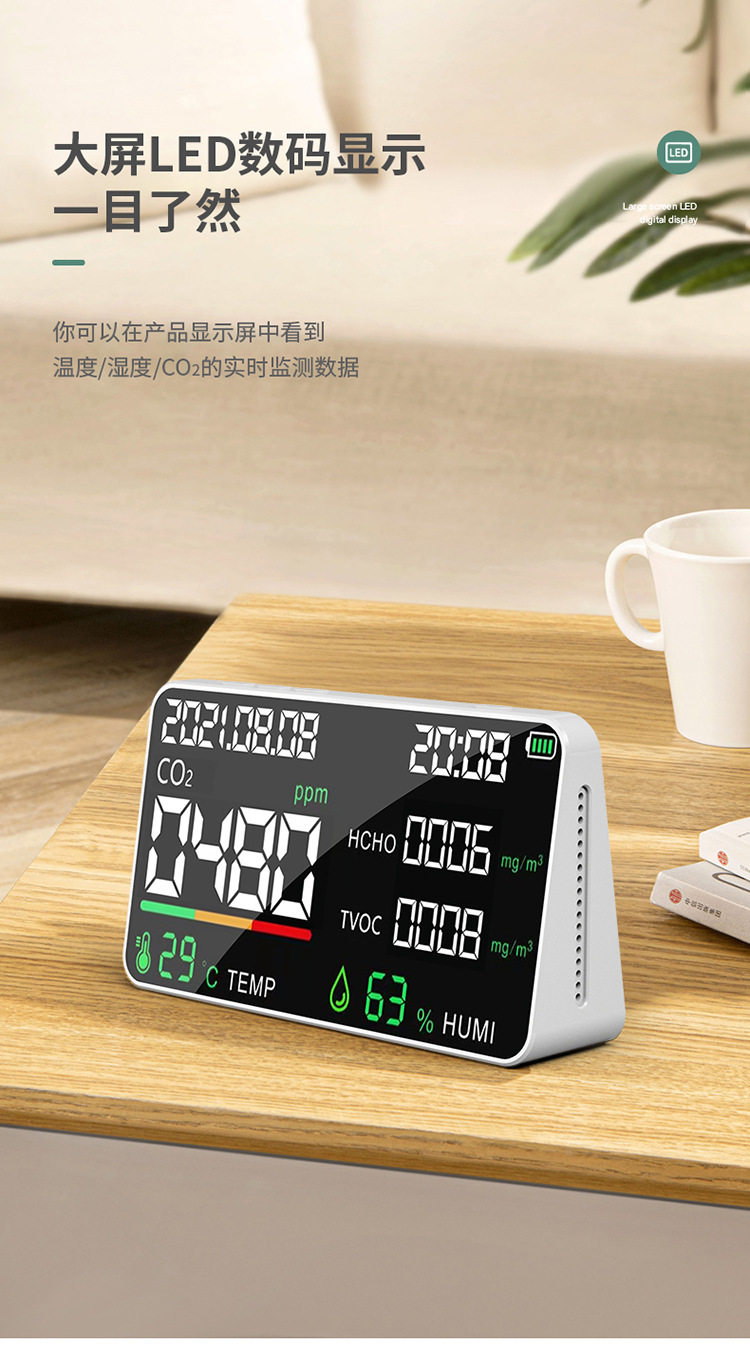 | Color Classification | [Seven in One]Carbon Dioxide/Formaldehyde/Harmful Gas/Temperature/Humidity/Date/Time,[Ten in One]PM2.5/Carbon Dioxide/Formaldehyde/Harmful Gases/Pm10/Carbon Monoxide/Temperature/Humidity/Date/Time |