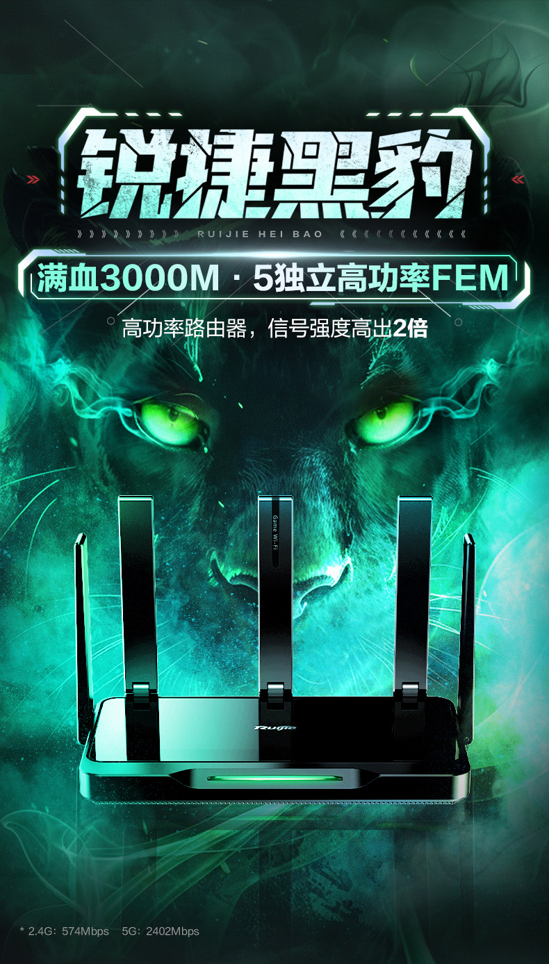 [Sf Express] Ruijie Black Panther Gaming Router Starlight X30E Pro Wireless Wifi6 Gigabit Home High-Speed Wall-Penetrating Ax3000 Dual-Band 5g Dual-Wan Port Broadband Aggregation Mesh Networking