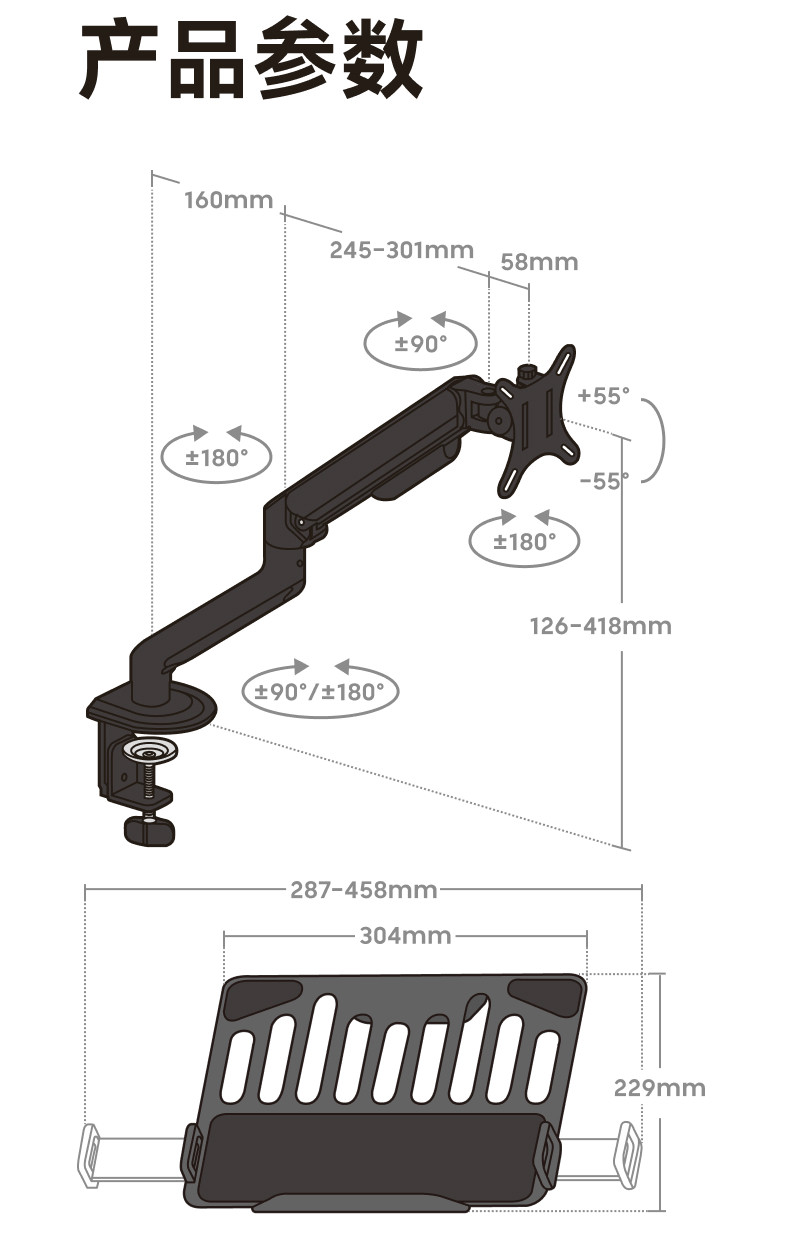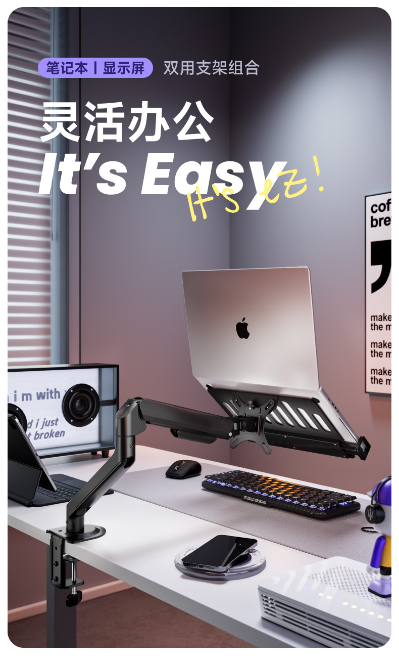 North Arc Laptop Stand Robotic Arm Computer Monitor Stand Cantilever Portable Secondary Display Screen Lift E350