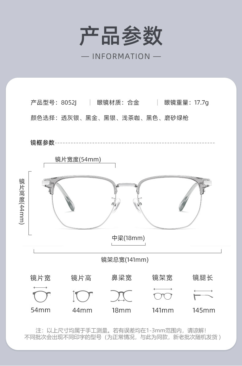 | Color Classification | 8052J Black Gold,8052J Black Silver,8052J Black,8052J Frosted Green Gun,8052J Light Tea Coffee,8052J Transparent Gray Silver |