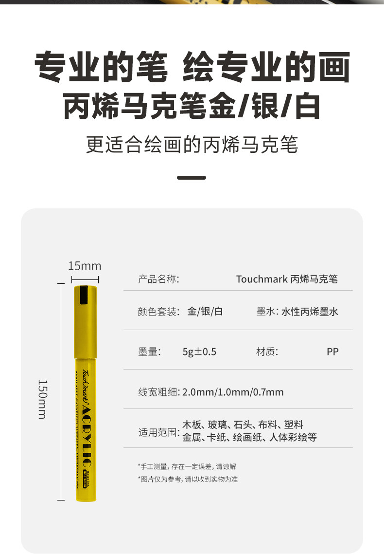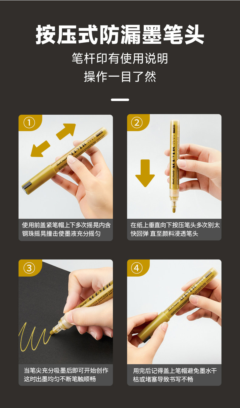 | Color Classification | 3 Pieces of White [0.7/1.0/2.0mm],Silver 3 Pieces [0.7/1.0/2.0mm],3 Gold Pieces [0.7/1.0/2.0mm],[Highlight Pen Set of 4] Gold, Silver and White + Soft Tip Marker Pen,[Highlight Pen Combination] White Highlight Pen + Soft Tip Highlight Pen,[Pack of 4] White Highlighter Pen*2+Soft Tip Highlighter Pen*2,[Pack of 6] White Highlighter Pen*3+Soft Tip Highlighter Pen*3,[0.7mm] White 3 Pieces,【0.7Mm】White 6 Pieces,【0.7Mm】White 12 Pieces,[1.0mm] White 3 Pieces,【1.0Mm】White 6 Pieces,【1.0Mm】White 12 Pieces,[2.0mm] White 3 Pieces,【2.0Mm】White 6 Pieces,【2.0Mm】White 12 Pieces,[0.7mm] White 1 Piece,[1.0mm] White 1 Piece,[2.0mm] White 1 Piece,【0.7Mm】3 Pieces of Your Choice (Contact Customer Service to Note the Color),【0.7Mm】6 Pieces of Your Choice (Contact Customer Service to Note the Color),【0.7Mm】12 Pieces of Your Choice (Contact Customer Service to Note the Color),【2.0Mm】3 Pieces of Your Choice (Contact Customer Service to Note the Color),【2.0Mm】6 Pieces of Your Choice (Contact Customer Service to Note the Color),【2.0Mm】12 Pieces of Your Choice (Contact Customer Service to Note the Color),[0.7mm Set] 12-Color Box,[0.7mm Set] 24 Colors in Box,[0.7mm] 1 Gold + 1 Silver + 1 White,[1.0mm] 1 Gold + 1 Silver + 1 White,[2.0mm] 1 Gold + 1 Silver + 1 White,[2.0mm] 1 Gold + 1 Silver + 1 White + 1 Black,[1.0mm] Gold 1 Piece,[1.0mm] Silver 1 Piece,[0.7mm] Black 1 Piece,【0.7Mm】Gold 1 Piece,[0.7mm] Silver 1 Piece,[0.7mm] Black 3 Pieces,[0.7mm] Black 6 Pieces,【0.7Mm】Gold 3 Pieces,【0.7Mm】Gold 6 Pieces,【0.7Mm】Silver 3 Pieces,【0.7Mm】Silver 6 Pieces,For Group Purchase and Wholesale, Please Contact Customer Service for Details. |