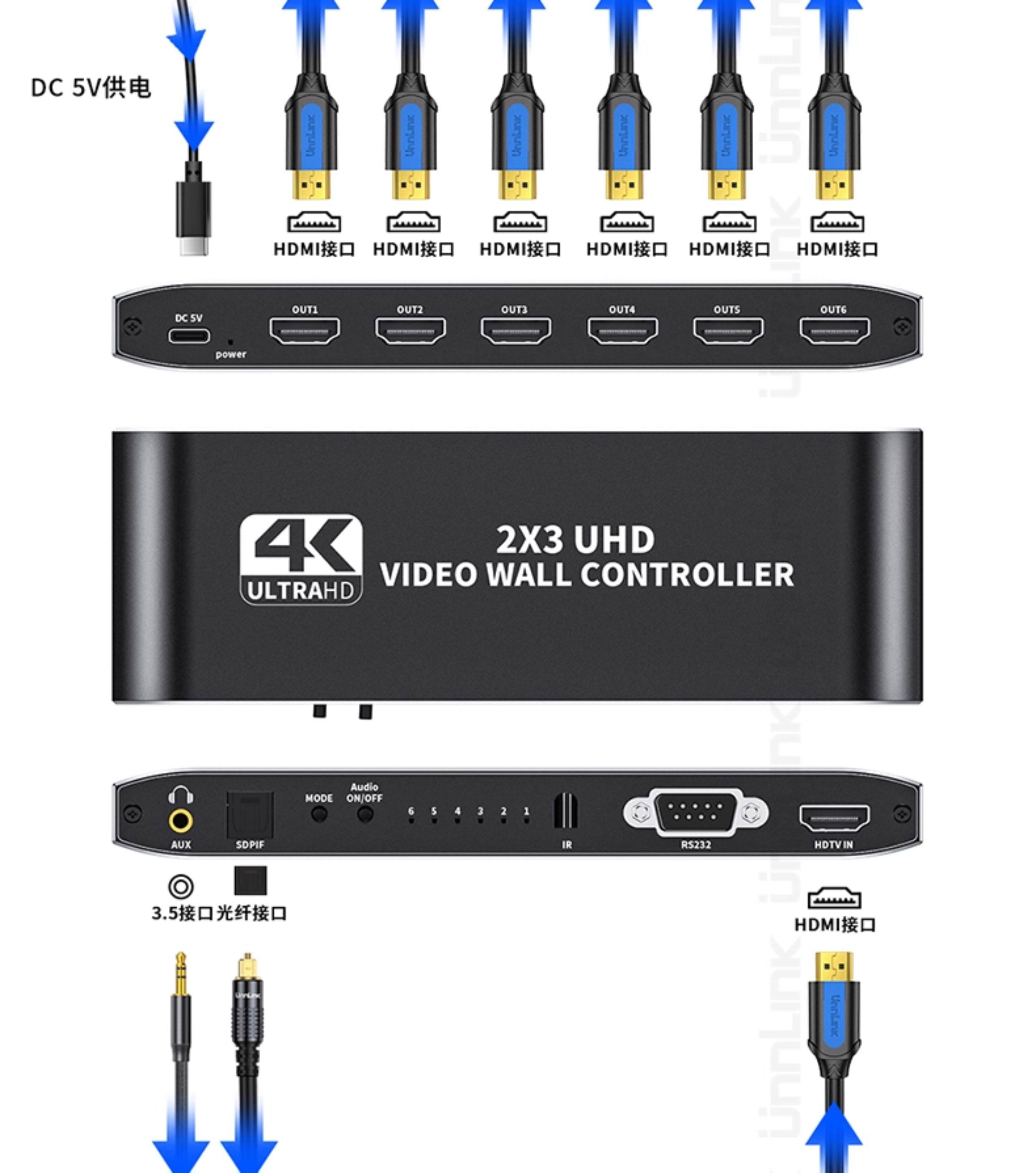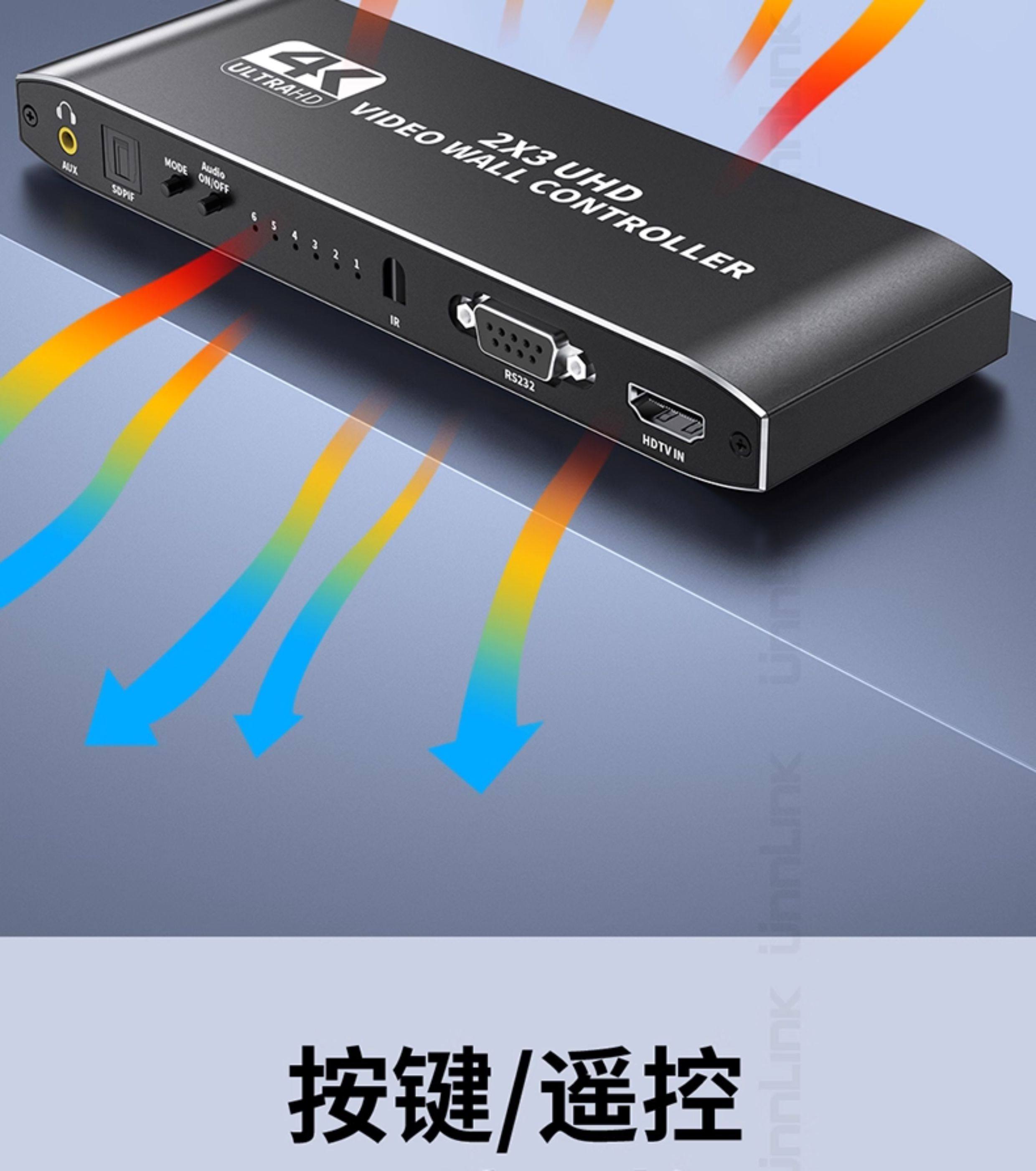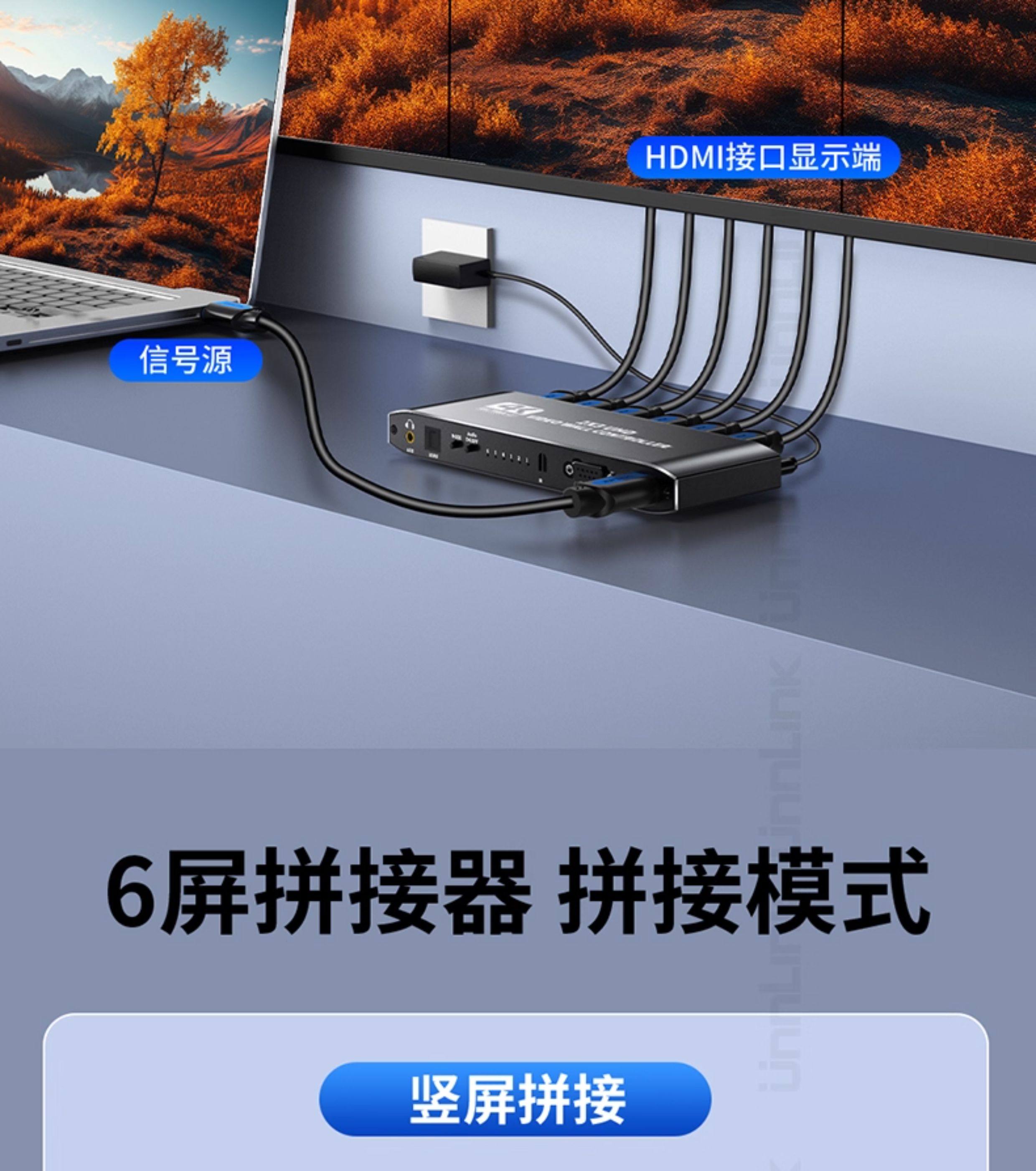 Screen Splicer, Screen Distributor, HDMI One-In-Six-Out, Four-Out, 4K High-Definition, Six Lcd Tv Monitors Spliced into One Large Screen, 2X3 Splicing Processor, 3X3 Multi-Screen Device
