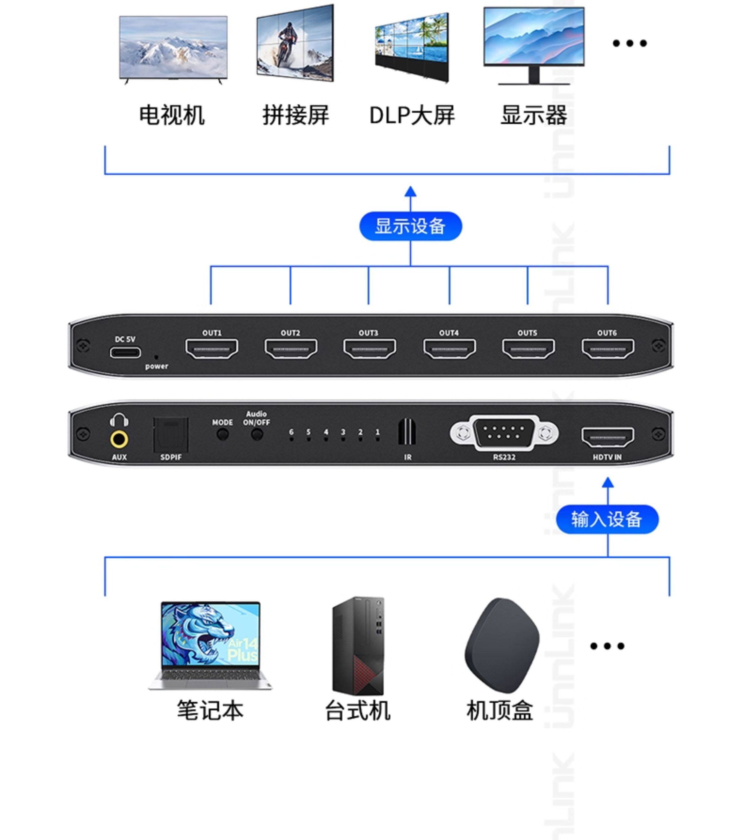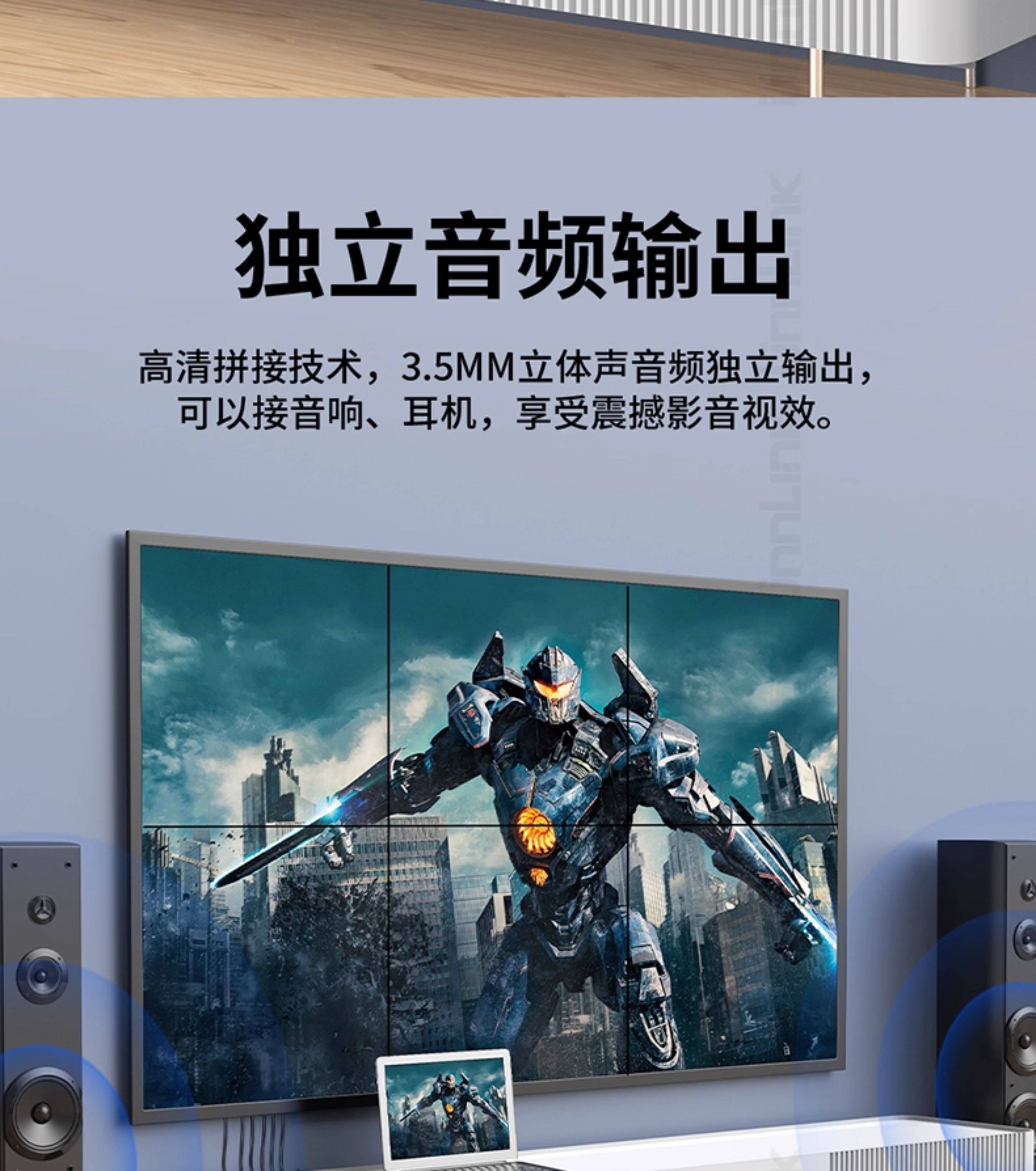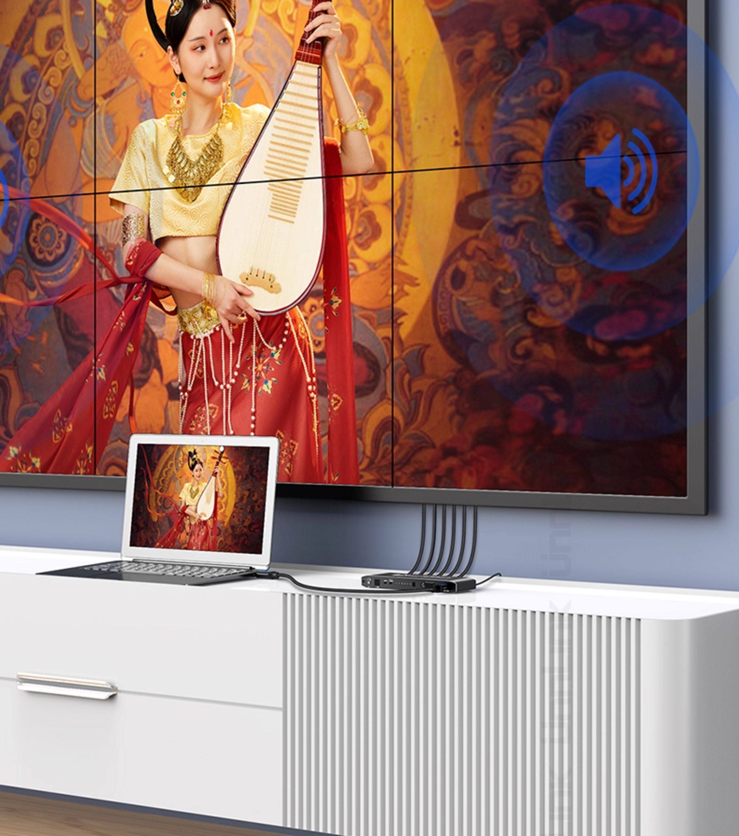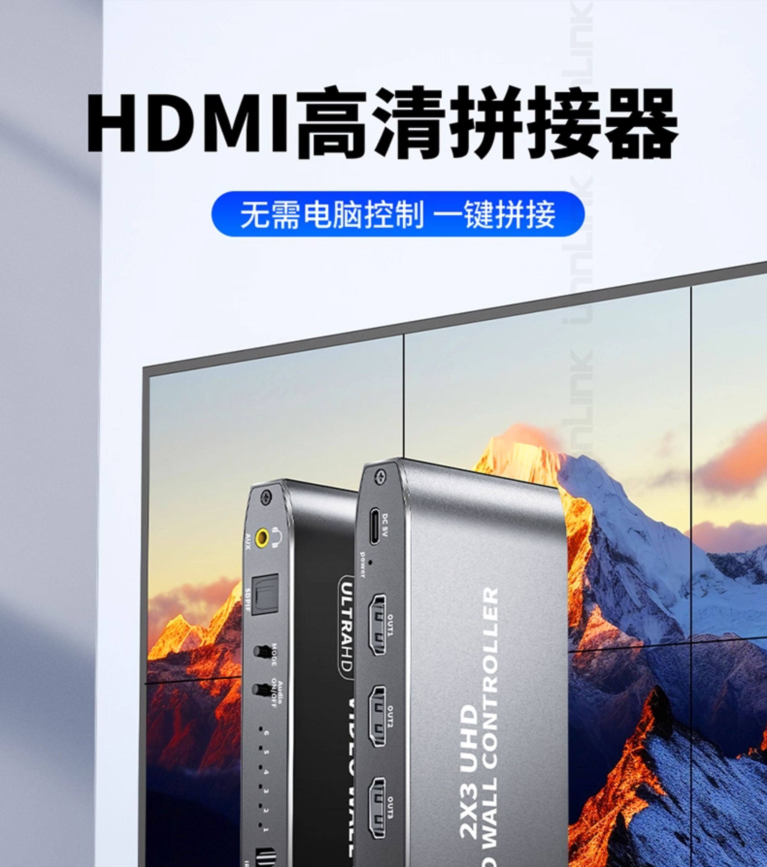 Screen Splicer, Screen Distributor, HDMI One-In-Six-Out, Four-Out, 4K High-Definition, Six Lcd Tv Monitors Spliced into One Large Screen, 2X3 Splicing Processor, 3X3 Multi-Screen Device