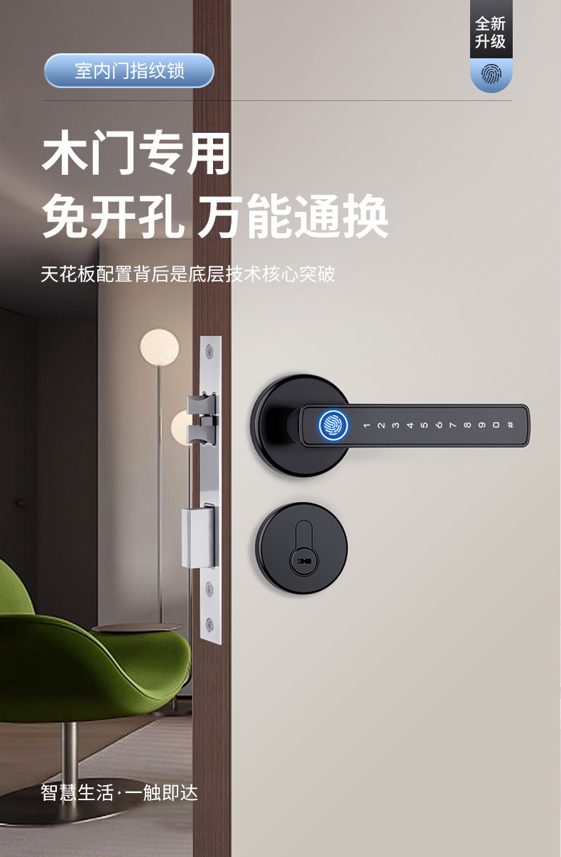 Indoor Wooden Door Fingerprint Lock Office Password Door Lock Home Bedroom Room Door Handle Split Smart Electronic Lock