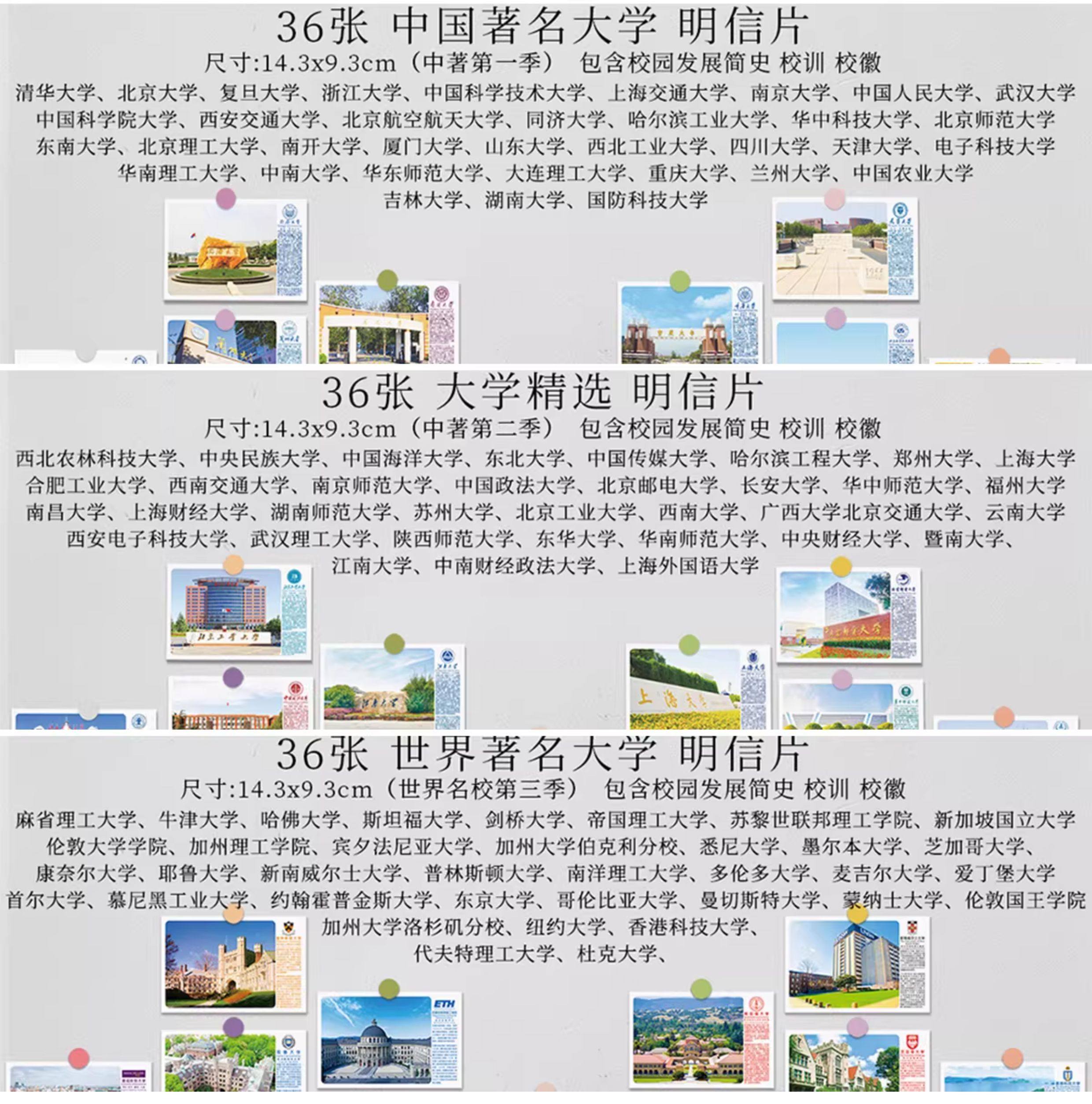 Postcards from Prestigious Chinese Universities 985/211, Famous Nationwide, Rewards for Students from Xiamen, Zhejiang, Famous Brands, Southwest Defense Science and Technology, Central and South Finance, Xi'An Transportation and Electronics Technology