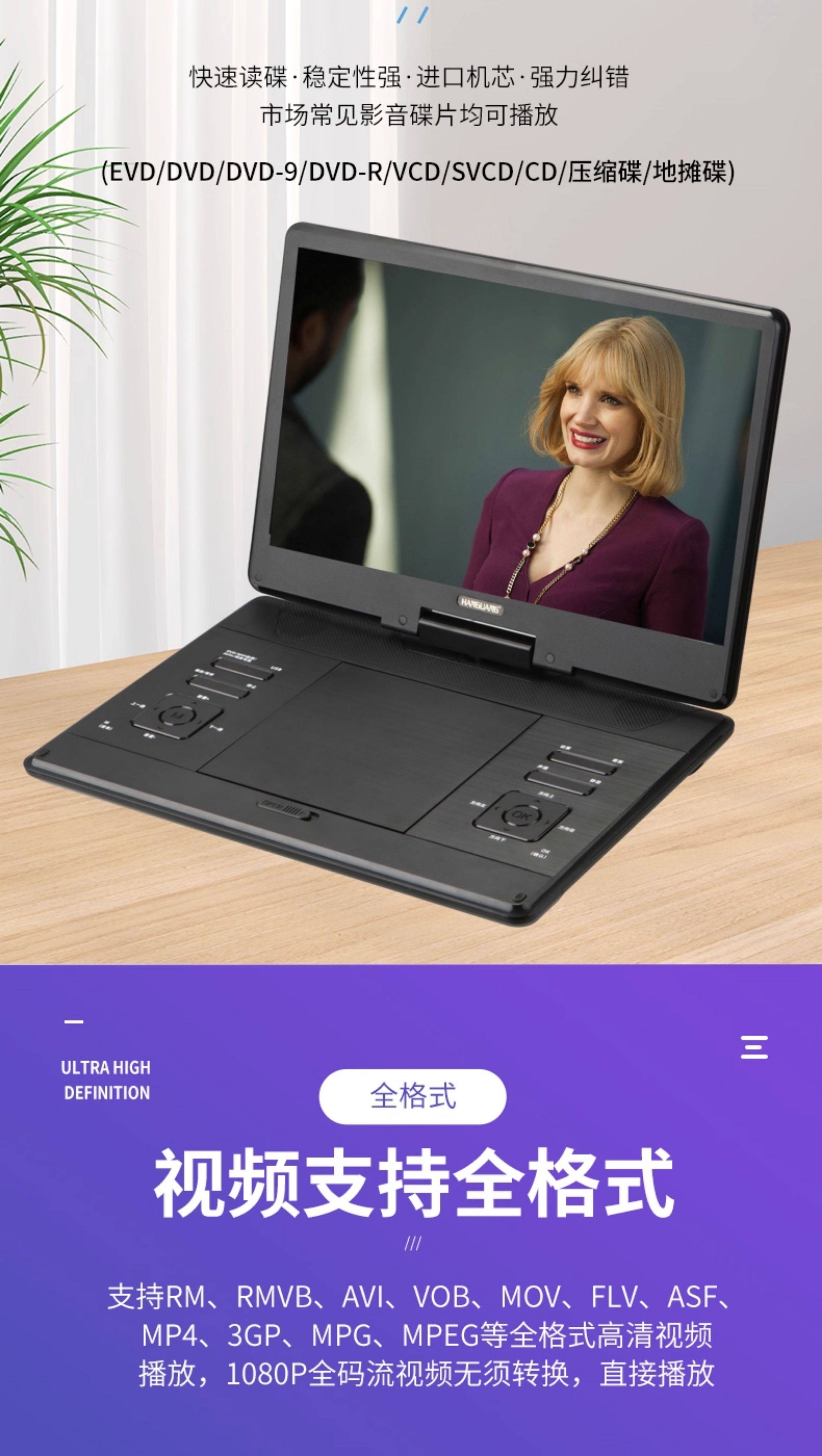 Han Guang Mobile Video Player Vcd Disc All-In-One Portable Small High-Definition Dvd Player for the Elderly, Tv, Home Use