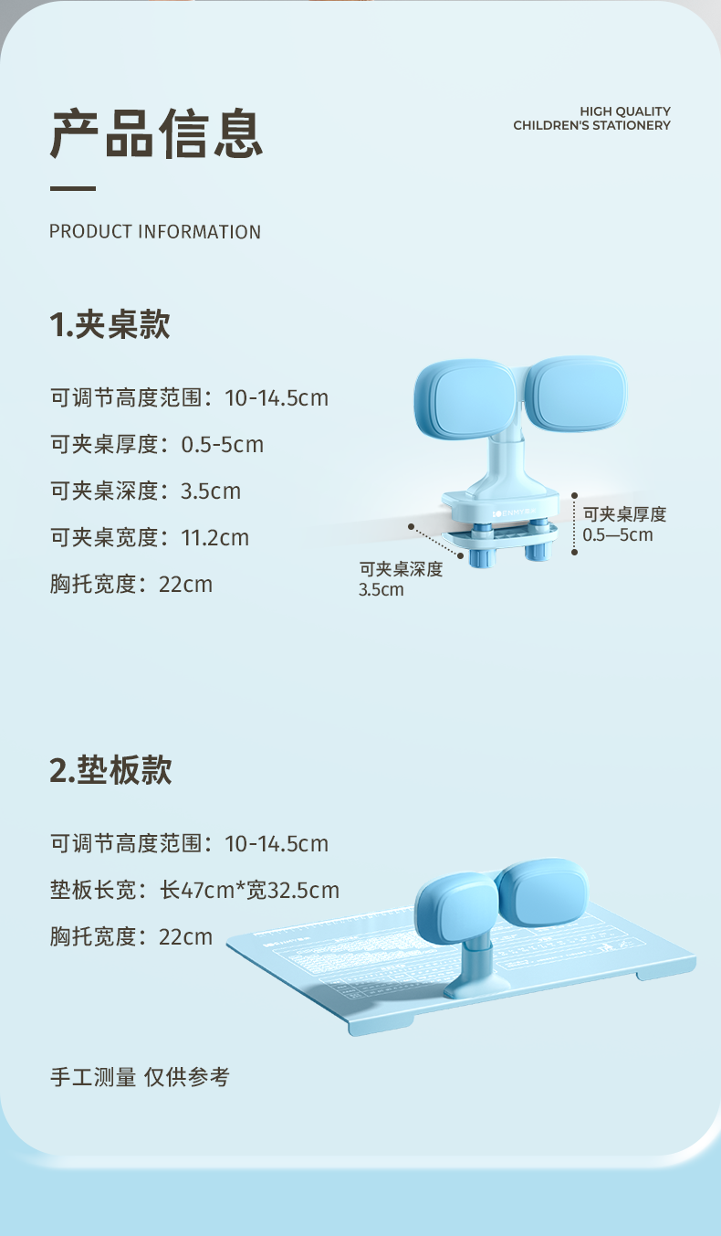 | Color Classification | Important Notice: the Blue Backing Board Version Comes in a Thickened Kraft Paper Box, While the Pink Version Comes in a Color Box. We Are Currently Transitioning between the Old and New Packaging,ãUpgraded Super Soft|ãHeight AdjustableãIndependent Desk Clip - Blue,ãUpgraded Super Soft|ãHeight AdjustableãIndividual Clip-On Desk - Pink,[Suitable for Various Table Types] Large Pad Model - Pink,ãPosture Correction Set for WomenãDesk Clip Style + 2 Boxes of Posture Correction Pencils,ãPosture Correction Set for WomenãBack Support Pad + 2 Boxes of Posture Correction Pencils,[Suitable for Various Table Types] Large Pad Model-Blue,ãPosture Correction Set for BoysãDesk Clip Style + 2 Boxes of Posture Correction Pencils,ãPosture Correction Set for MenãBack Support Pad + 2 Boxes of Posture Correction Pencils,ãEye-Care Green ScreenãRetractable - Extended Pad - Standard Height Adjustment,ãEye-Care Green ScreenãCollapsible - Extended Pad - Metal Height Adjustment |
